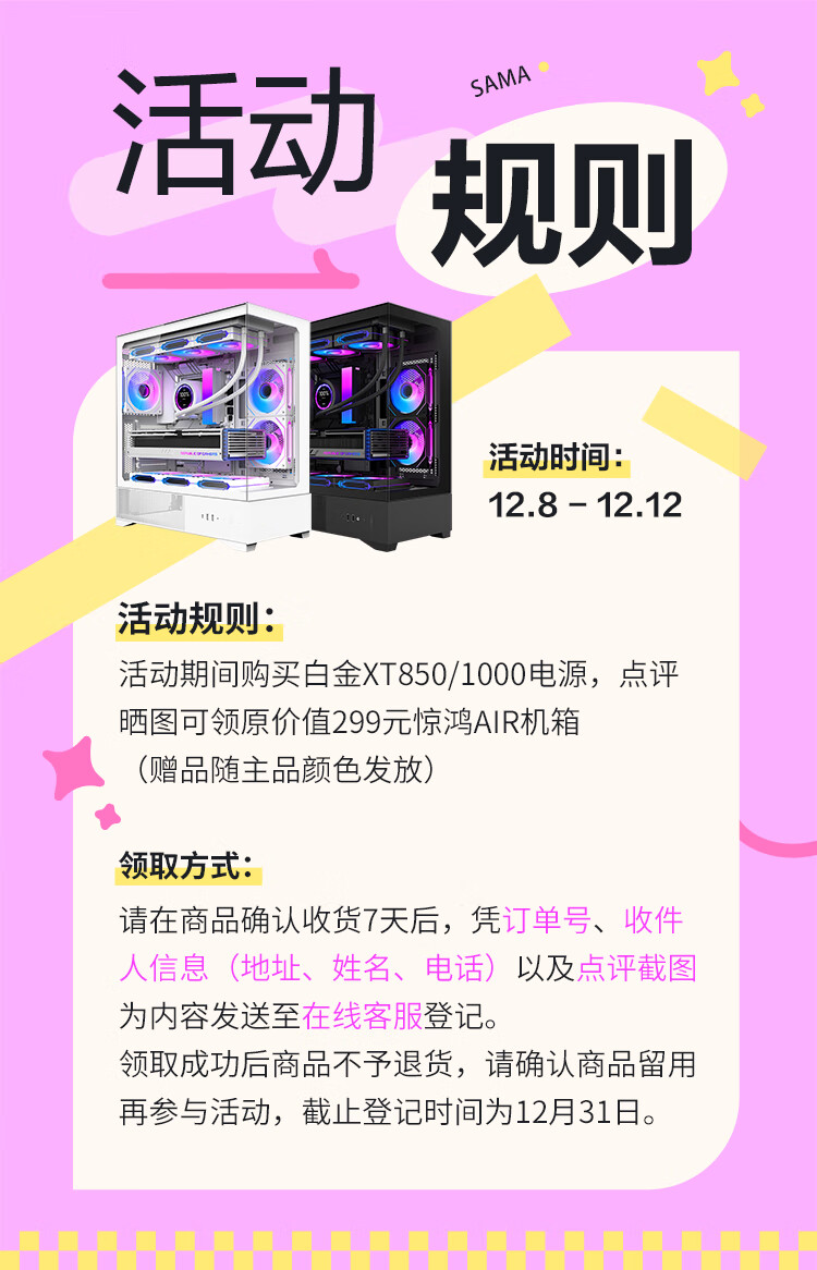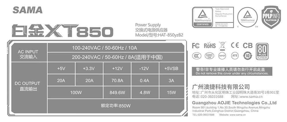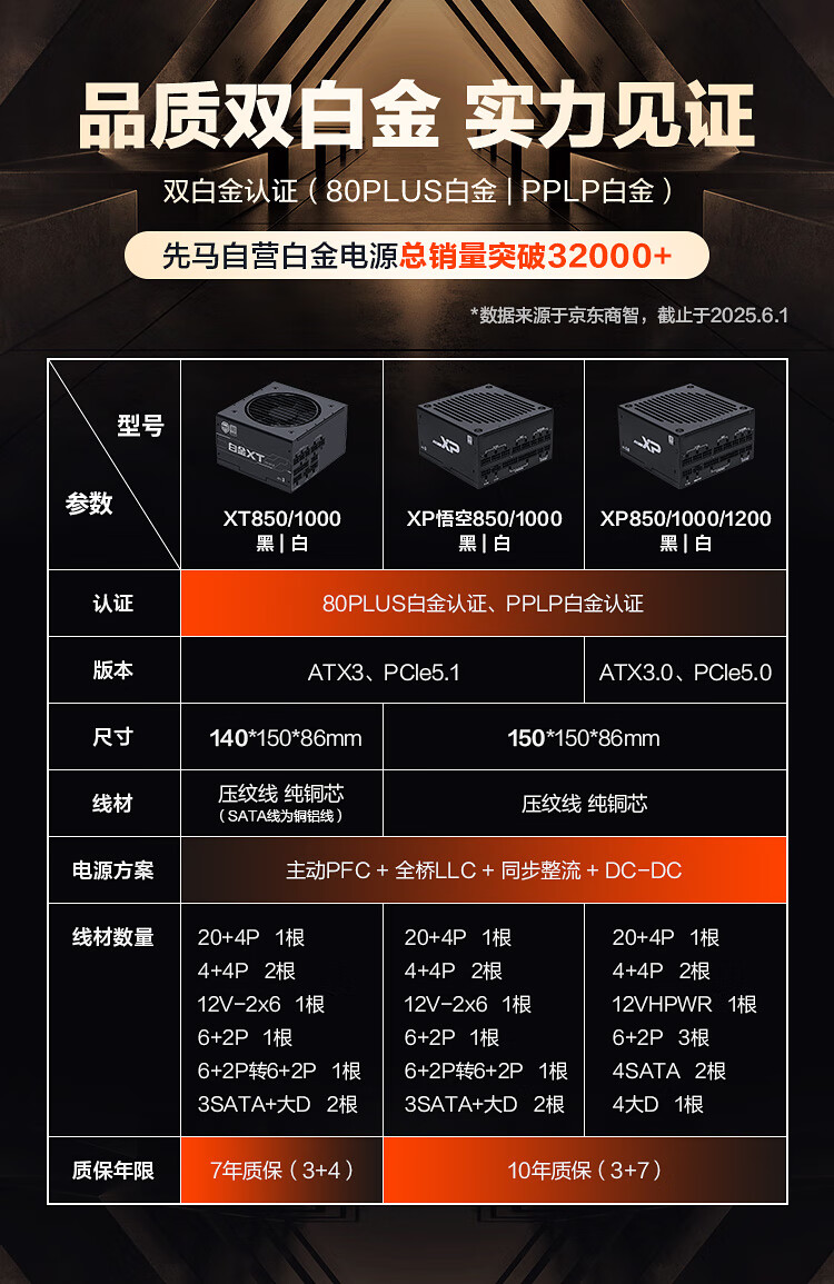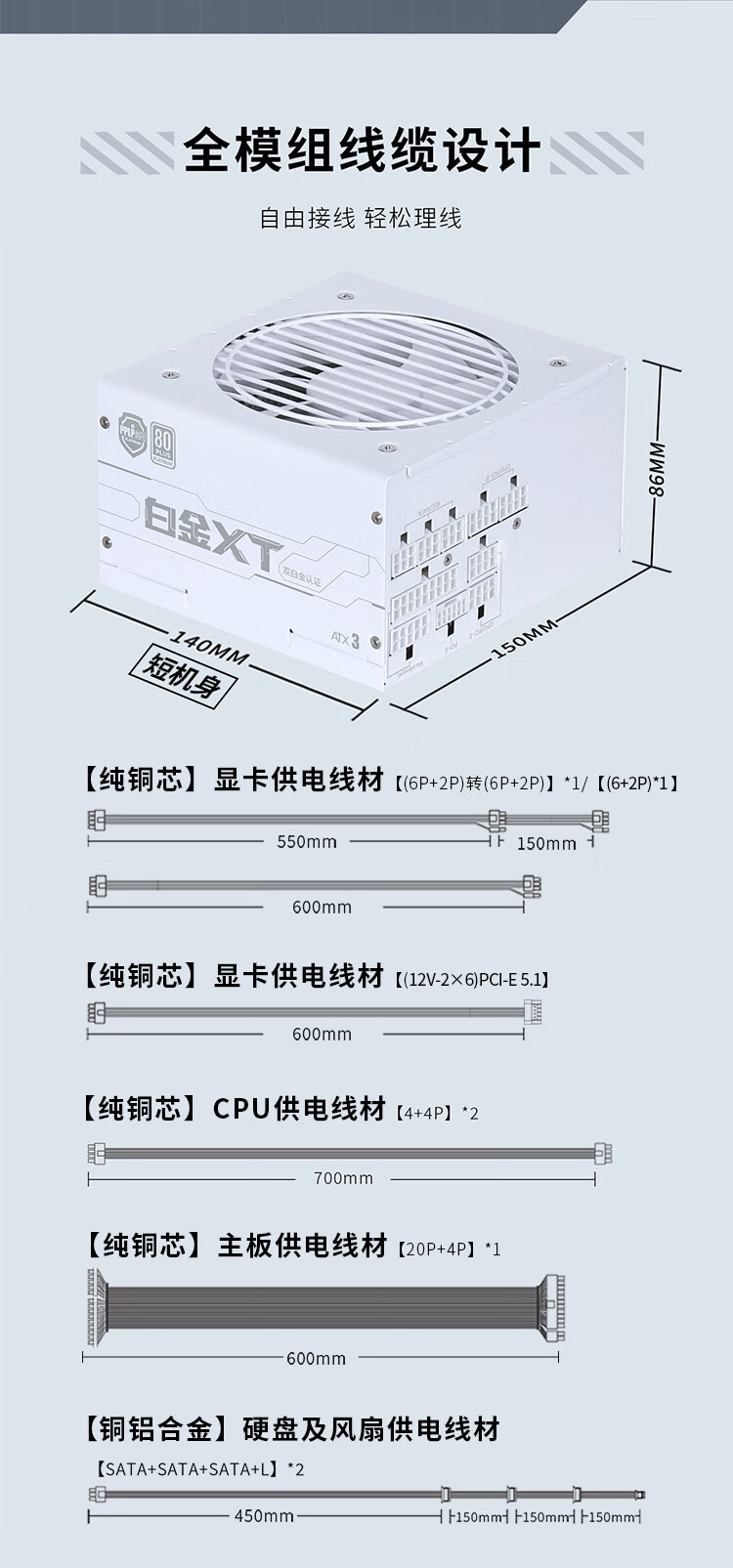 SAMA Platinum XT850W weiß ATX3 Computer-Netzteil 80PLUS/PPLP Doppelplatin/12V-2x6/Taiwanischer großer Kondensator/geprägter Draht/stabilisierte Spannung 5070Ti 9070XT