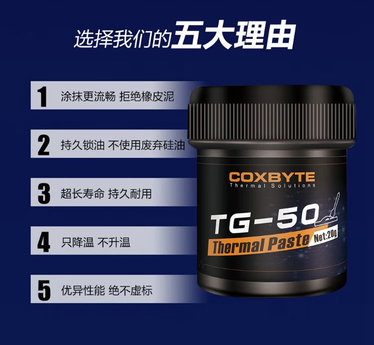 Graisse silicone thermique COXBYTE (pâte thermique pour noyau de processeur/carte graphique) TG-50-20g (coefficient 18,2) overclocking pour ordinateur de bureau refroidi par air pour ordinateur portable de jeu refroidi à l'eau adapté au côté application paquet de 20 g