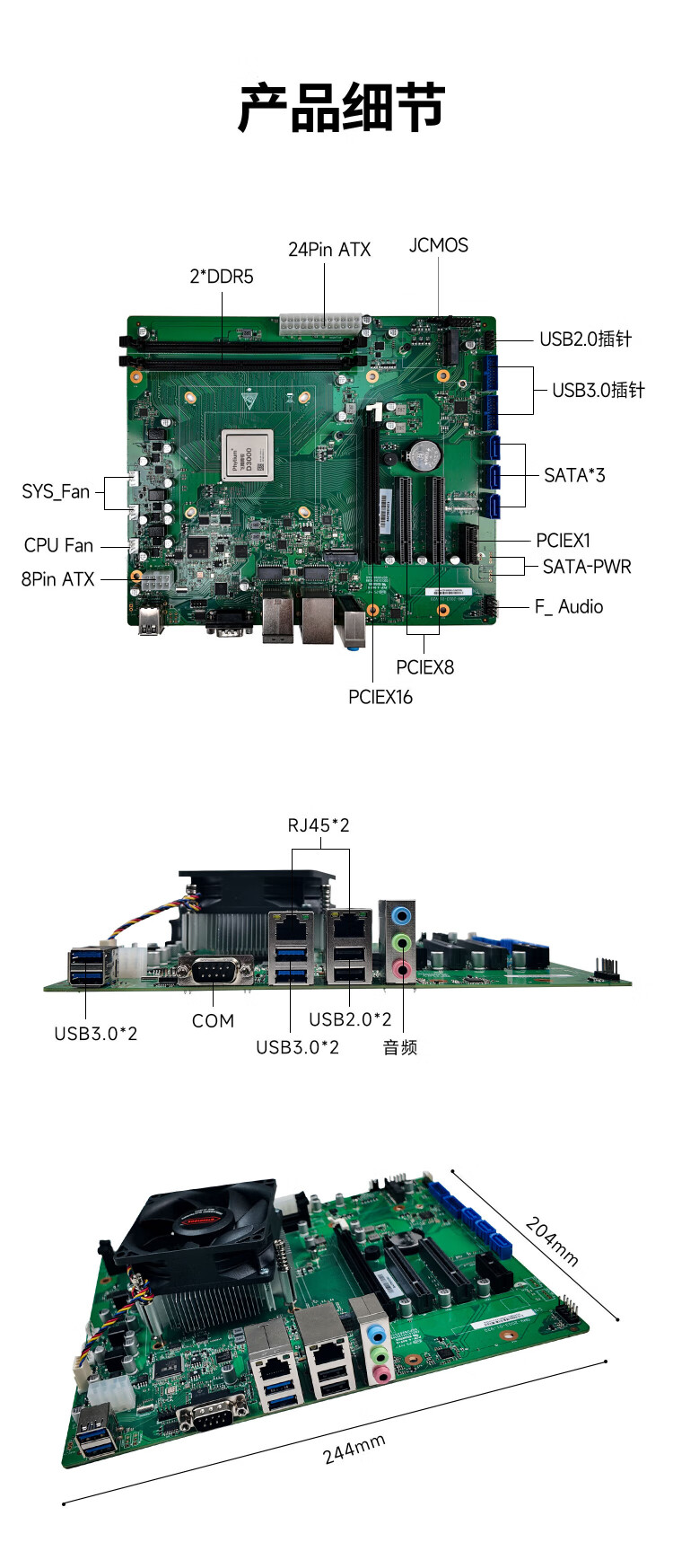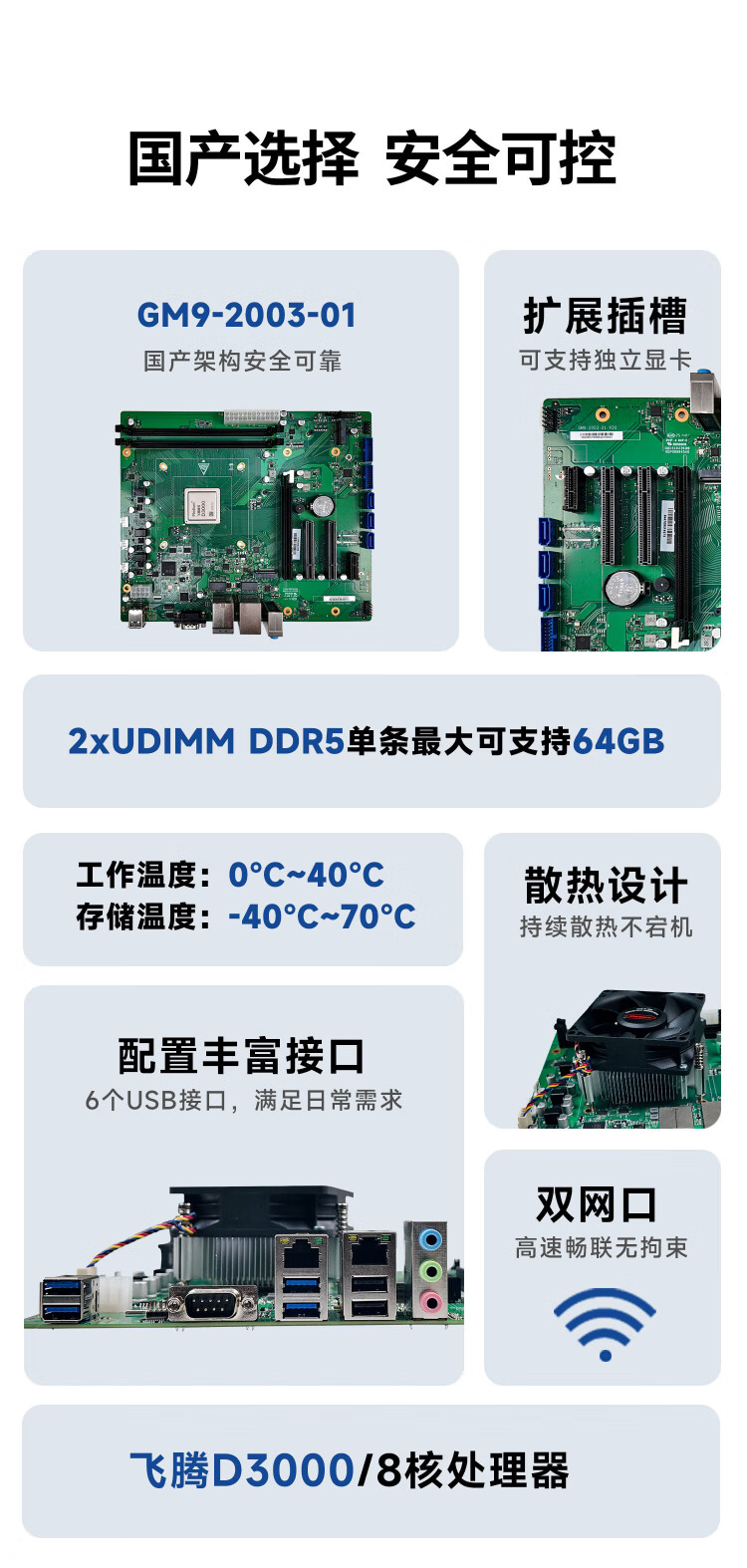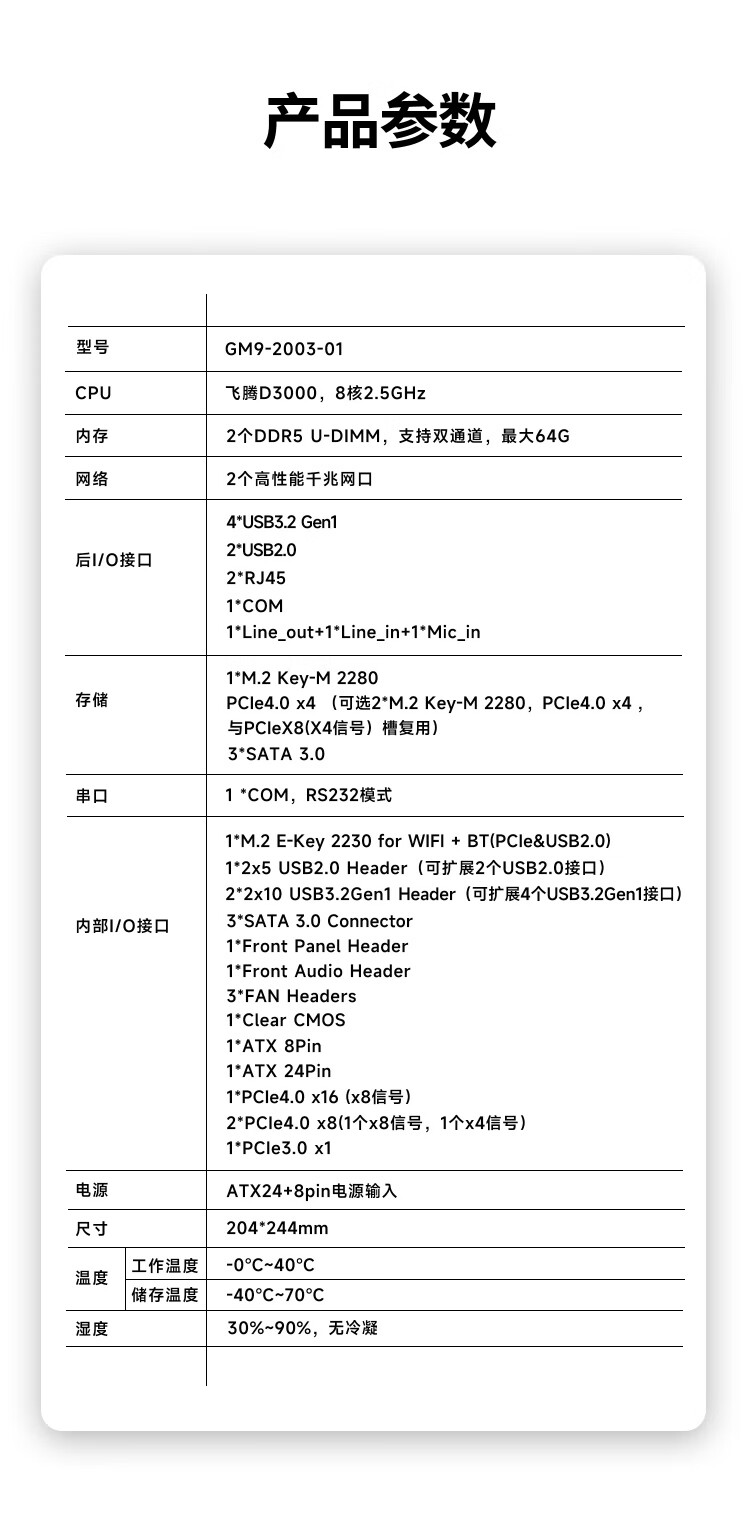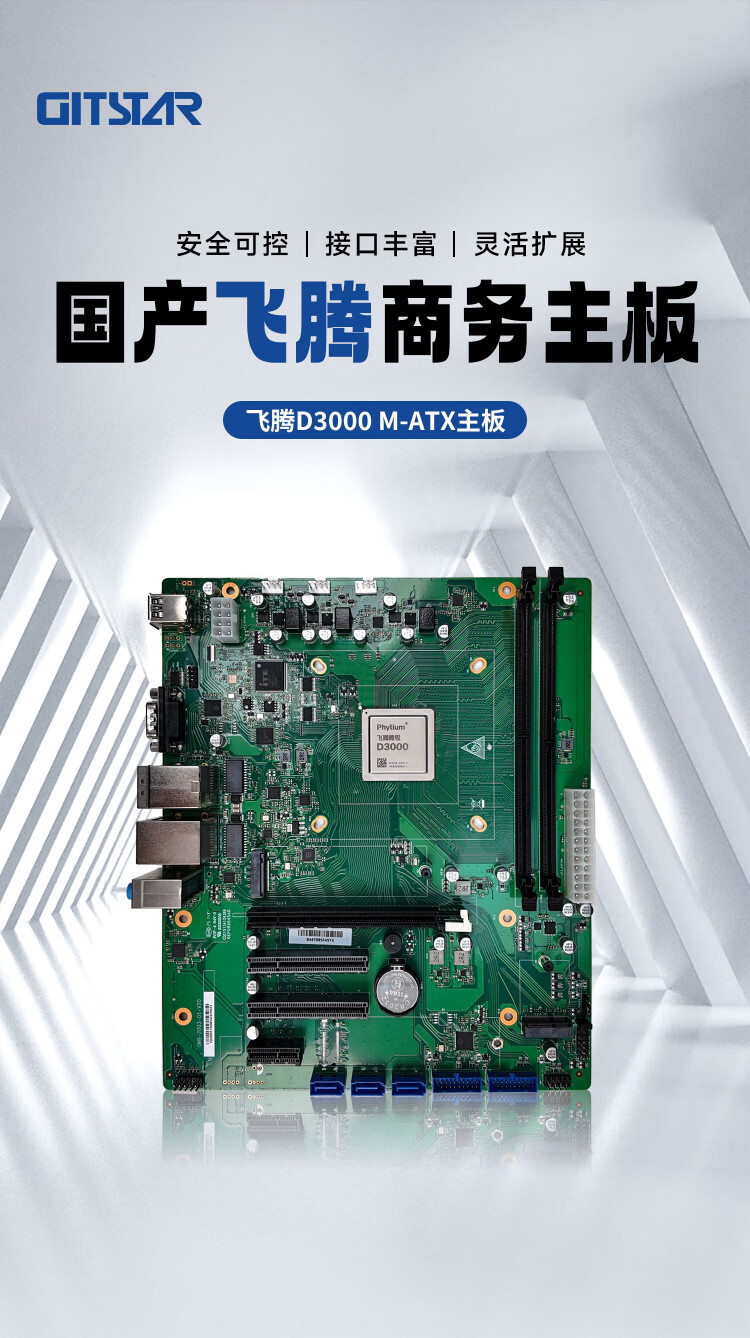 GITSTAR spezielles inländisches Micro-ATX-Business-Motherboard GM9-2003-01 Feiteng D3000 Achtkern 2,5 GHz Dual-Netzwerk-Port 4PCIE-Schnittstelle