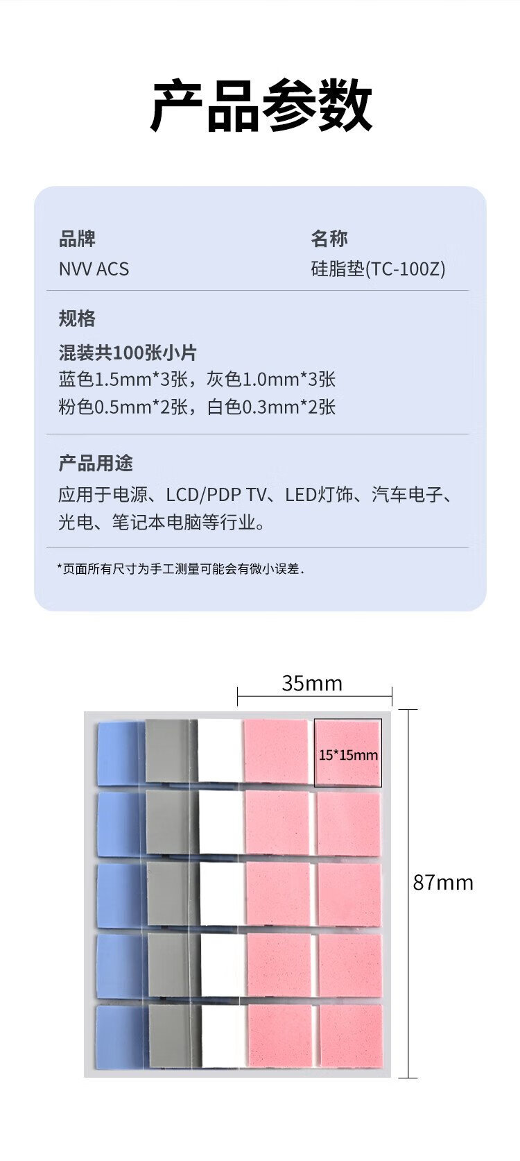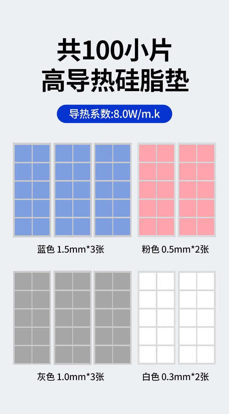 Термопрокладки NVV, 100 шт., силиконовая смазка, силиконовая подставка, охлаждающий патч, твердотельный накопитель, память видеокарты, северный и южный мост, радиатор TC-100Z