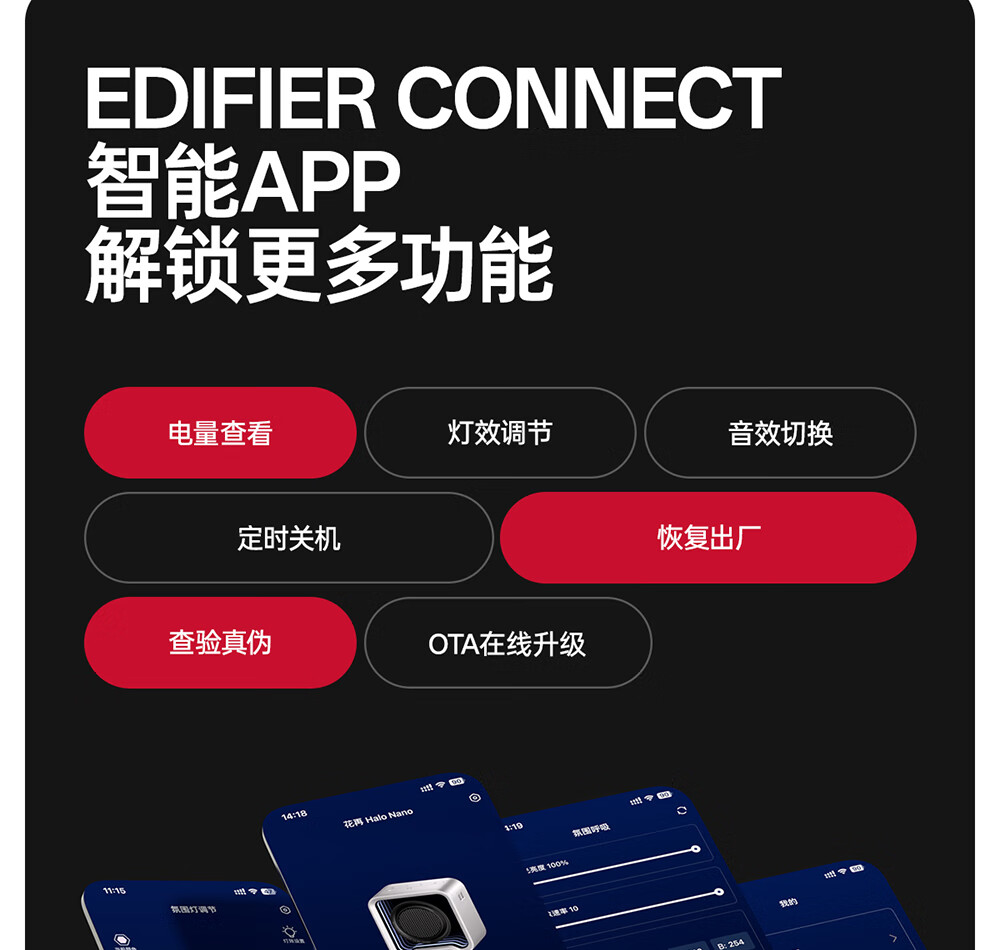 Edifier Halo Nano Computer Desktop Ambient Light Speaker Portable Bluetooth Speaker Outdoor Long Battery IP67 Waterproof Subwoofer Gift Mini Speaker Breaking the Boundary Black
