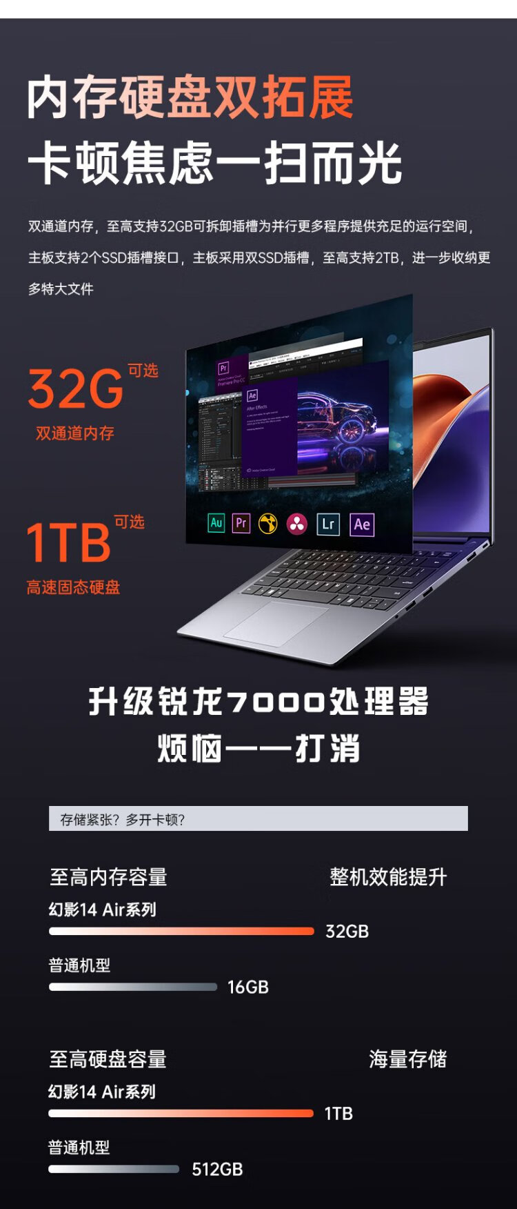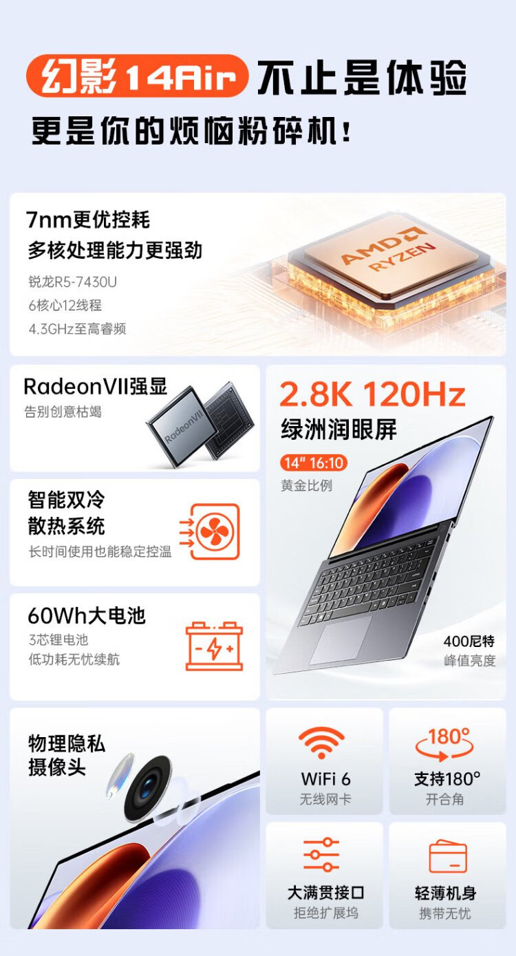 Aerxuan State Subsidy Mirage 14Air Ryzen Edition 7000 Series Thin and Light Laptop 2.8K HD Screen Business Office Gaming Student All-Purpose Portable