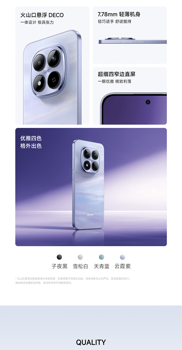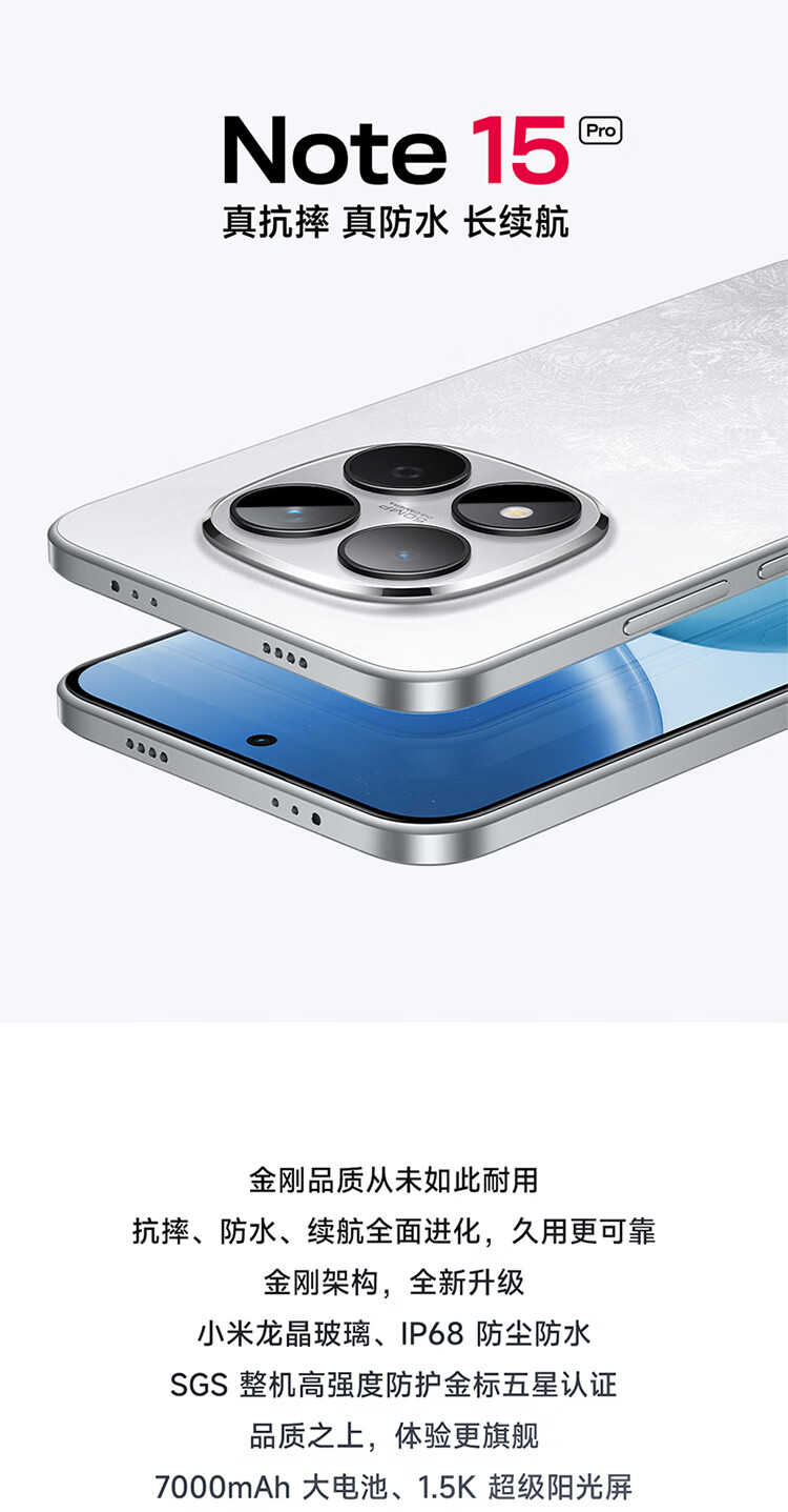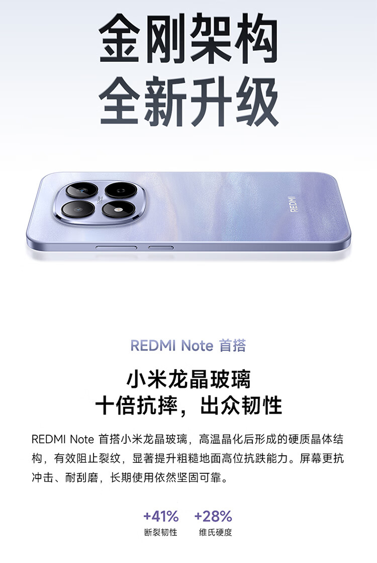 Xiaomi (MI) REDMI Note15 Pro Dimensity 7400-Ultra 7000mAh Dragon Crystal Glass 10 times more drop-resistant IP68 12+256 Yunxia Purple Redmi 5G mobile phone