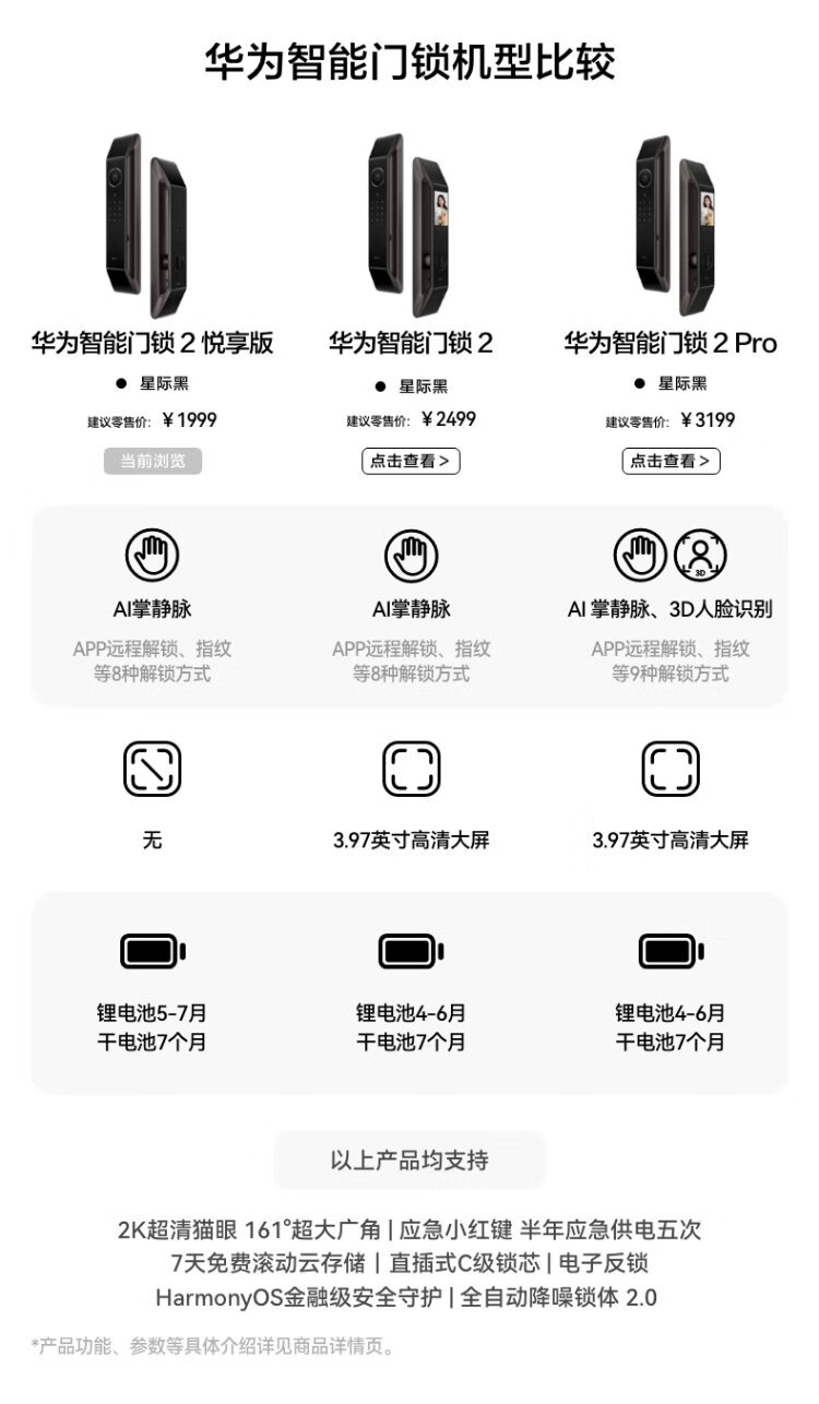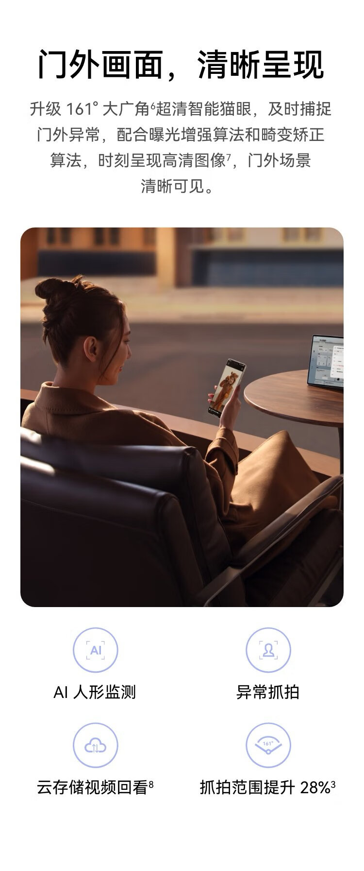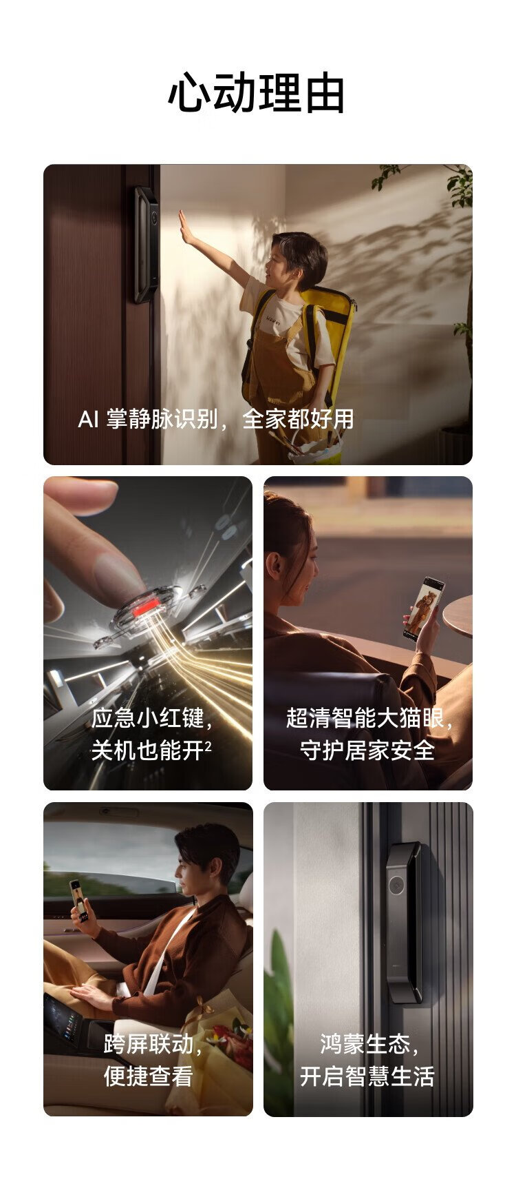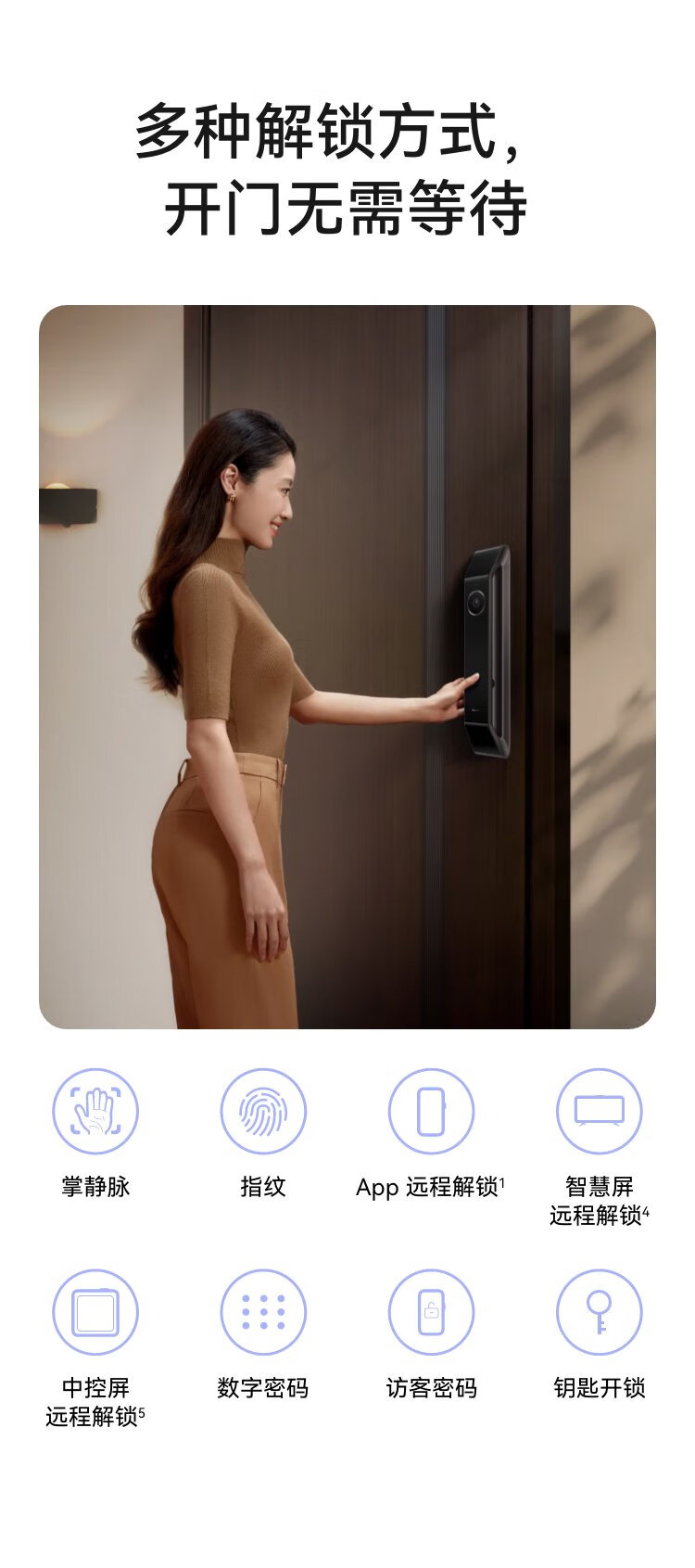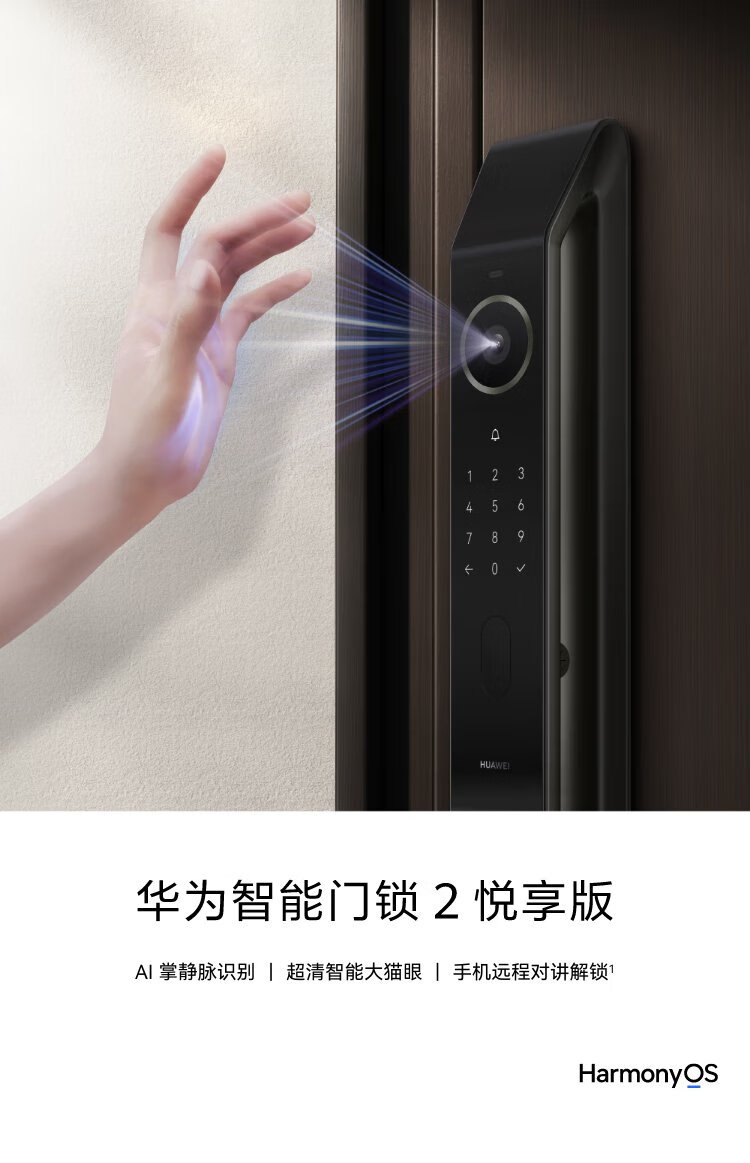 华为智能门锁 2 悦享版 AI 掌静脉识别 超清智能大猫眼 指纹锁 电子锁密码锁 免费送装拆旧