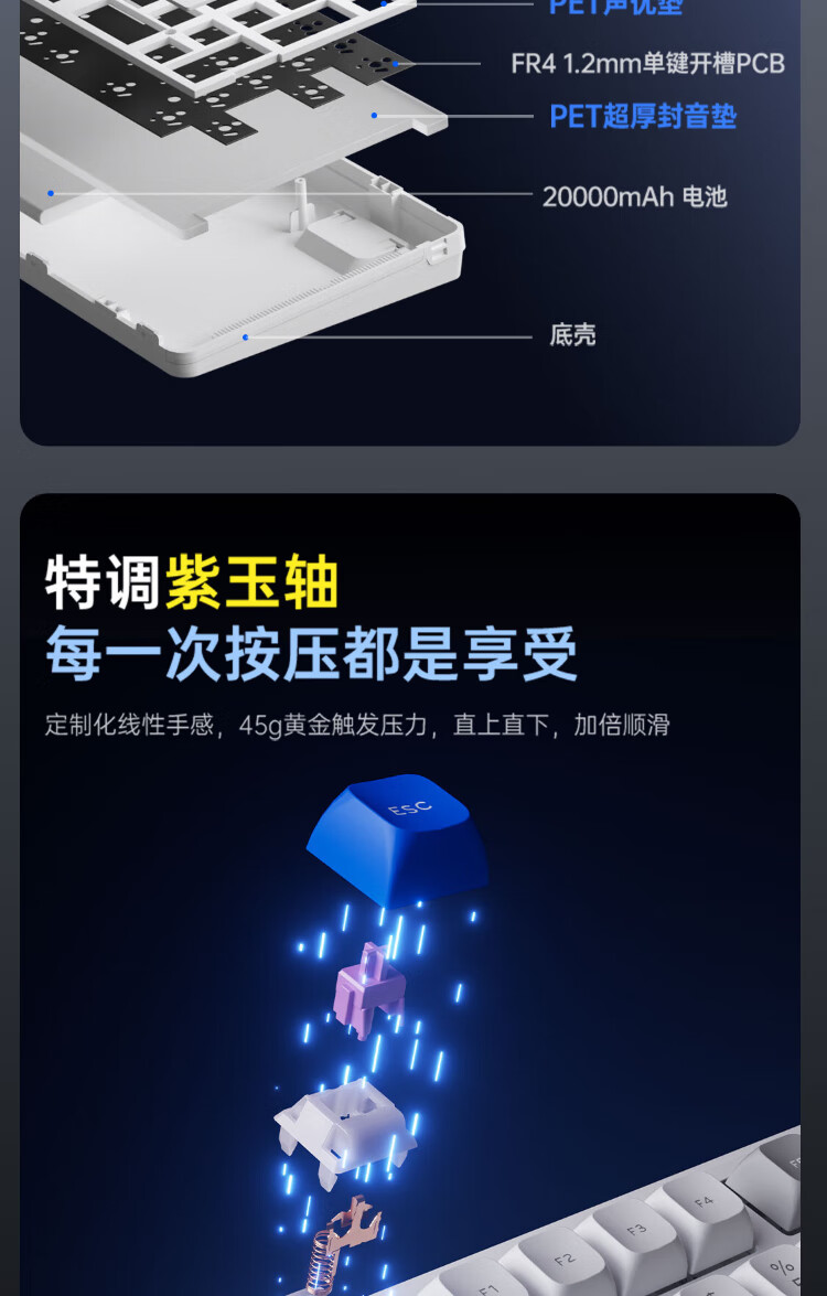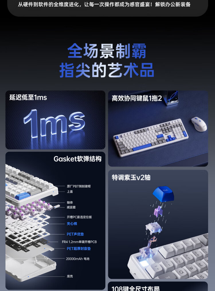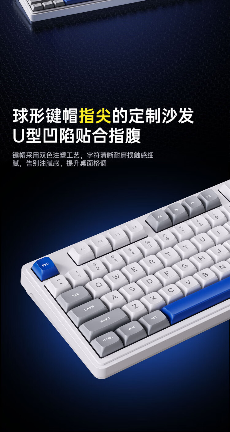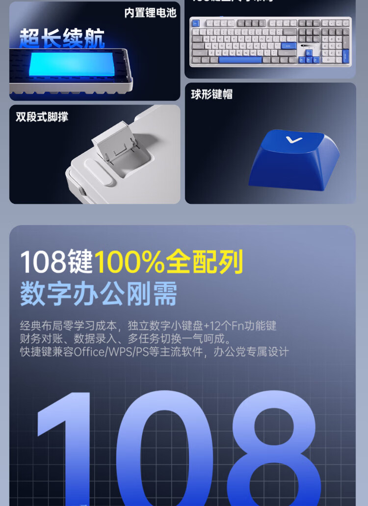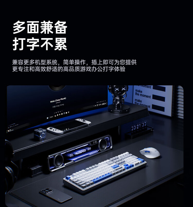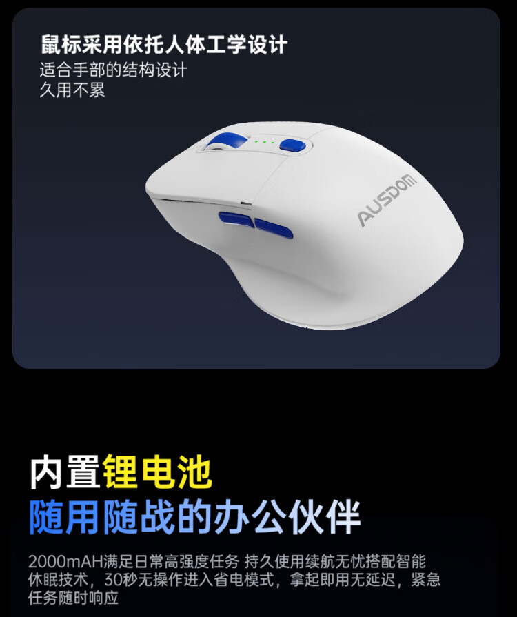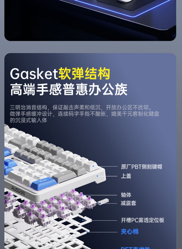 AUSDOM HOLA108 wireless keyboard and mouse set office gaming keyboard and mouse one-to-two 2.4G full-key collision-free desktop laptop computer high-looking mechanical keyboard set blue and white