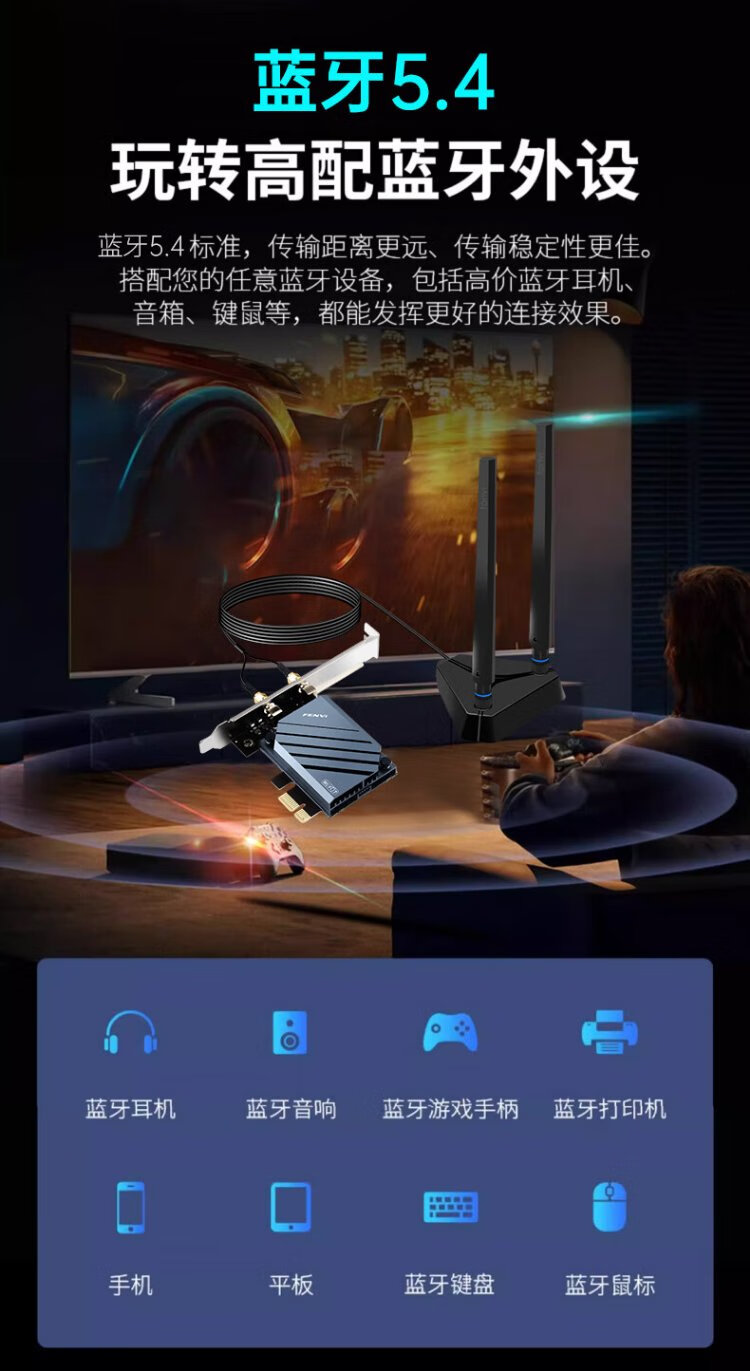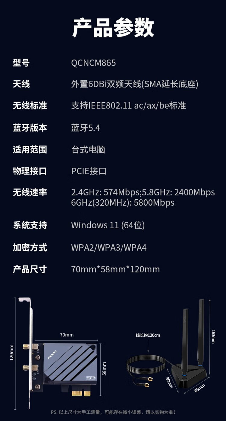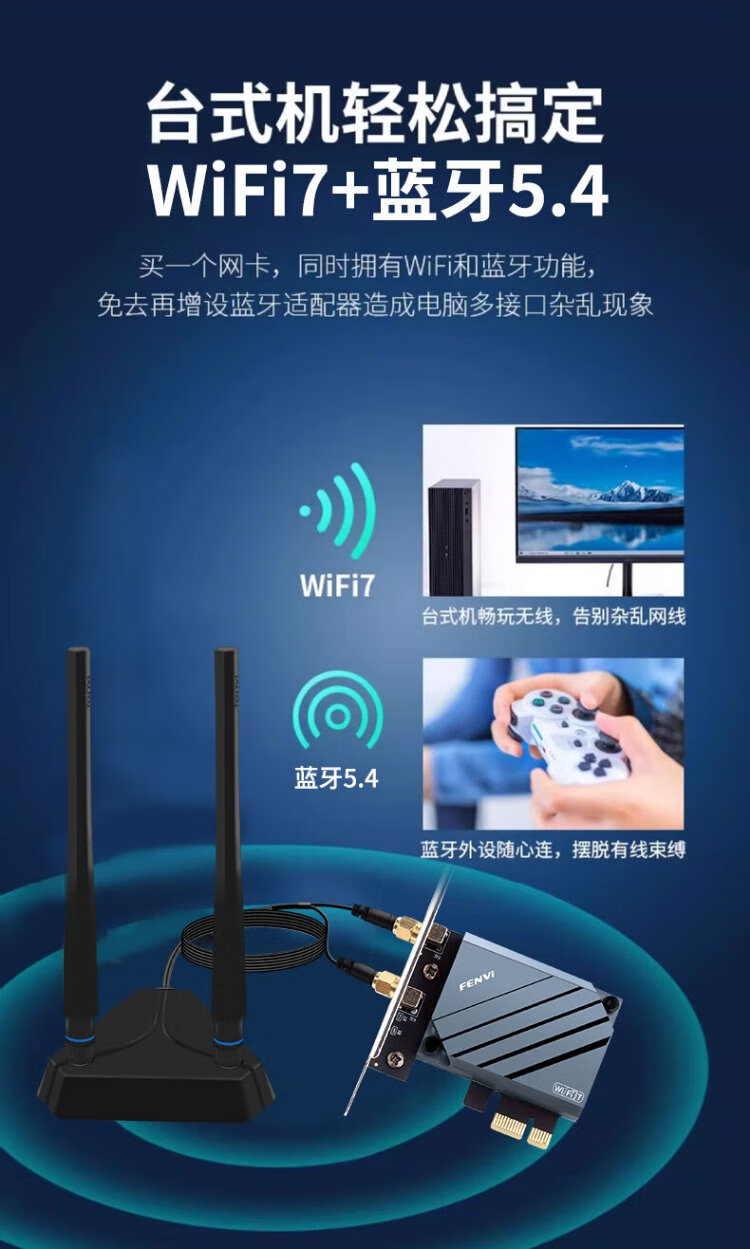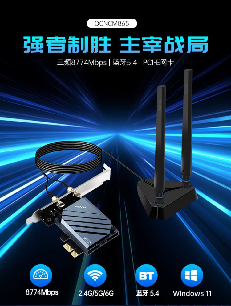 Fenvi PCIE wireless network card wifi7 game live broadcast Bluetooth 5.4 network card supports AMD tri-band 5G/6G Gigabit desktop wifi receiver built-in dedicated QCNCM865
