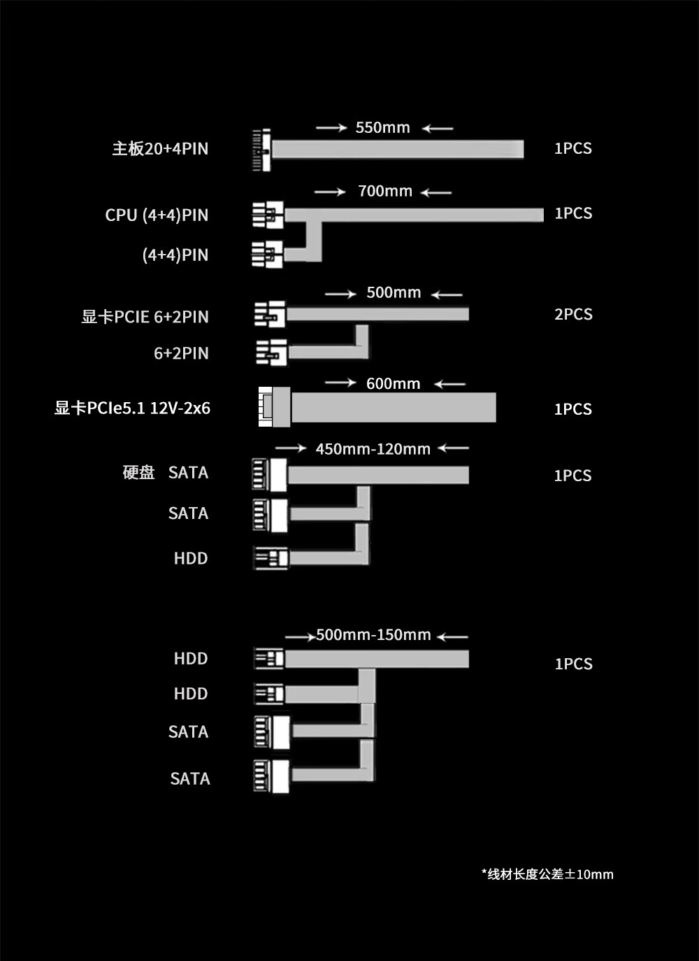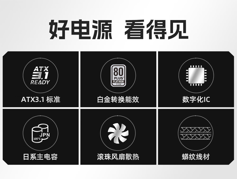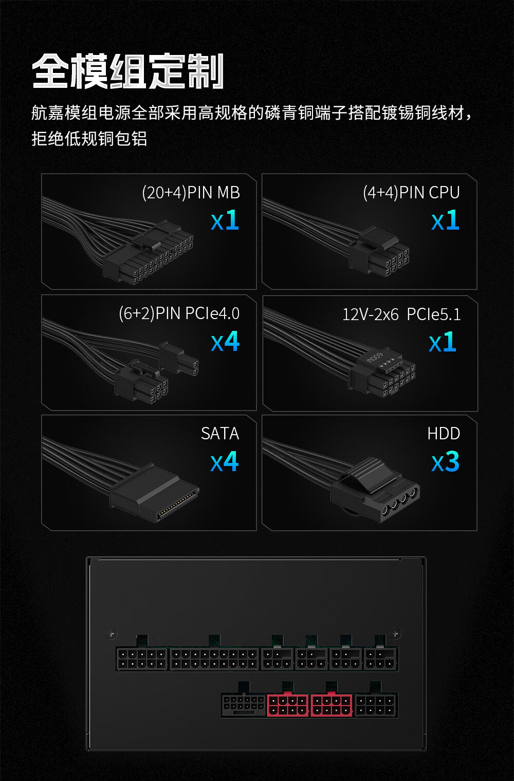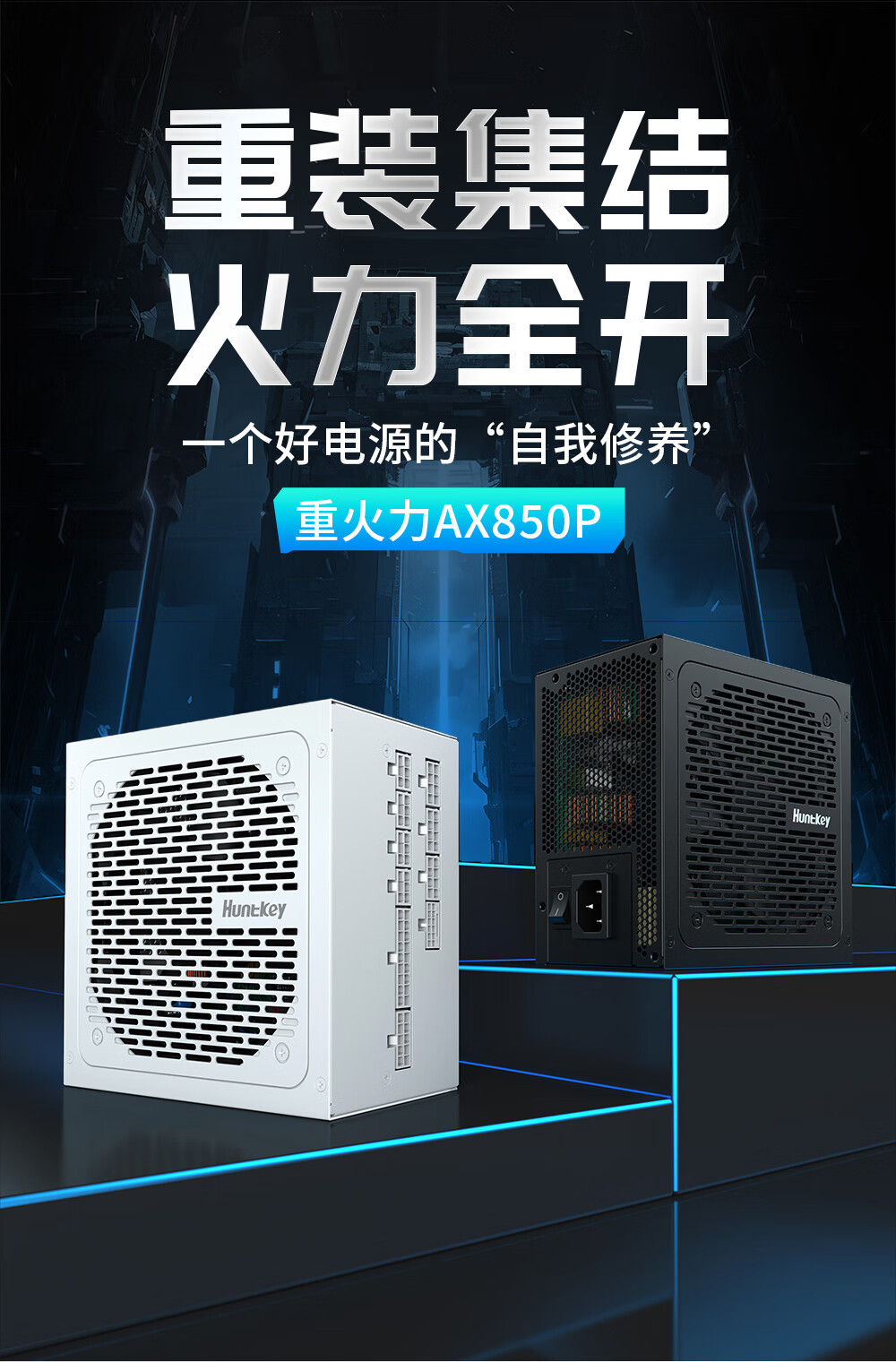 Huntkey Heavy Firepower AX850P Trident Platinum 850 W weißes Netzteil (80PLUS Platinum Vollform/7 Jahre Garantie/ATX3.1/PCIe5.1/geprägtes Kabel)
