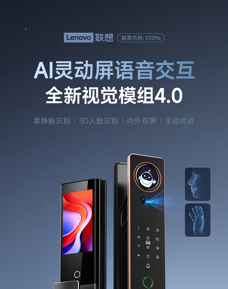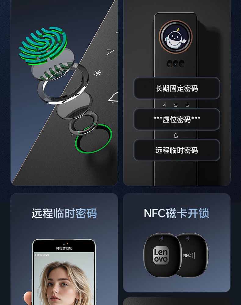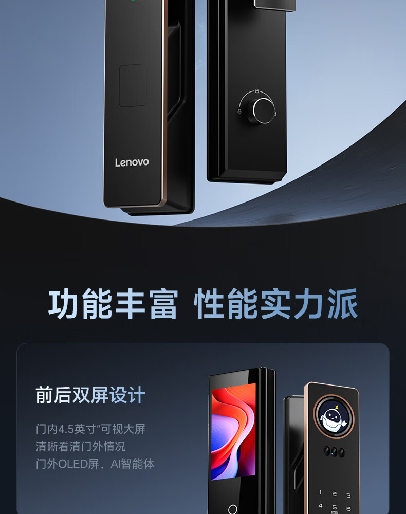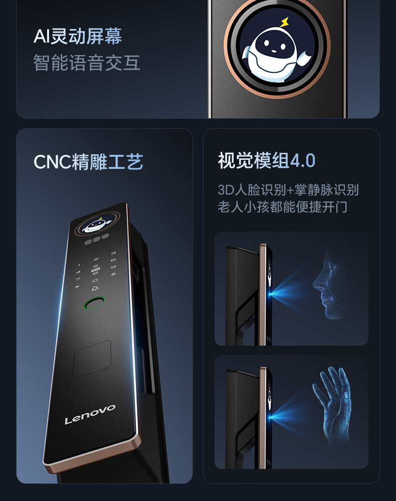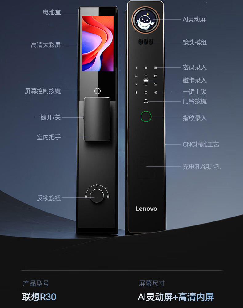 Lenovo R30 Smart Door Lock Fingerprint Lock 3D Face Recognition AI Smart Smart Lock Electronic Lock Entry Door Password Lock Fully Automatic Cat's Eye Home Security Door