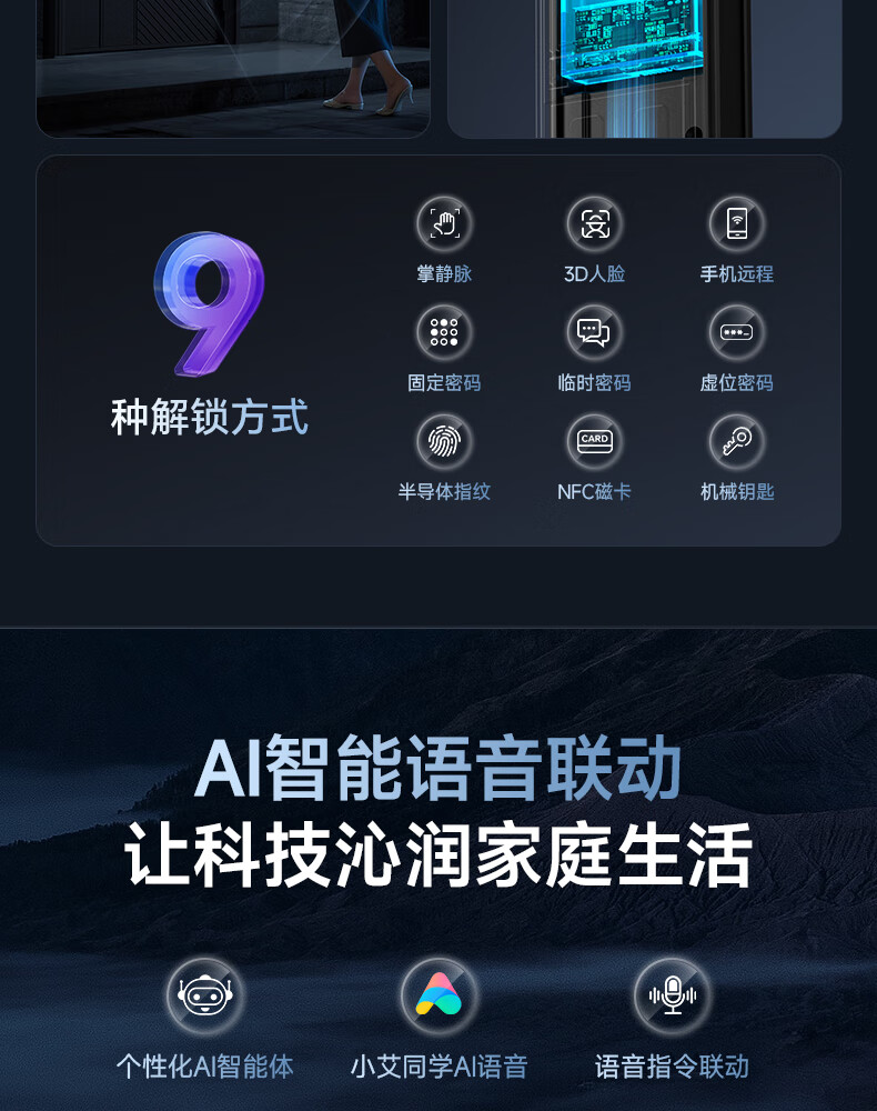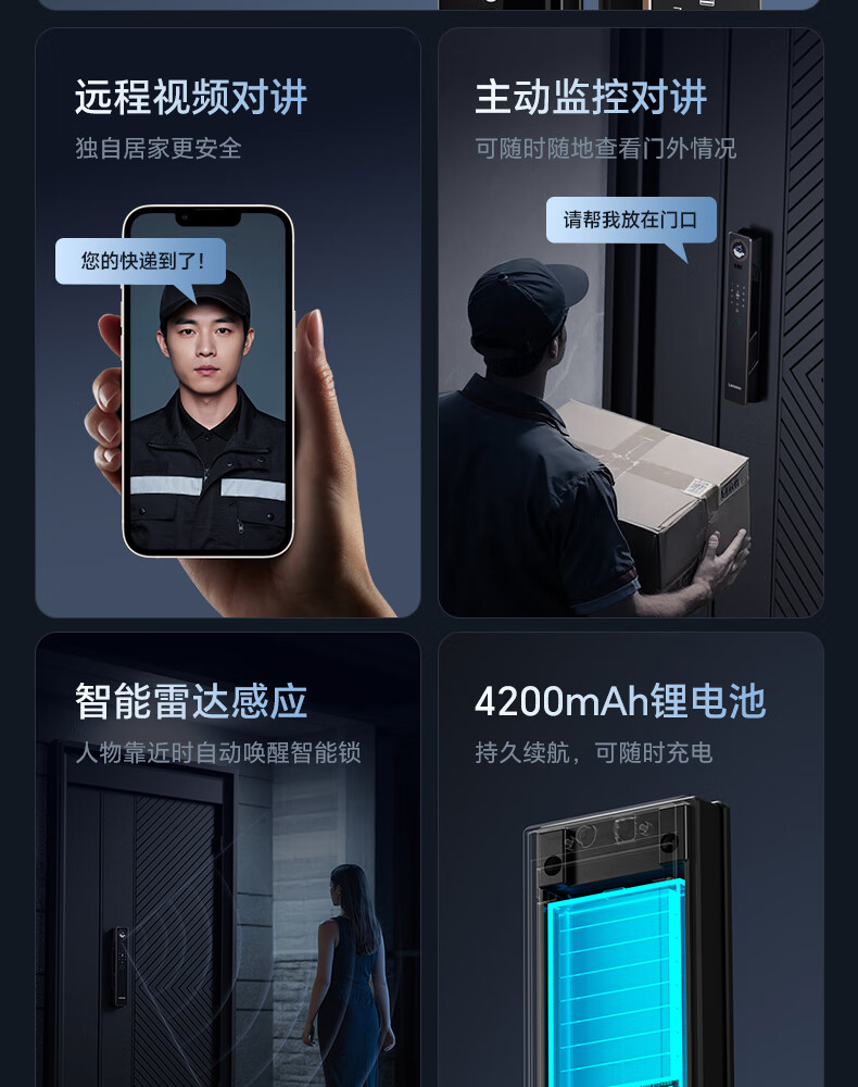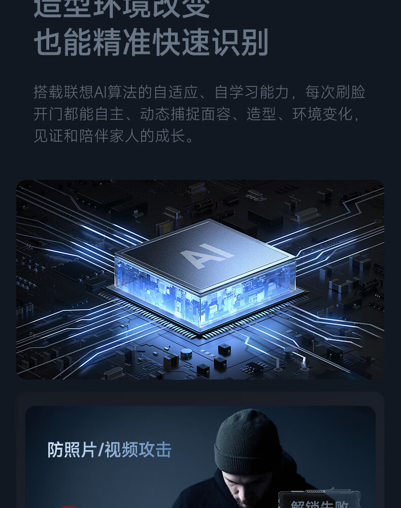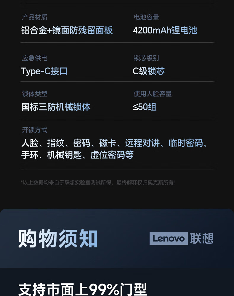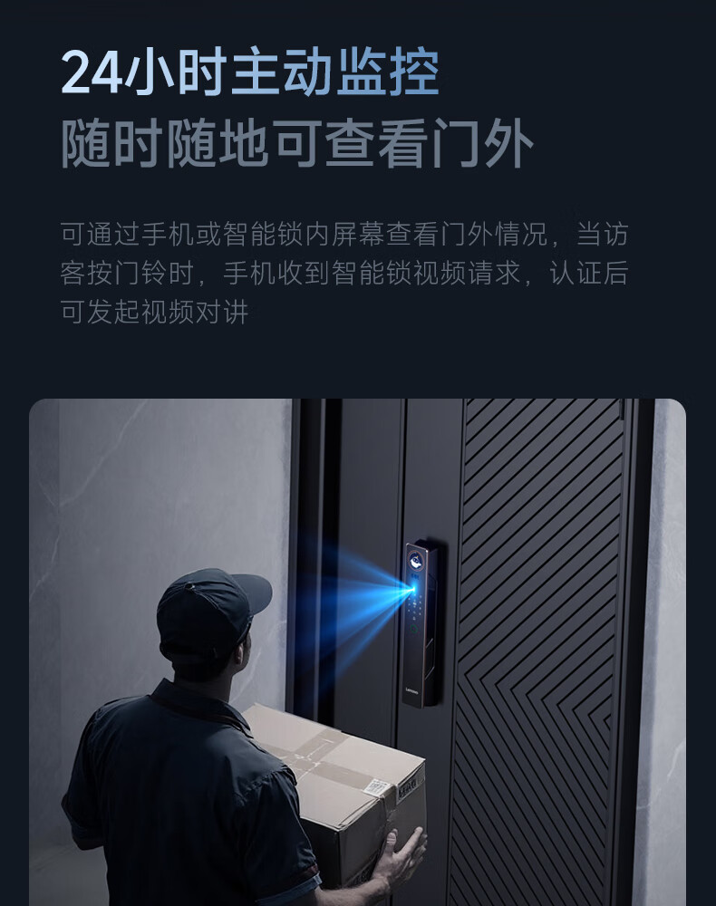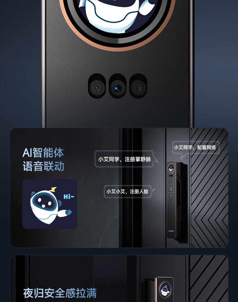 Lenovo R30 Smart Door Lock Fingerprint Lock 3D Face Recognition AI Smart Smart Lock Electronic Lock Entry Door Password Lock Fully Automatic Cat's Eye Home Security Door