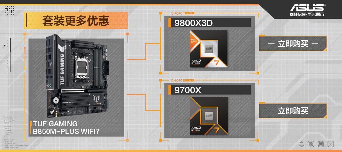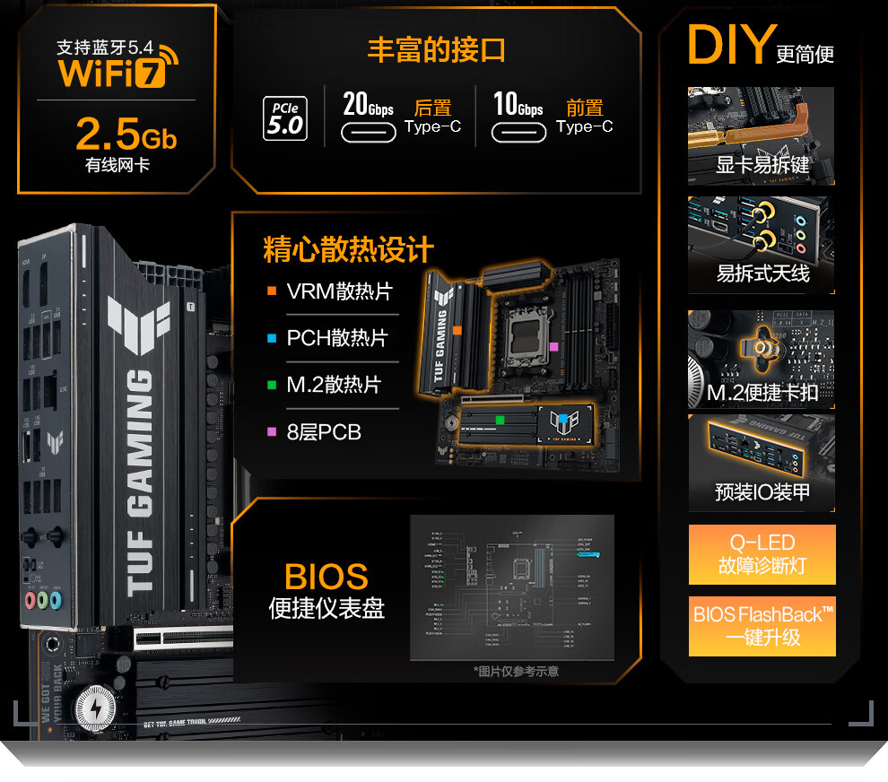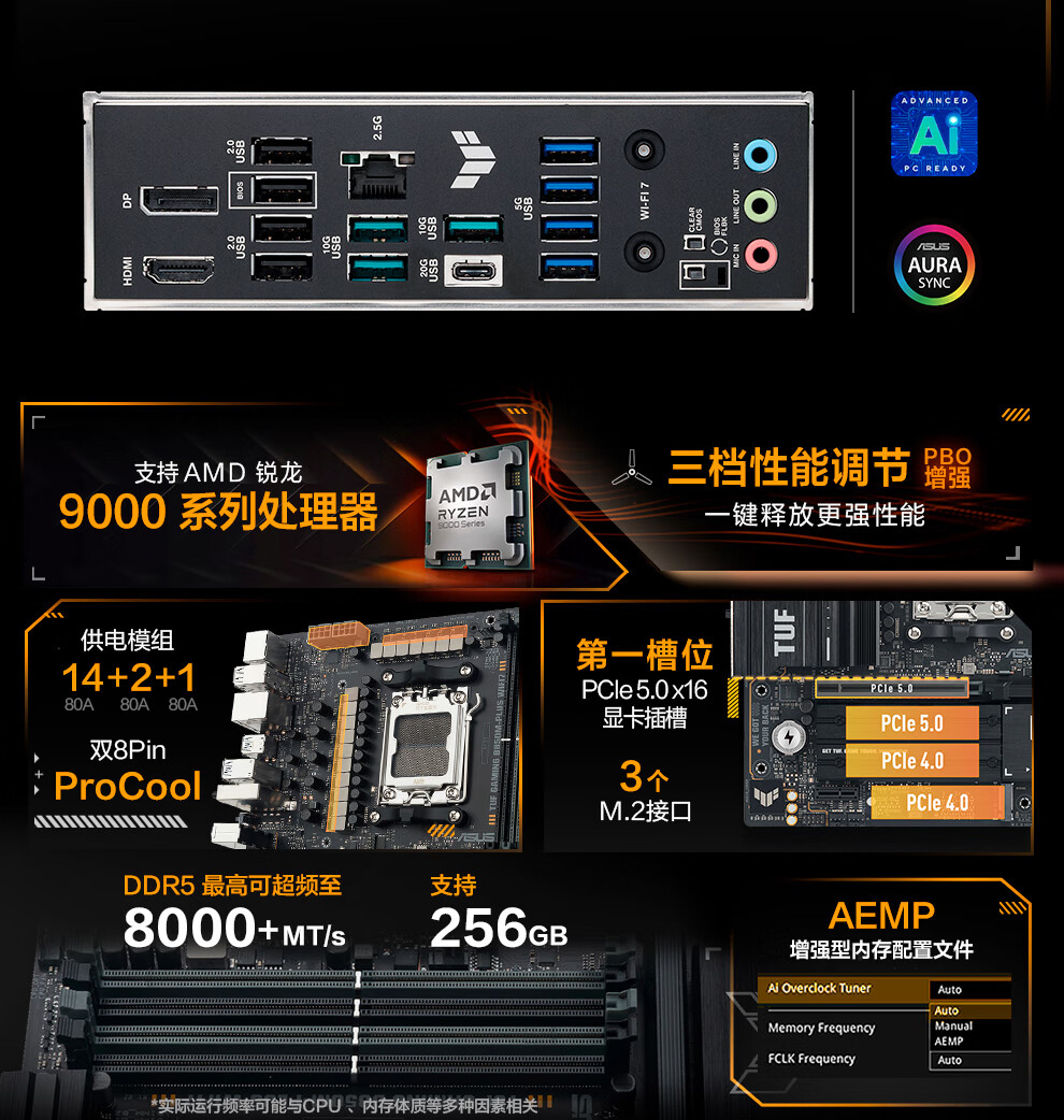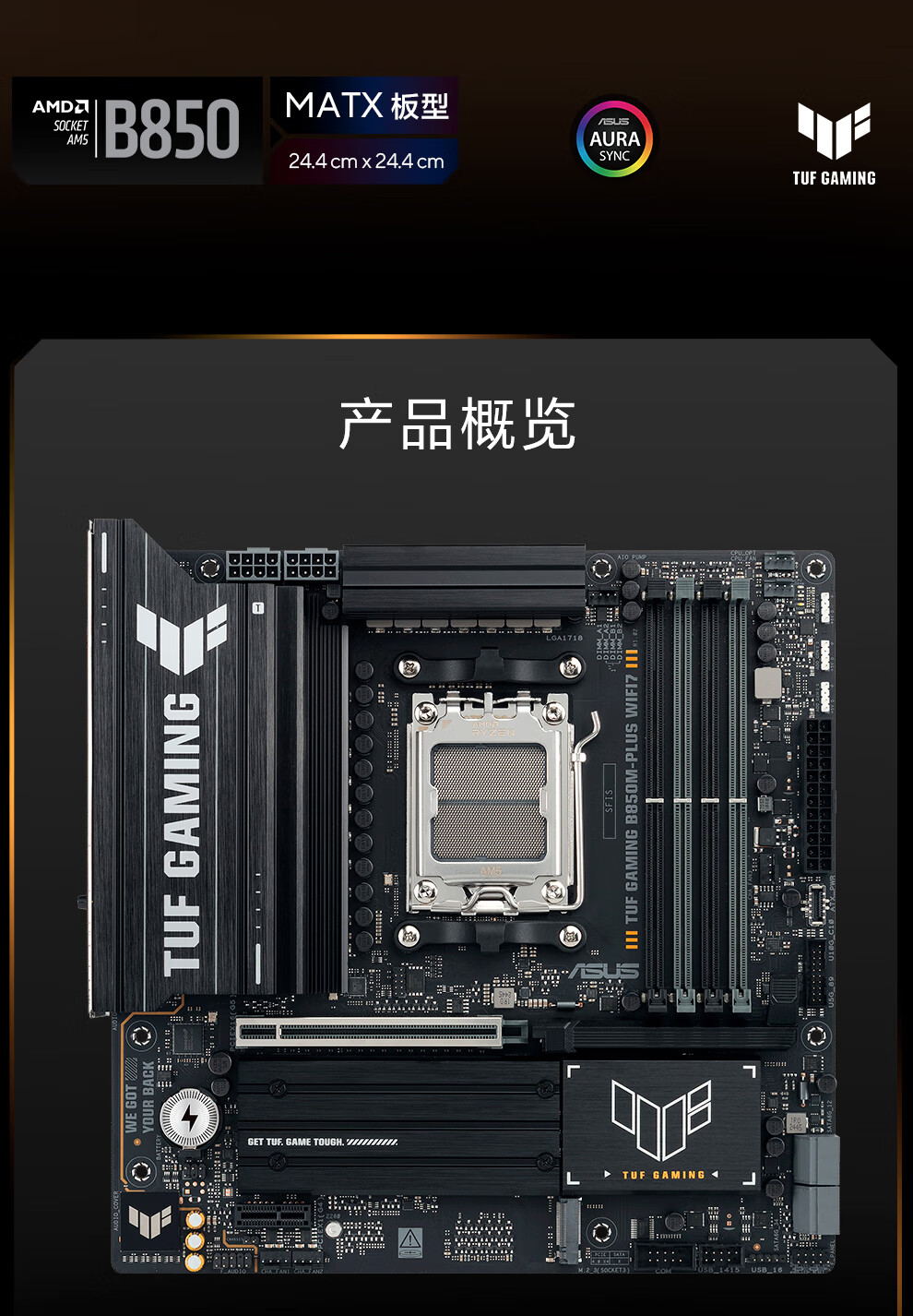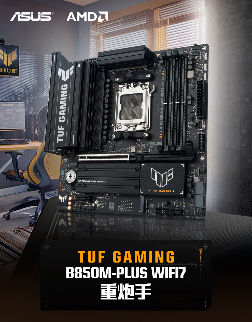 华硕(ASUS)TUF GAMING B850M-PLUS WIFI7 重炮手主板 CPU 7800X3D/9800X3D/9600X(AMD B850/socket AM5)