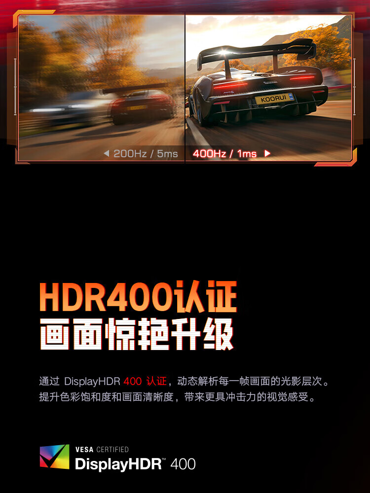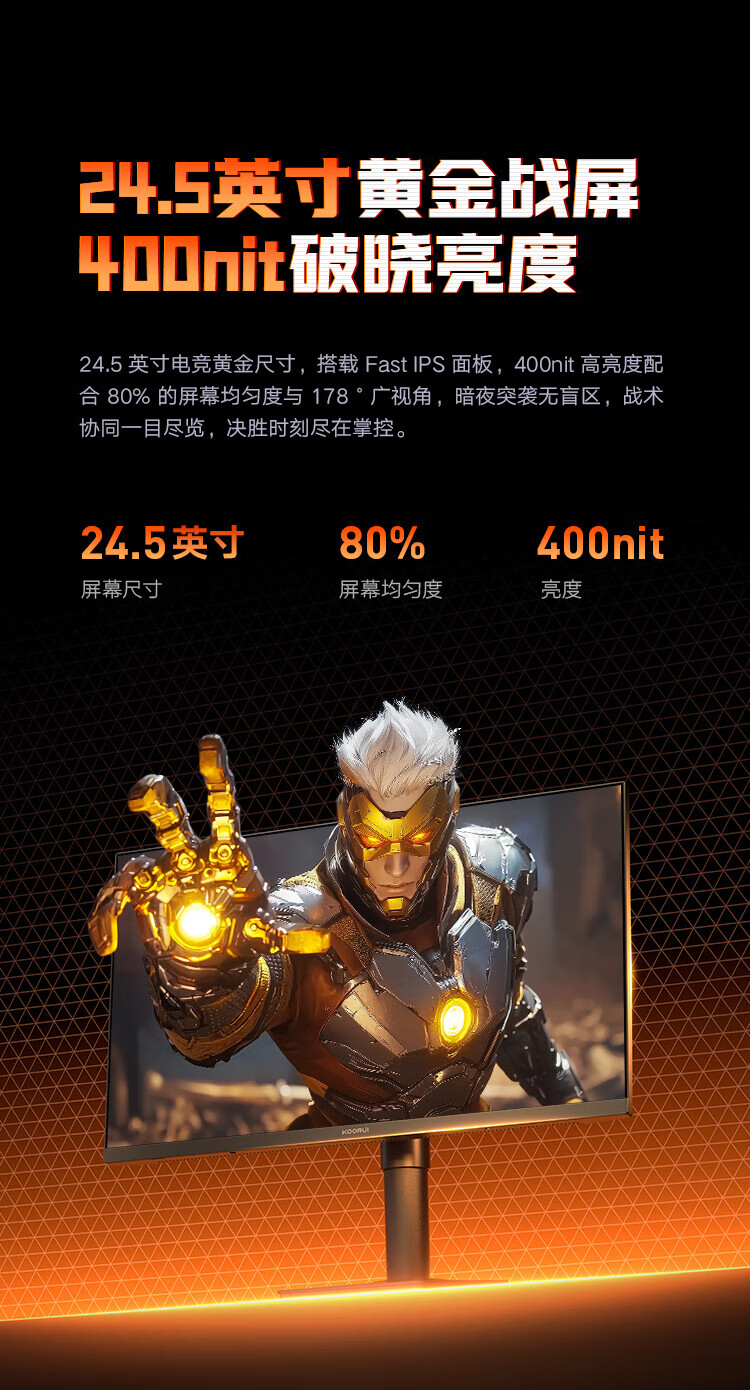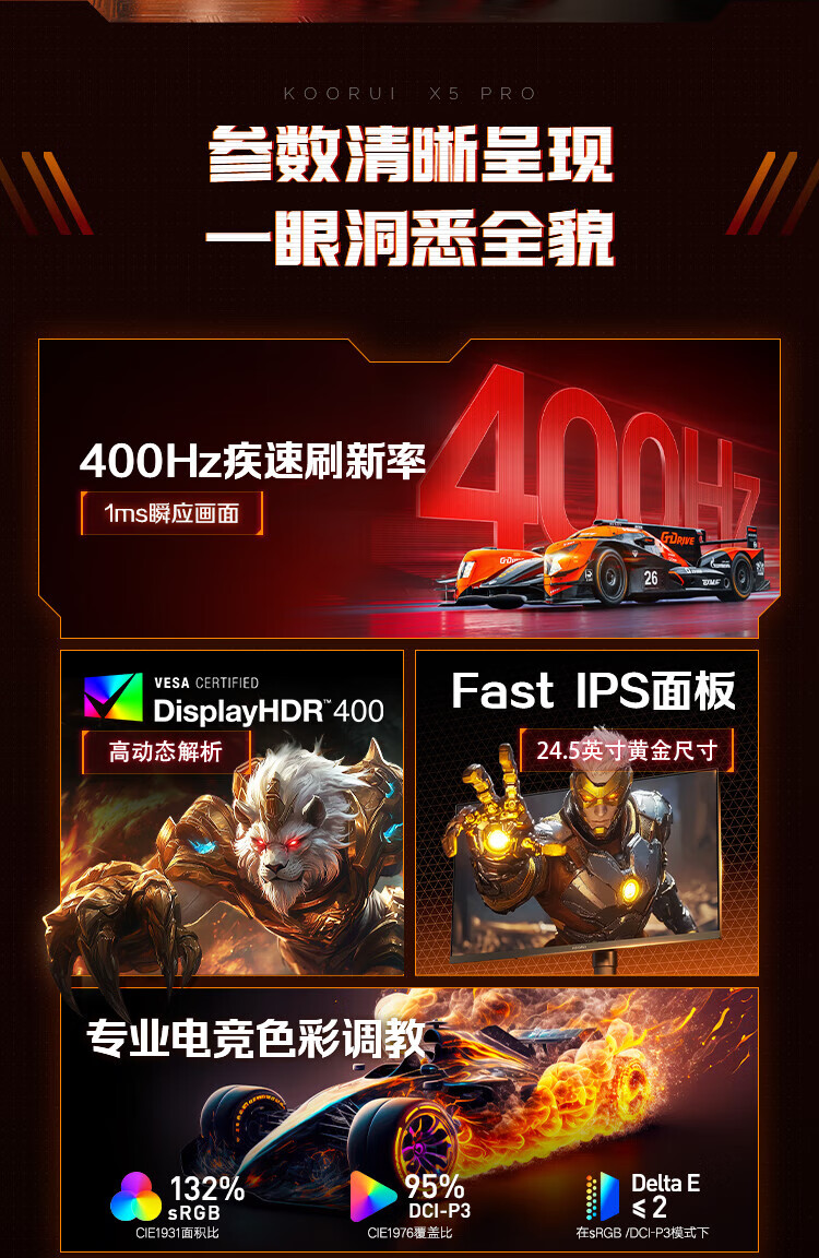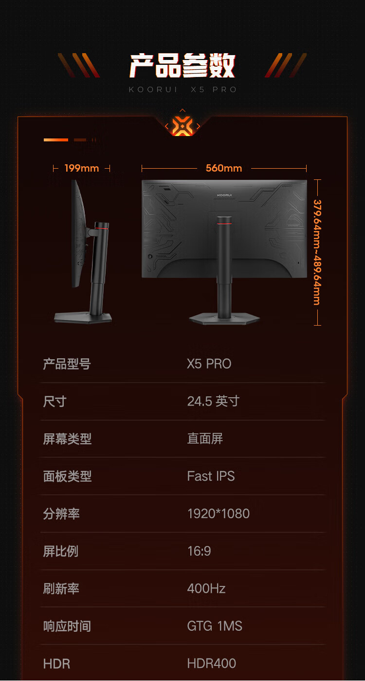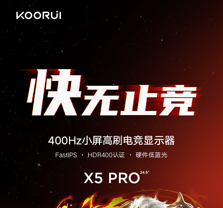 KOORUI Core 24,5 Zoll 400 Hz FastIPS schnelles LCD 1 ms Hardware Low Blue Light HDR400nit rotierender Liftcomputer FPS E-Sport-Monitor X5 PRO