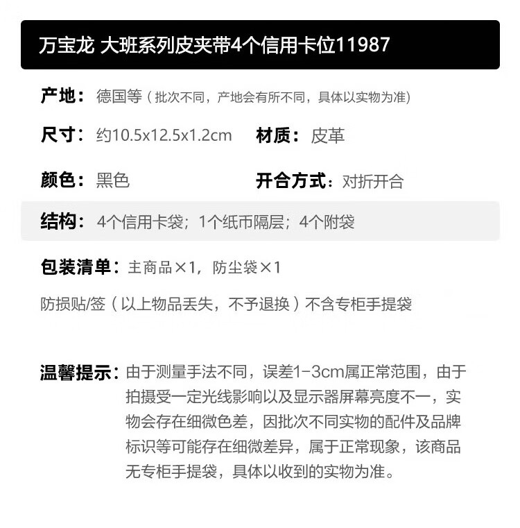Montblanc MONTBLANC Men's Meisterstück Series Black Wallet 11987 Gift