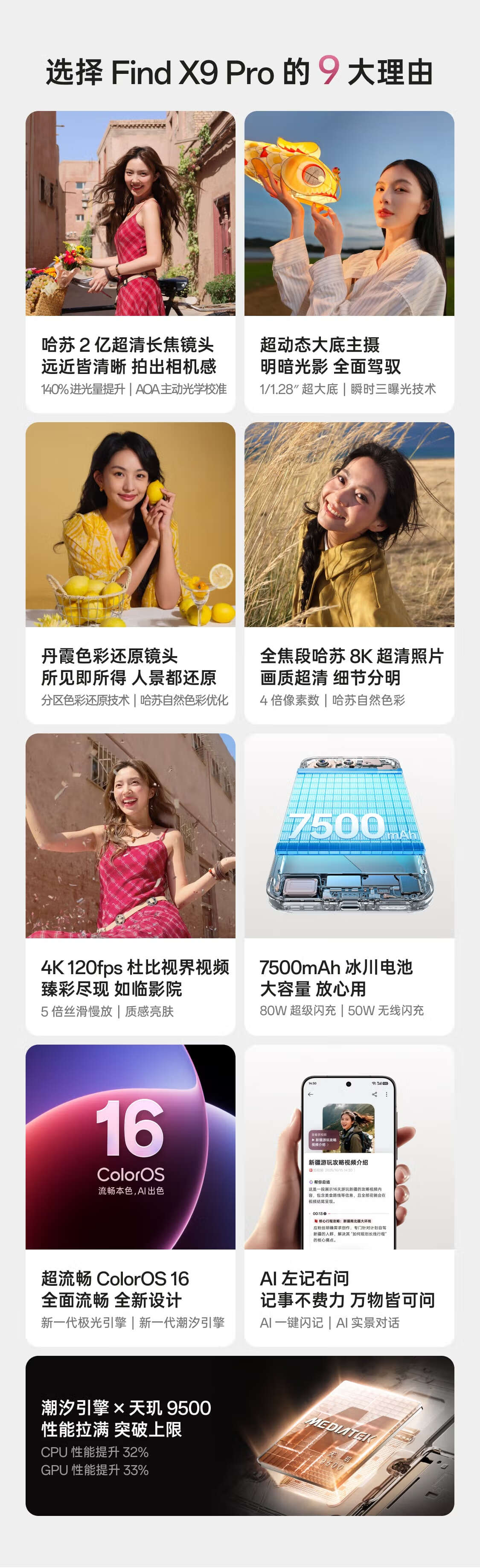 OPPO Find X9 Pro 12GB+256GB Velvet Titanium Hasselblad 200 Million Ultra-clear Telephoto Lens 5G Photography AI Smart Flagship Phone Same Model as Sun Yingsha