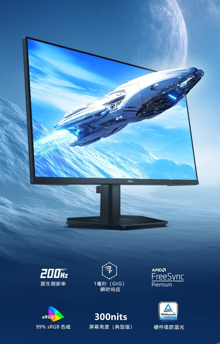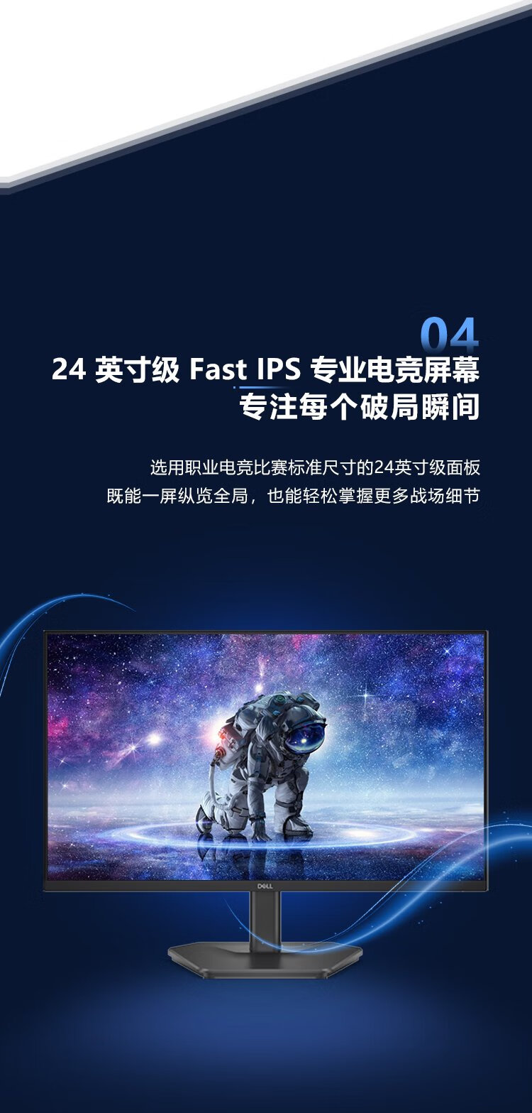 Dell (DELL) 23,8 Zoll Fast Ips FHD 200 Hz Low Blue Light FreeSync 99 % sRGB E-Sports-Game-Heimcomputer-Display SE2425HG