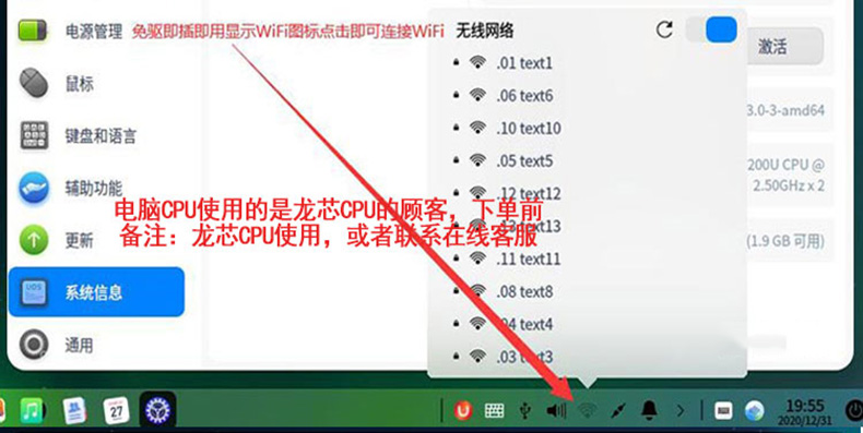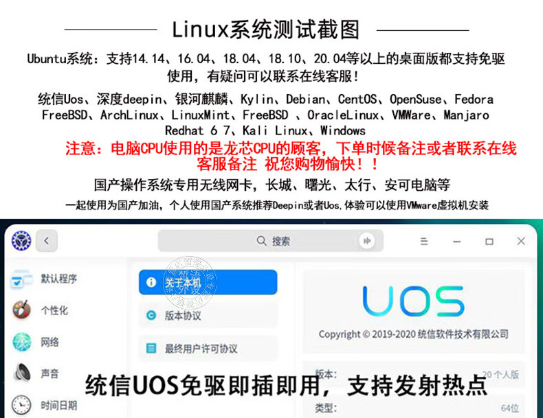 杰奇洛适用于国产麒丶麟|统信uos长丶城|安可电脑deepin系统无线网卡ubuntu kylin 1300兆双天线【支持开热点】银河麒麟uosUbu 标配