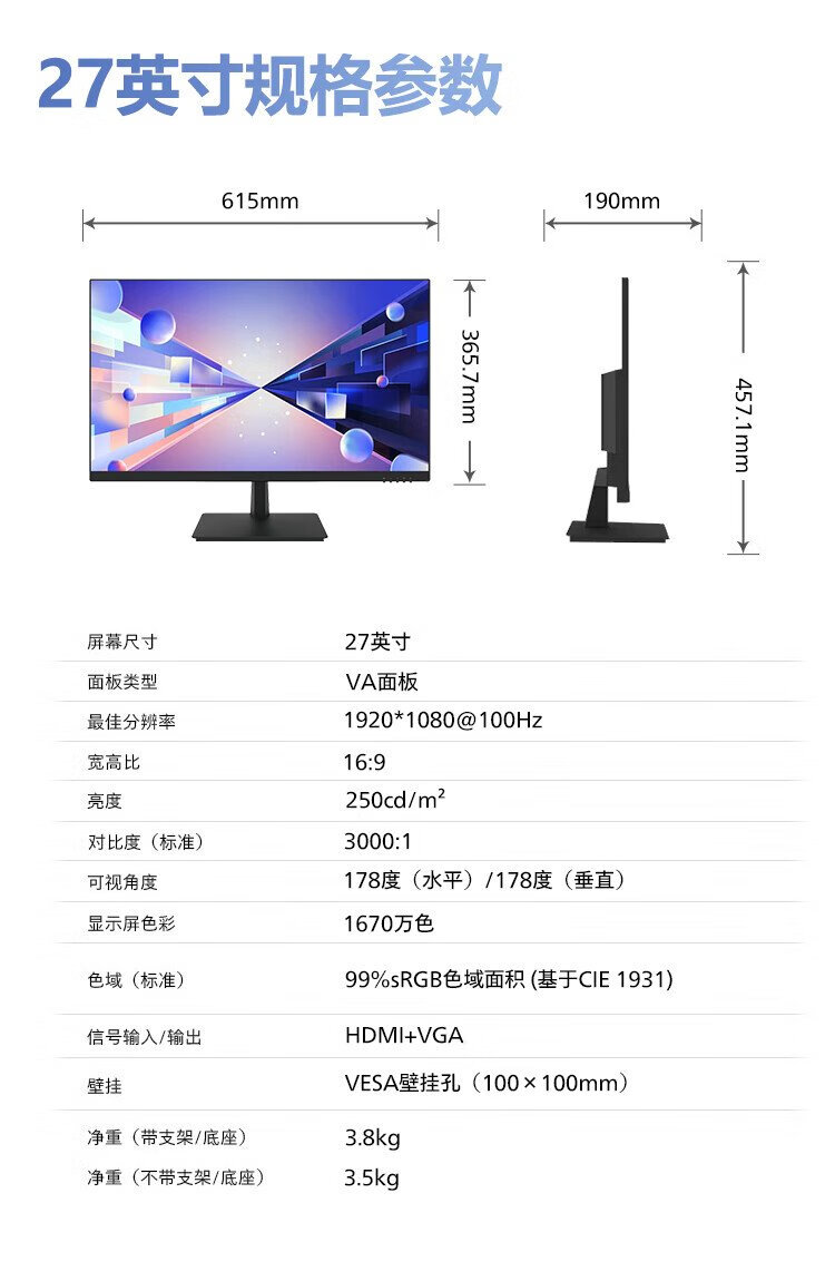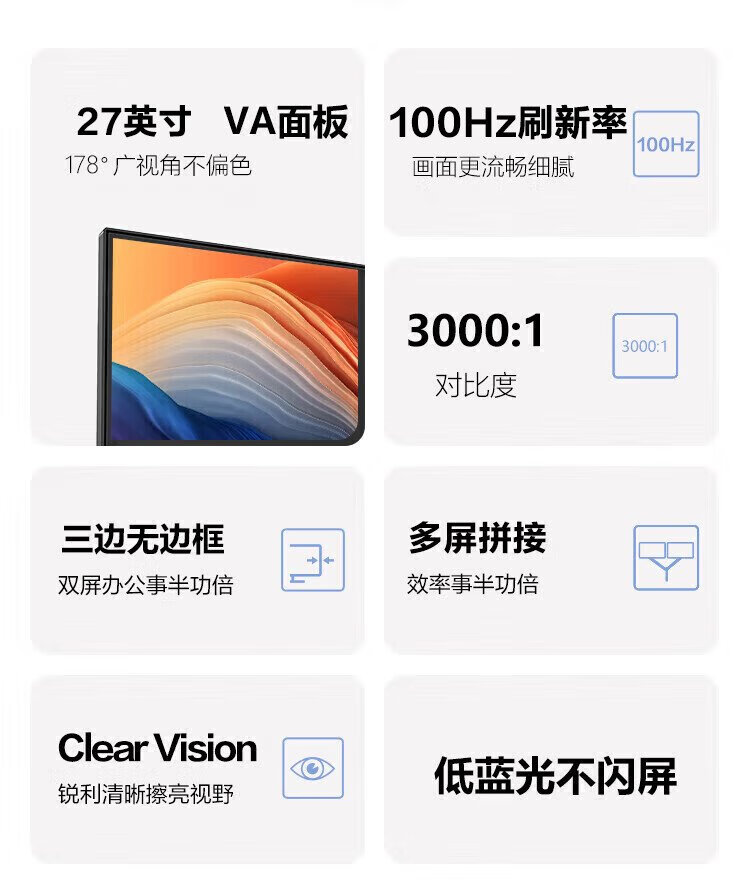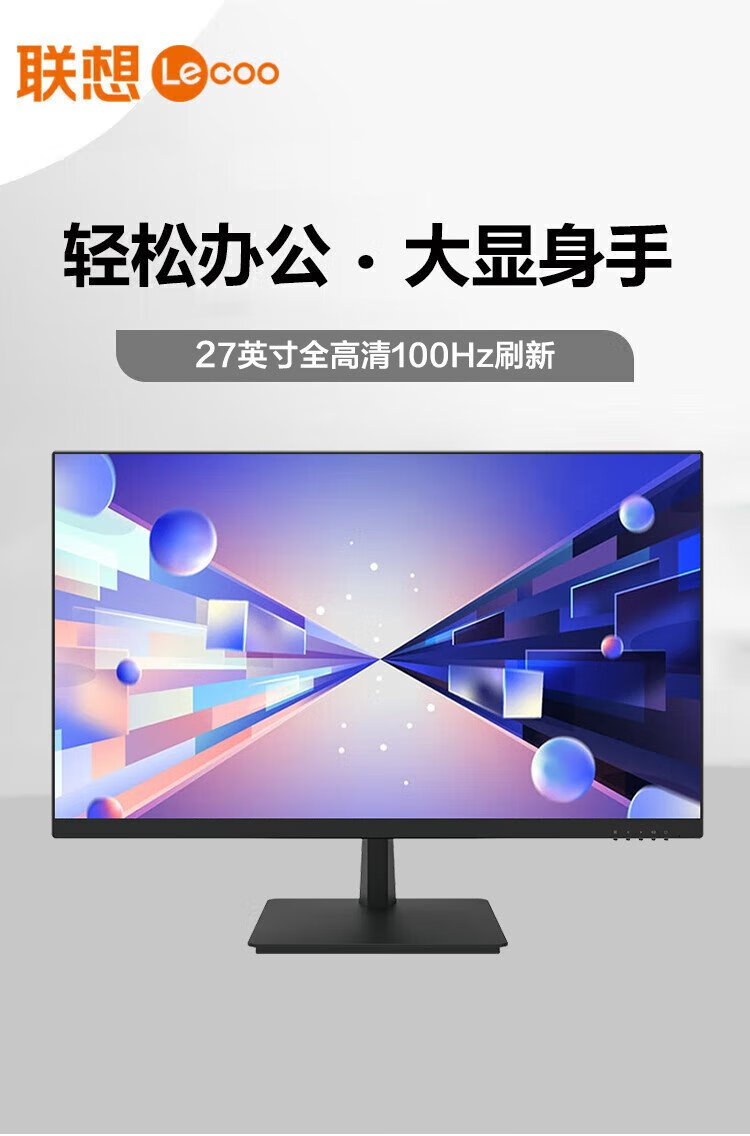 Lenovo 27-inch monitor 100Hz high refresh 1080P full HD TUV eye-friendly certification low blue light non-flicker screen HDMI interface micro-frame home office computer display screen 27-inch/100Hz refresh rate