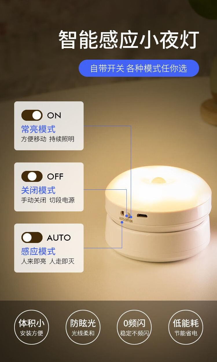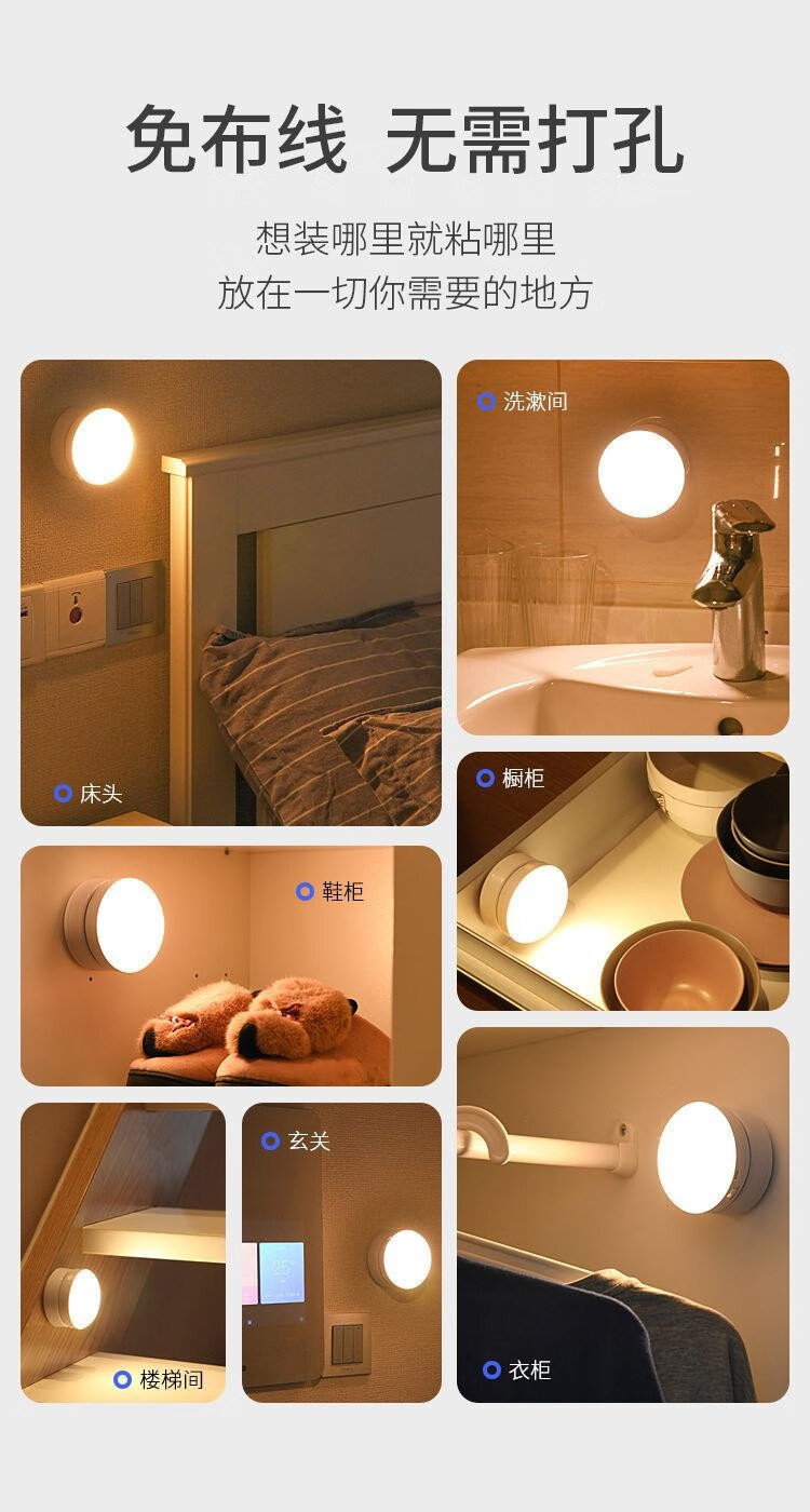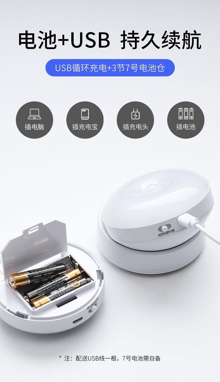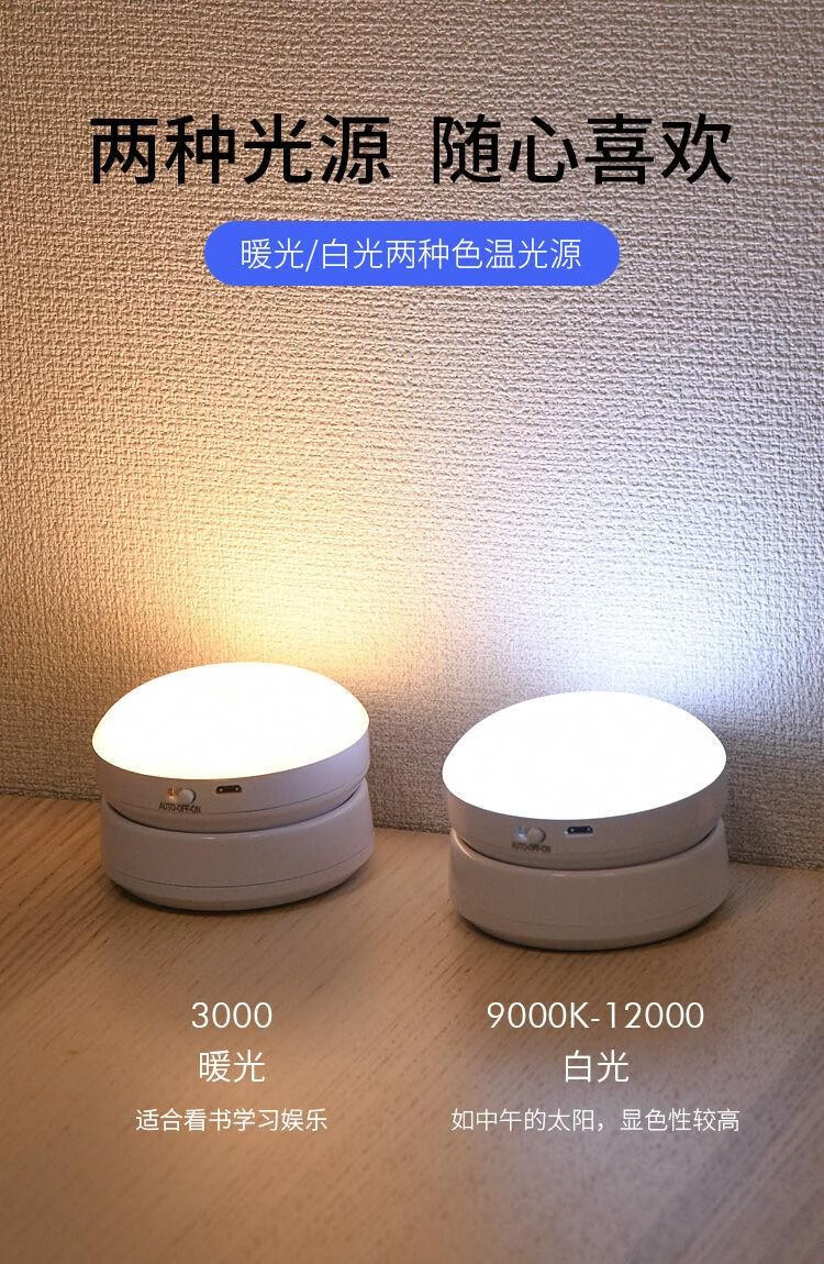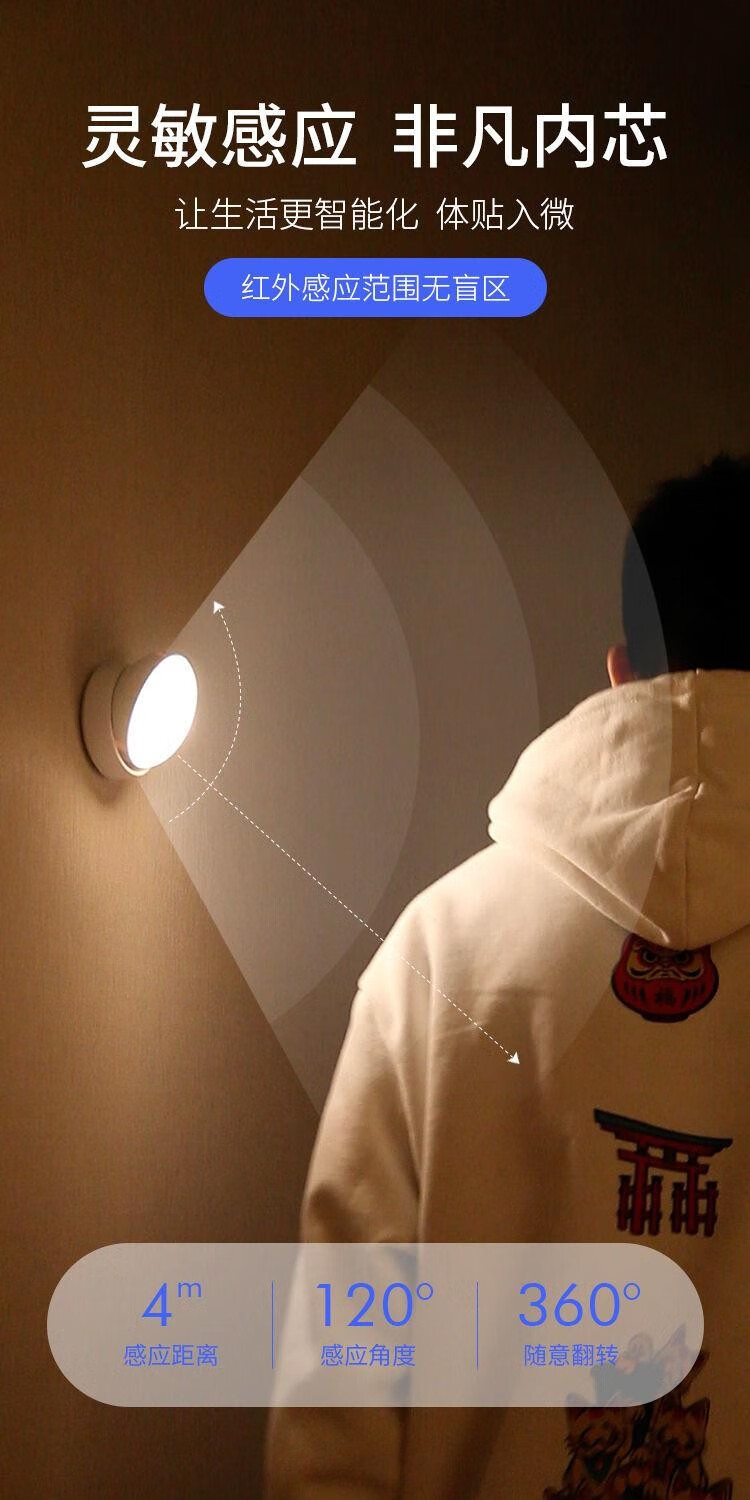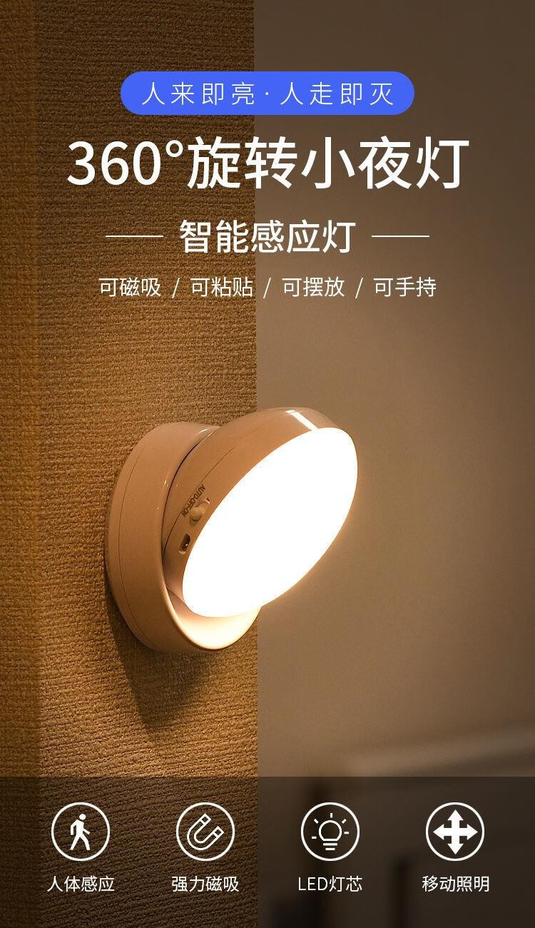 Nuofeng Veilleuse LED rotative intelligente avec détection du corps humain, charge USB, contrôle de la lumière, couloir, couloir, salle de bain, batterie rotative/modèle rechargeable (lumière blanche)