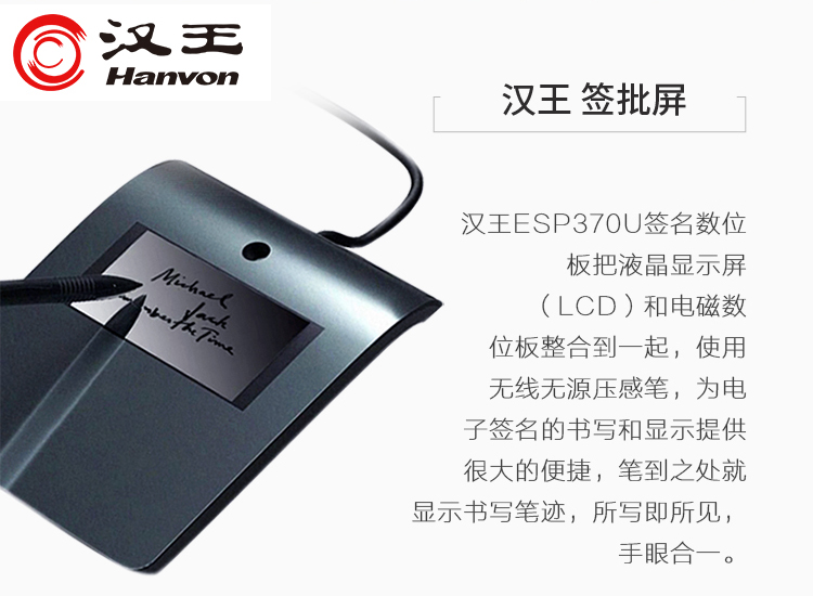 汉王(Hanvon) 签批板ESP370U原笔迹签字电子屏签名板专用支持各种浏览器二次开发国产系统 ESP370U谷歌(驾考版)