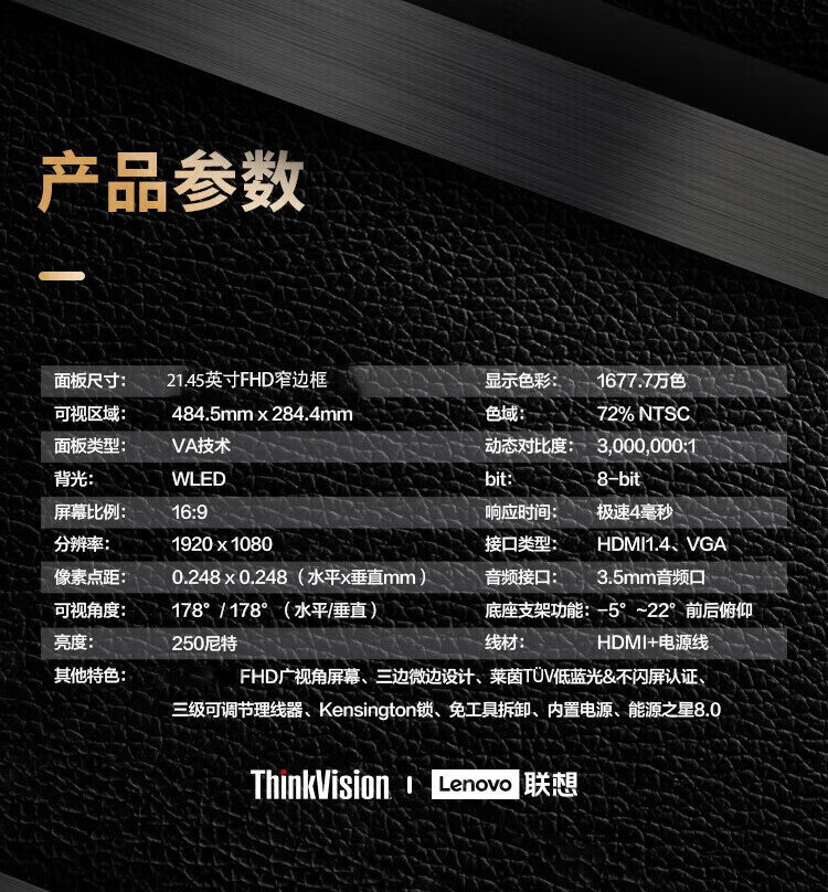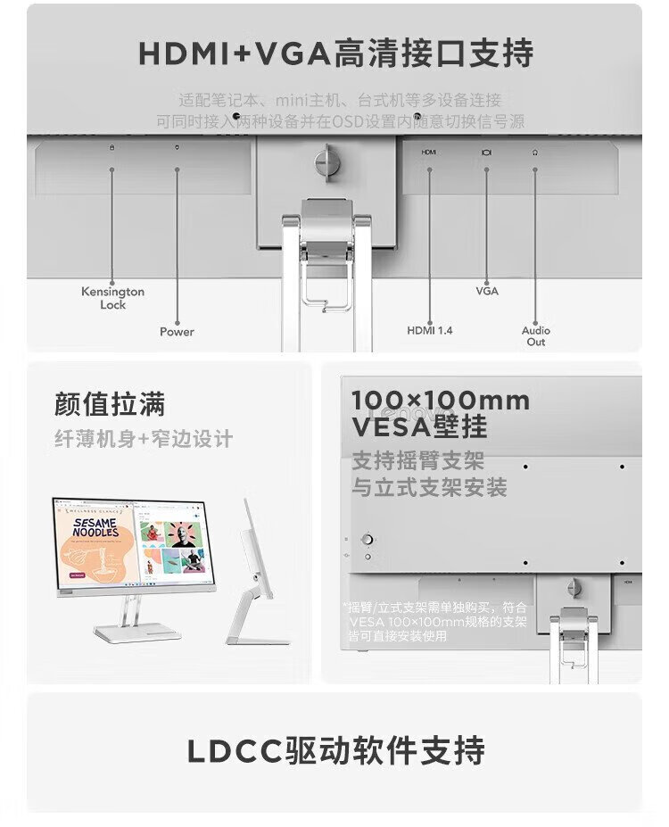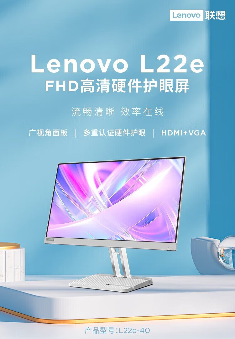 Монитор Lenovo с диагональю 21,5 дюйма, широкий угол обзора Full HD, безопасная для глаз сертификация TUV, аппаратный фильтр синего света, без мерцания, домашний офис, настольный ЖК-экран L22e-40 (белый)