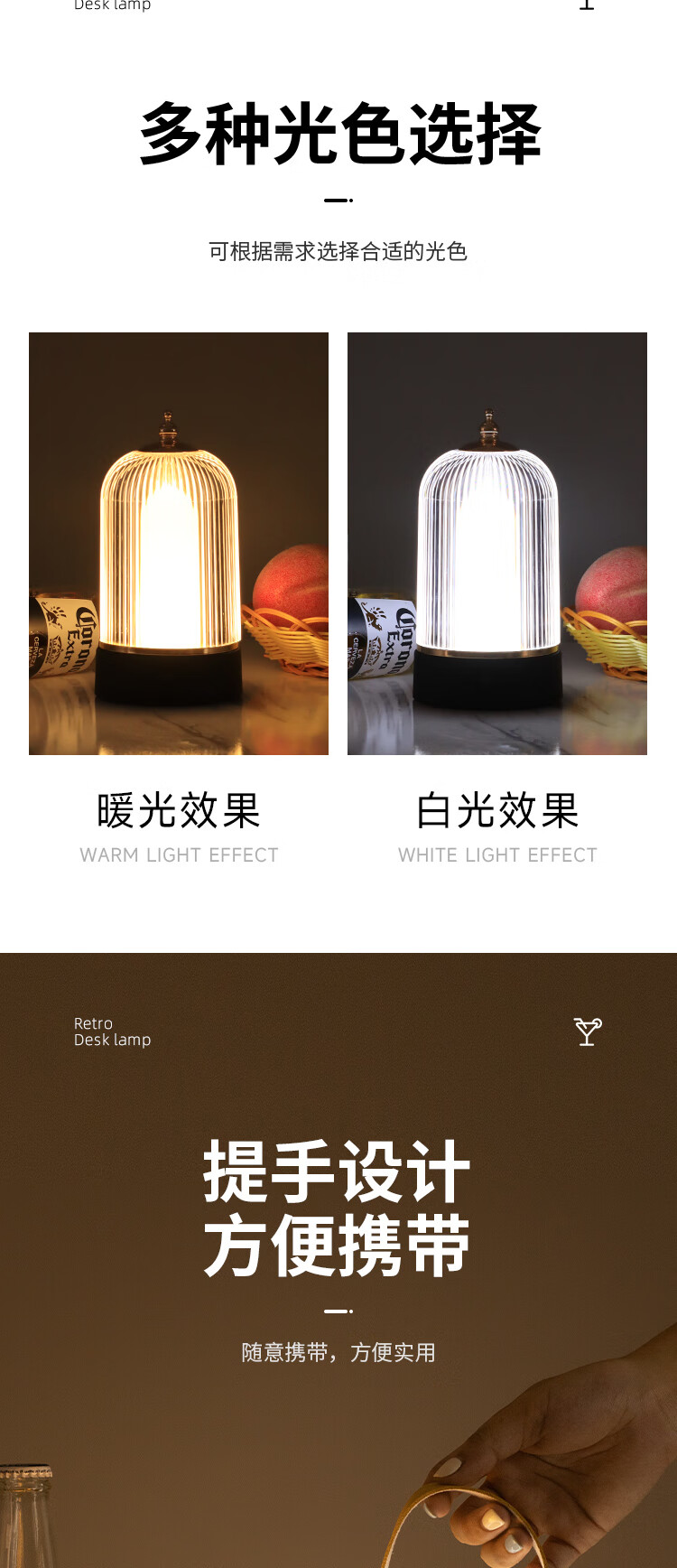 OUMAIHE bar table lamp rechargeable LED bar table lamp table lamp night light creative restaurant clear bar table lamp bar atmosphere light hand + three-color light + charger (button switch) dimmer switch
