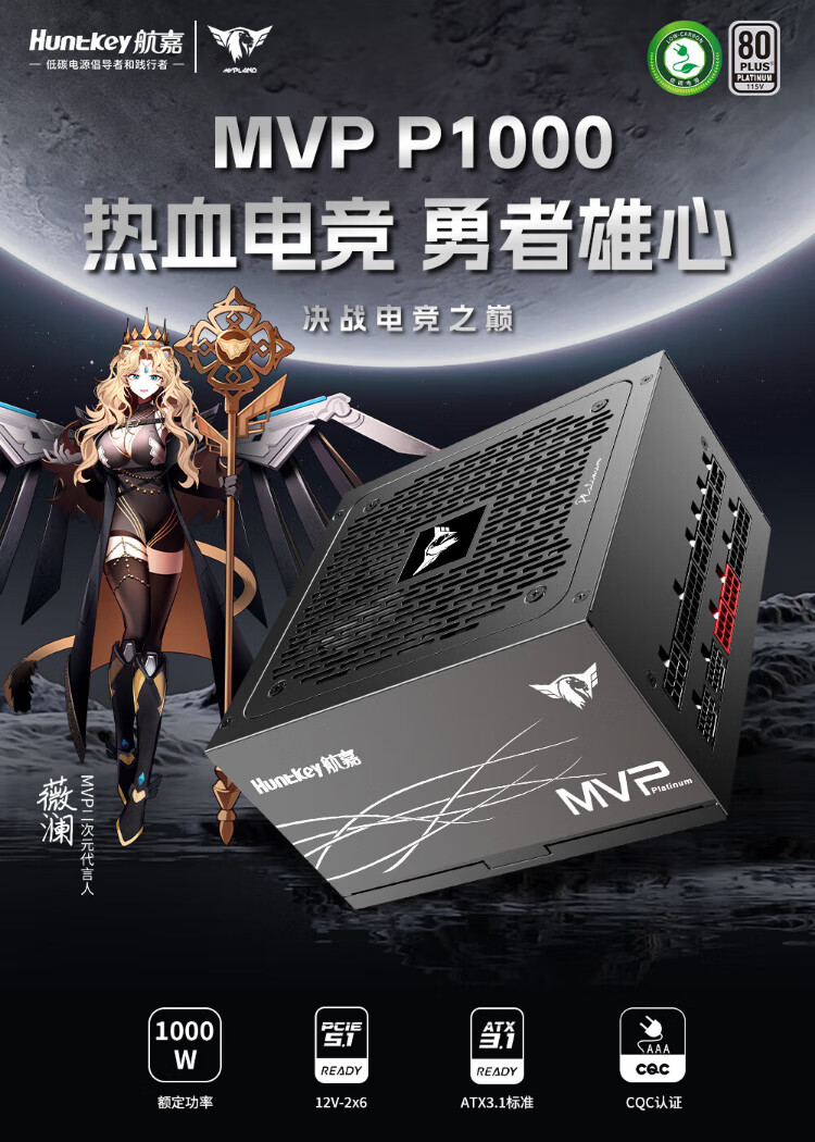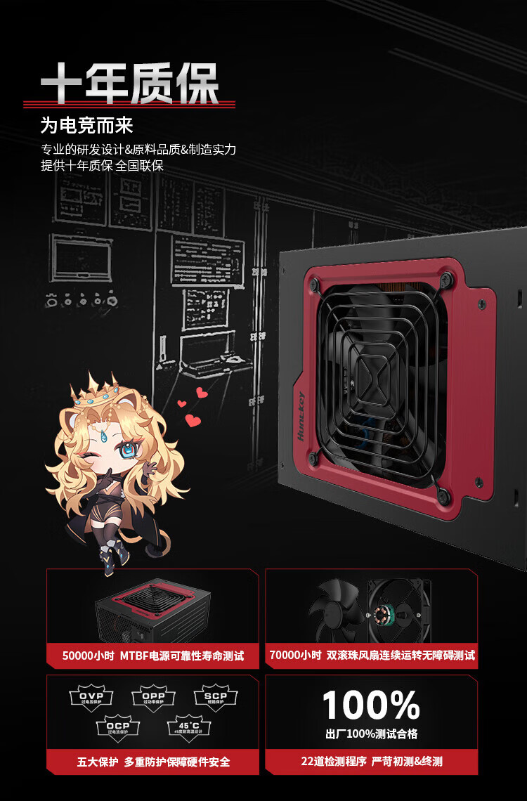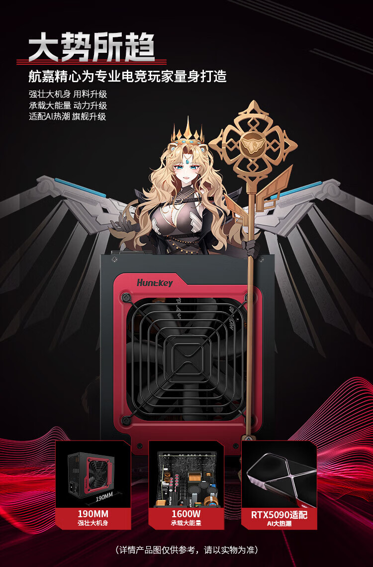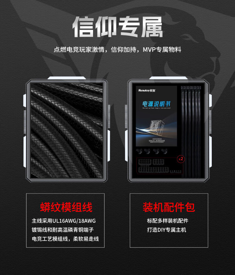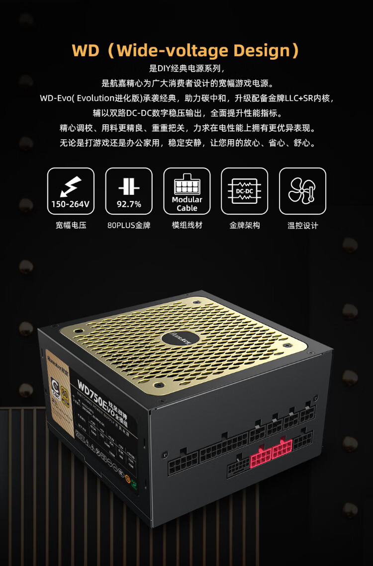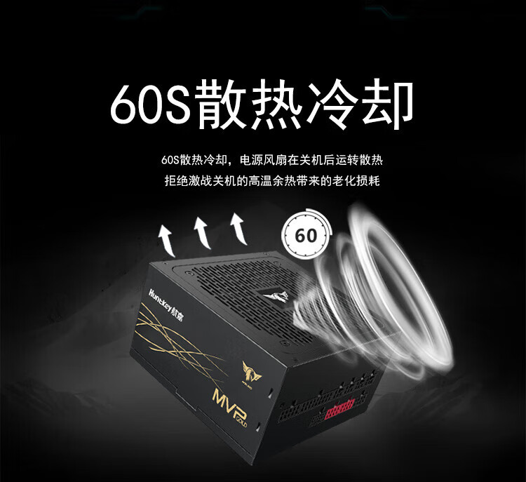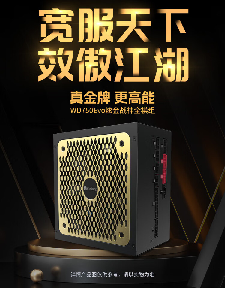 Huntkey WD750EVO dazzling gold Ares desktop host computer power supply rated 750W/850W/1000W/1200W/1600W full module power supply PCIE5.1 interface MVP K850 black-850W gold medal (five-year warranty) full module