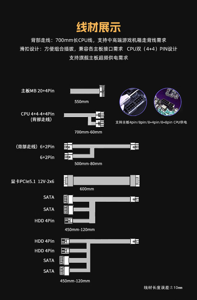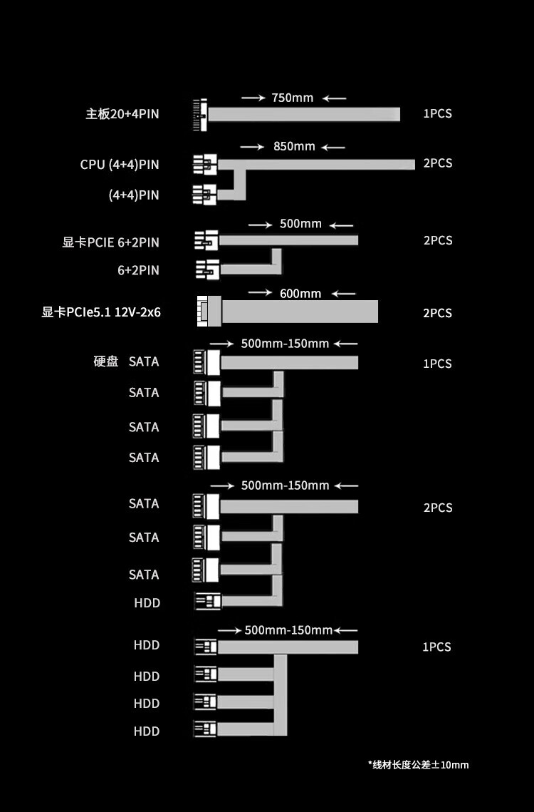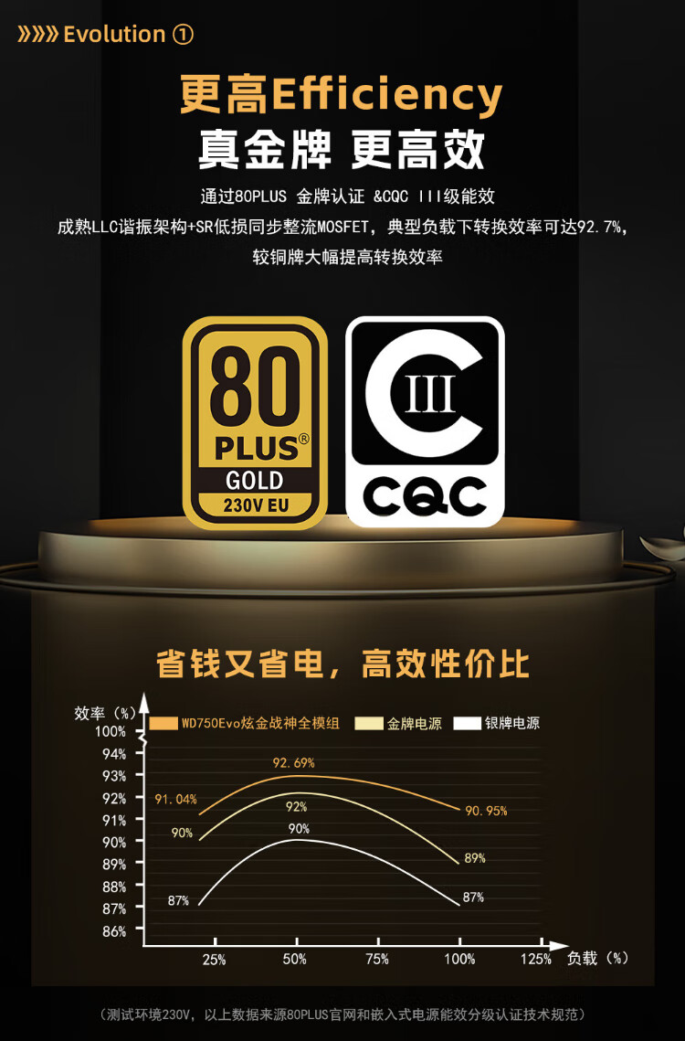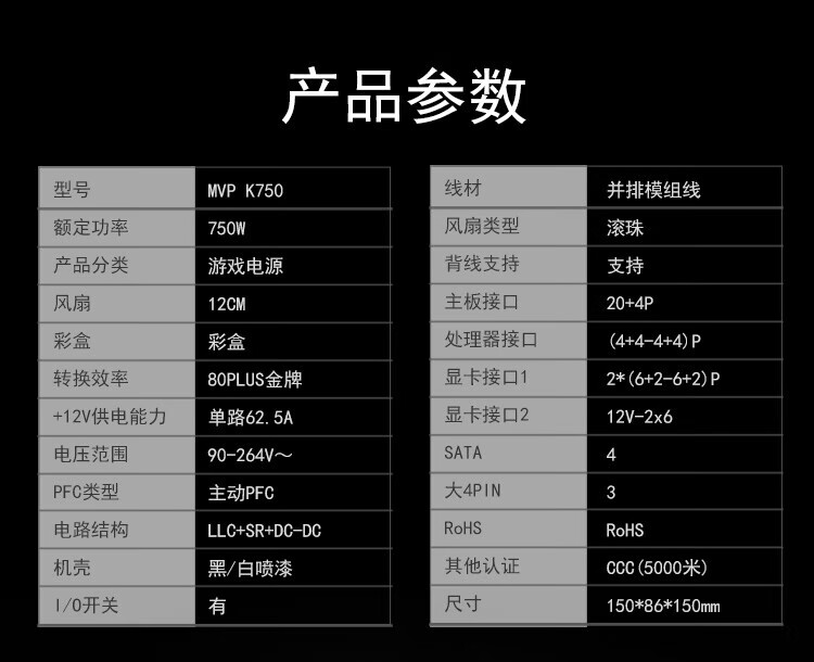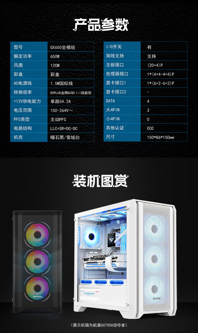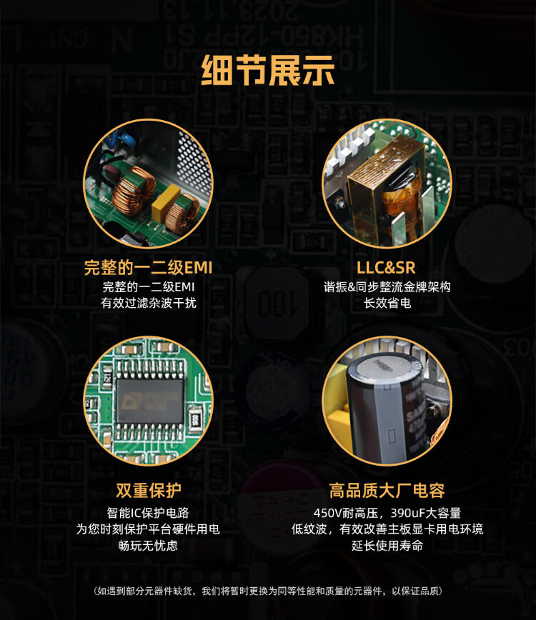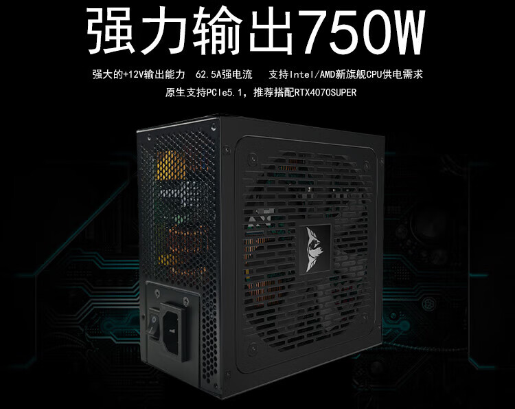 Huntkey WD750EVO dazzling gold Ares desktop host computer power supply rated 750W/850W/1000W/1200W/1600W full module power supply PCIE5.1 interface MVP K850 black-850W gold medal (five-year warranty) full module