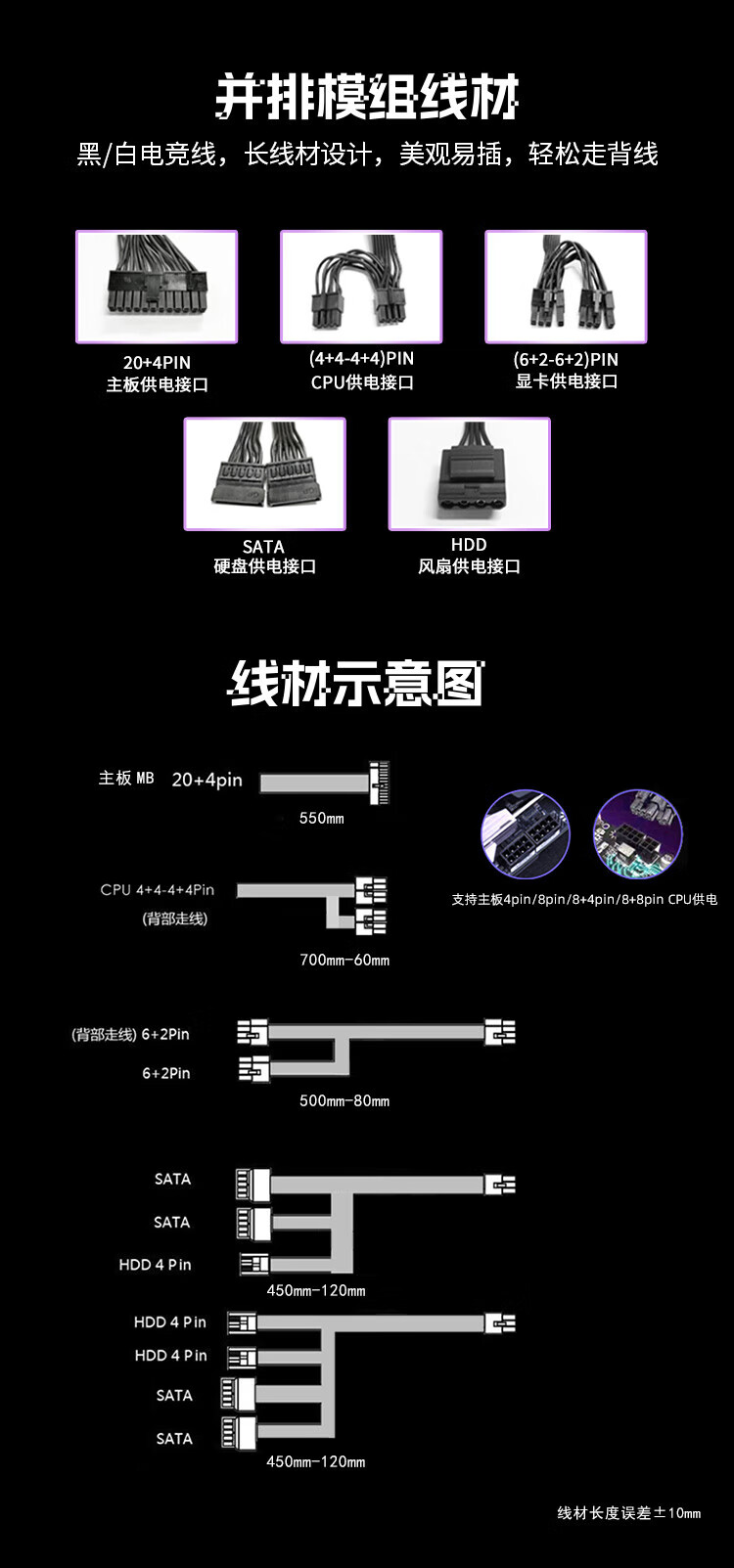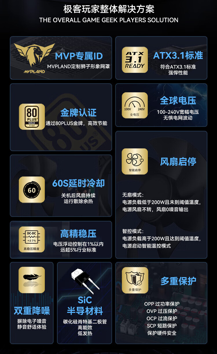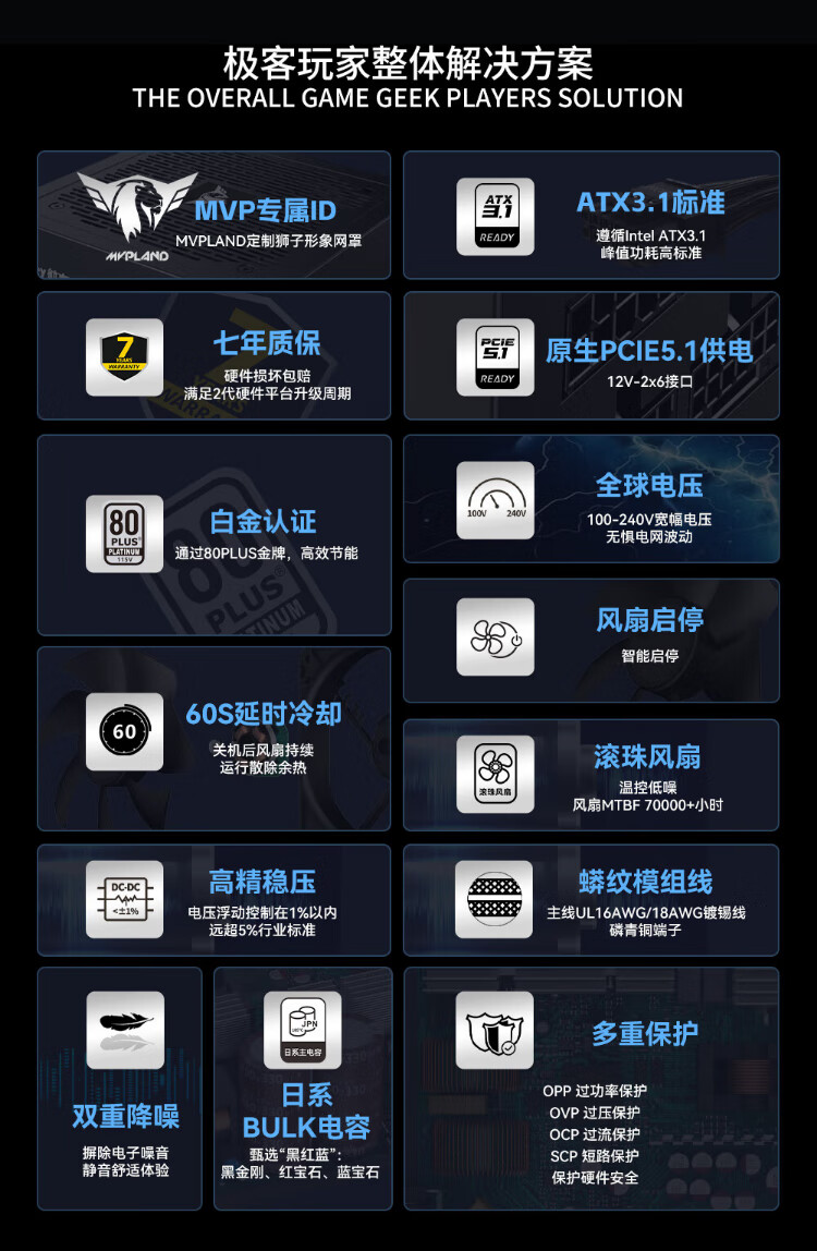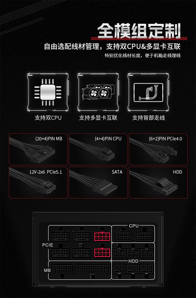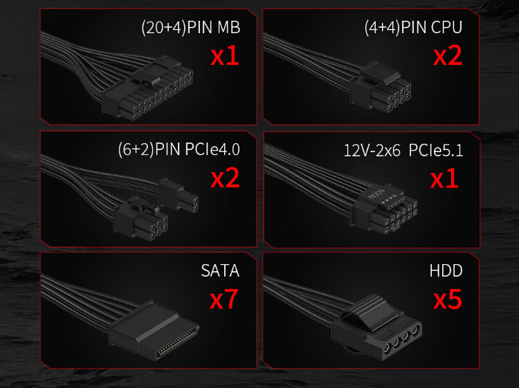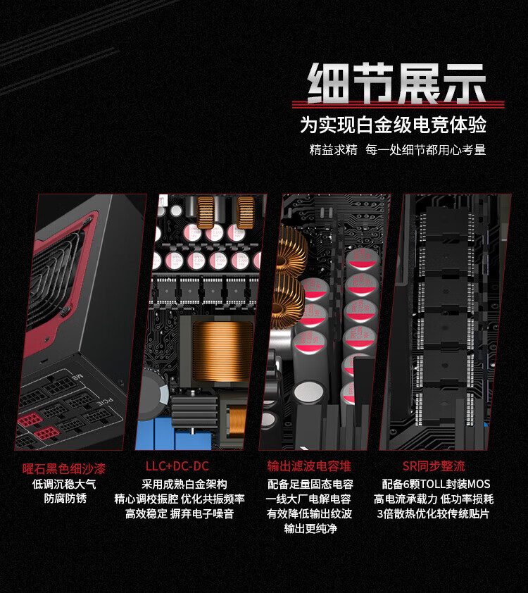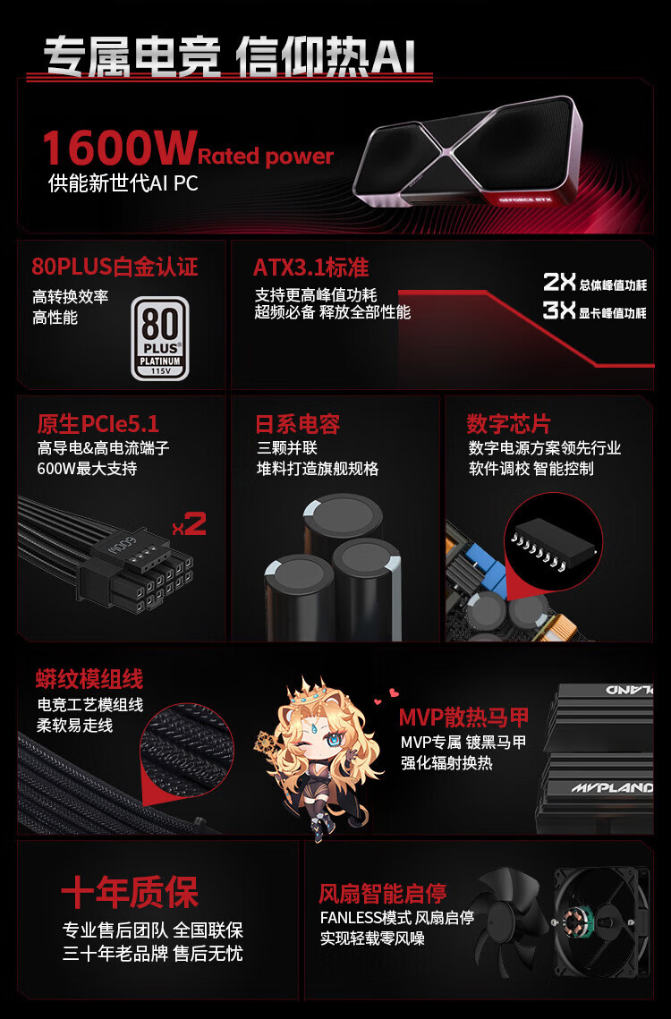 Huntkey WD750EVO dazzling gold Ares desktop host computer power supply rated 750W/850W/1000W/1200W/1600W full module power supply PCIE5.1 interface MVP K850 black-850W gold medal (five-year warranty) full module