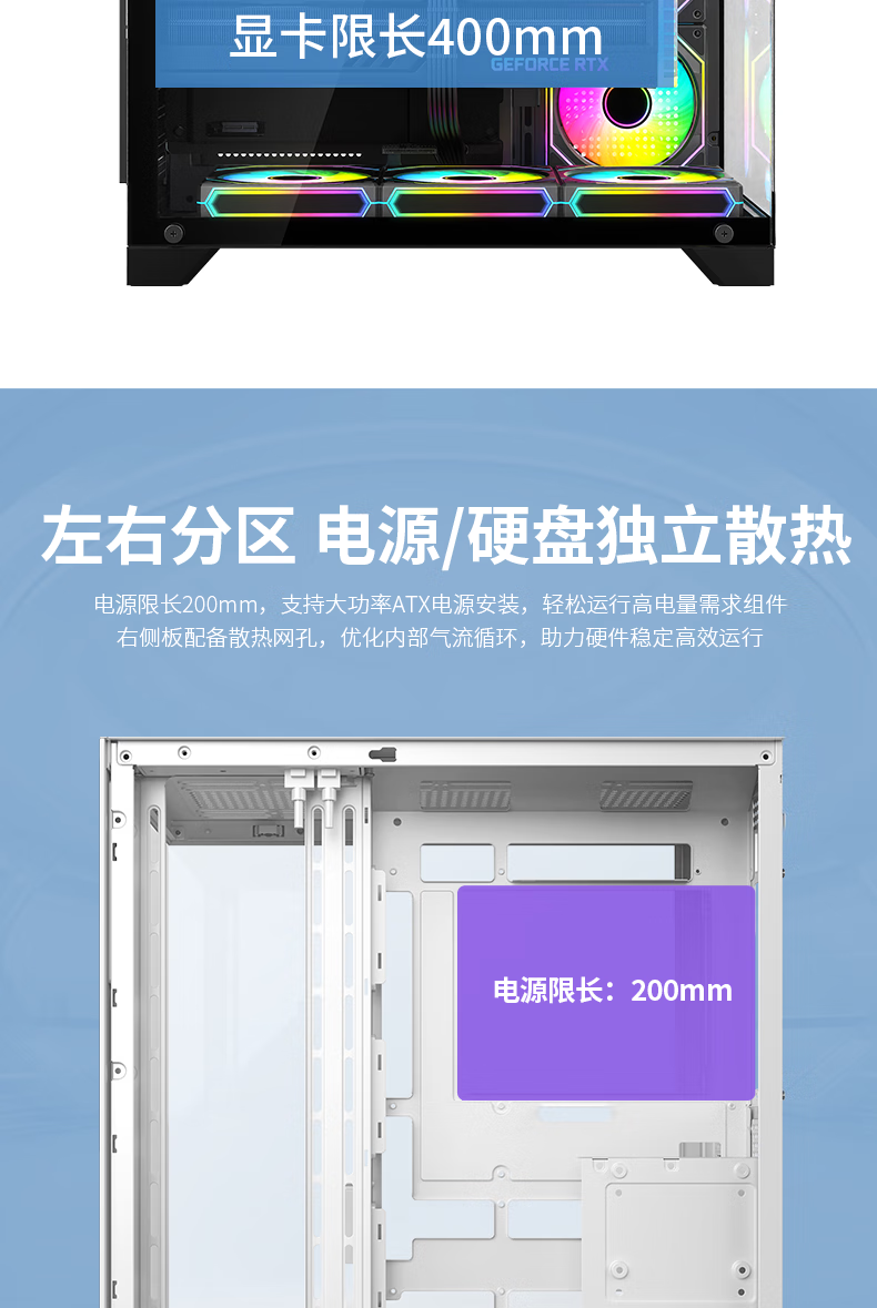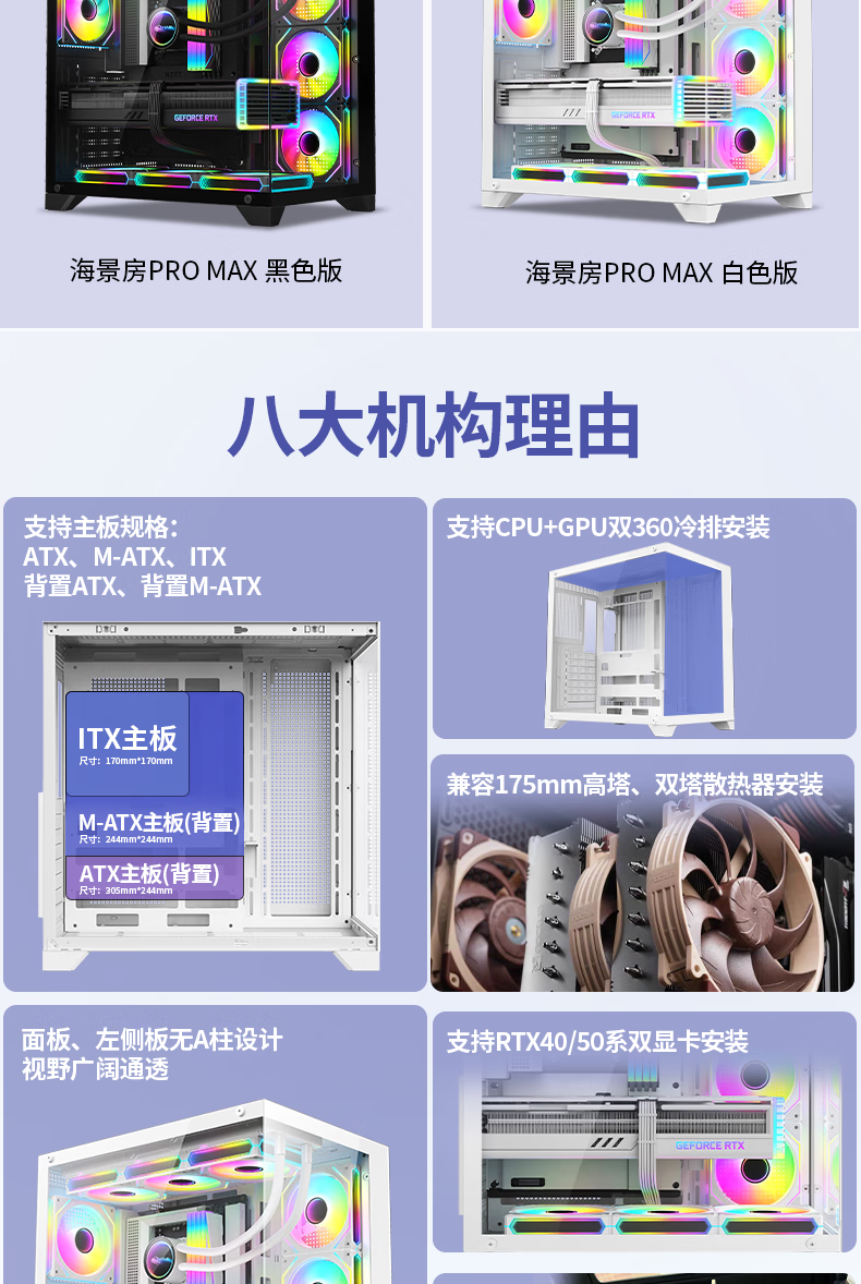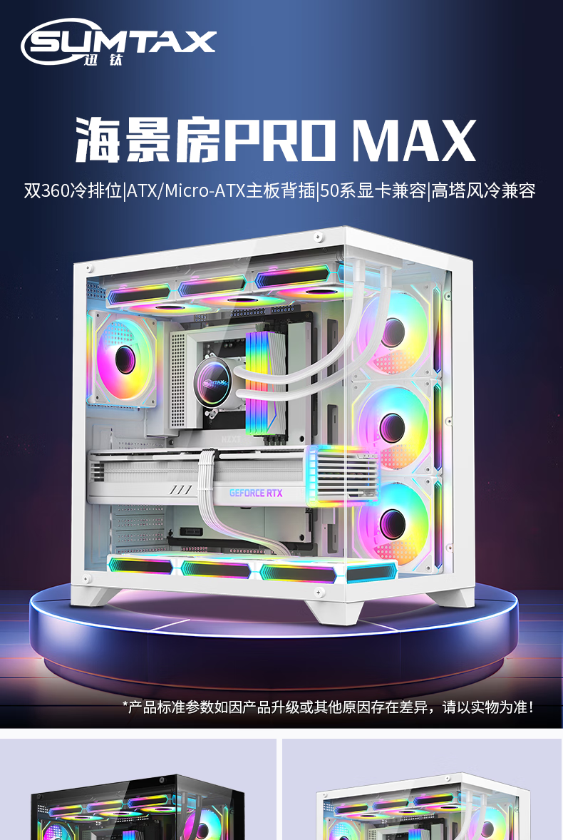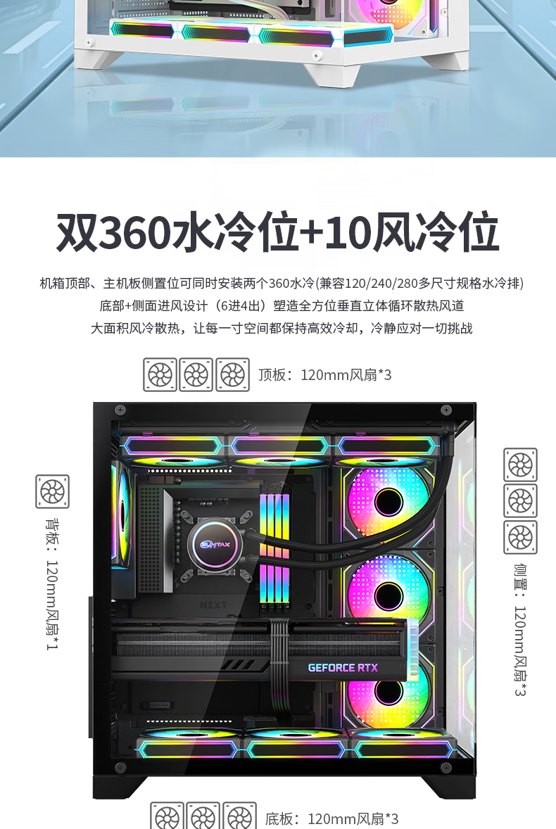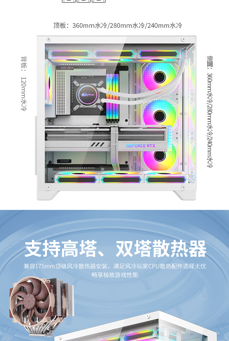 EVESKY Sea View Room PRO Computer Case Game Case Desktop Computer Main Case (Tempered Glass/Left and Right Partitions/360 Water Cooling/ATX Motherboard/40 Series Graphics Card) Sea View Room PRO-White + 10 Twilight Colorful Fans
