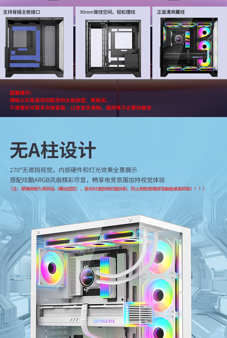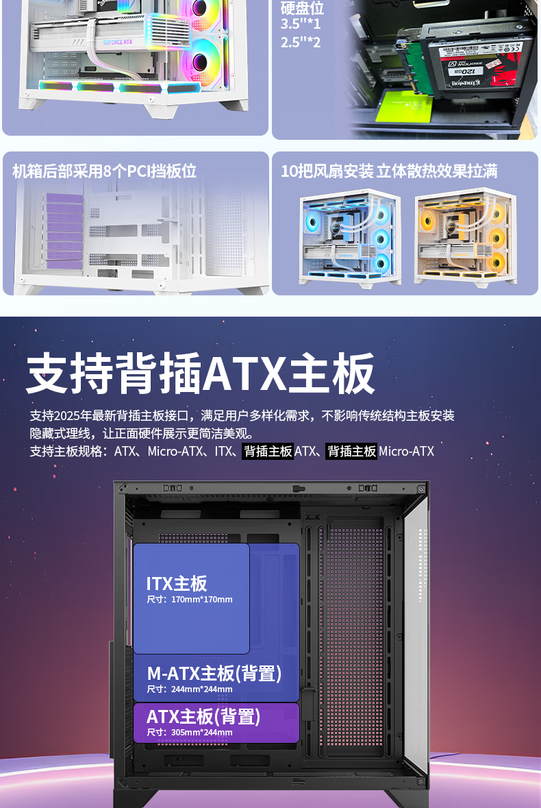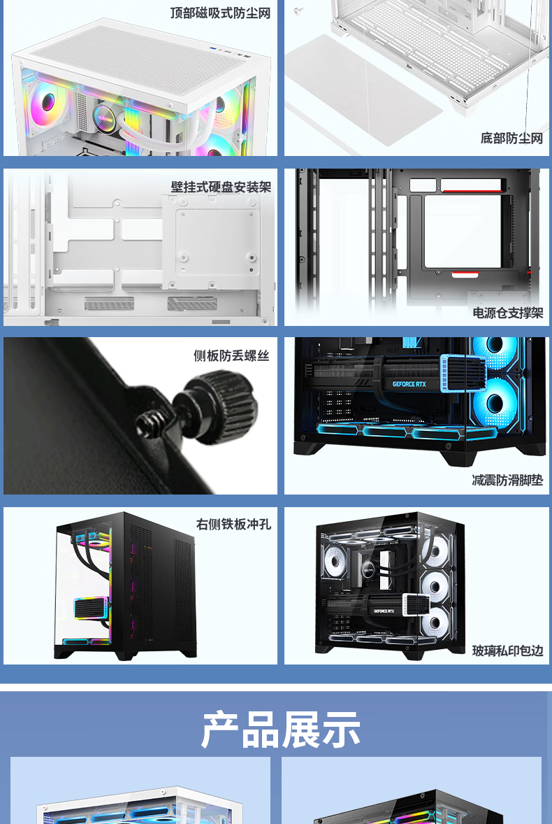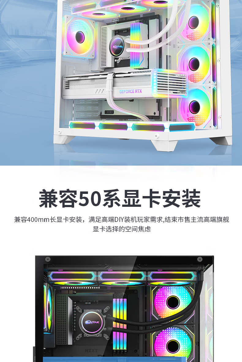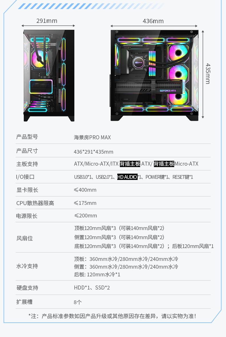 EVESKY Sea View Room PRO Computer Case Game Case Desktop Computer Main Case (Tempered Glass/Left and Right Partitions/360 Water Cooling/ATX Motherboard/40 Series Graphics Card) Sea View Room PRO-White + 10 Twilight Colorful Fans