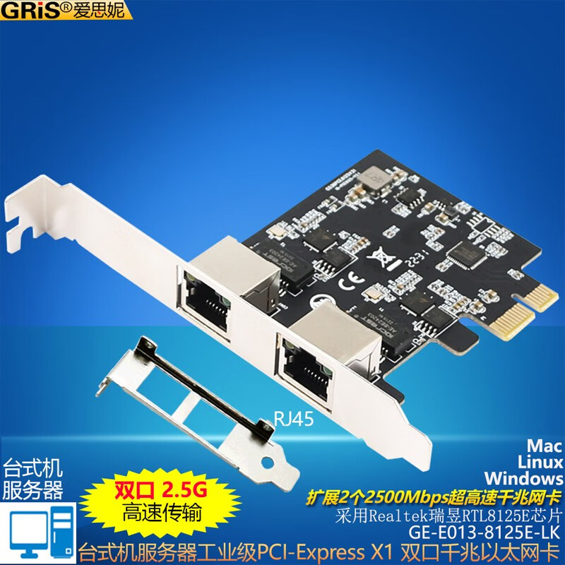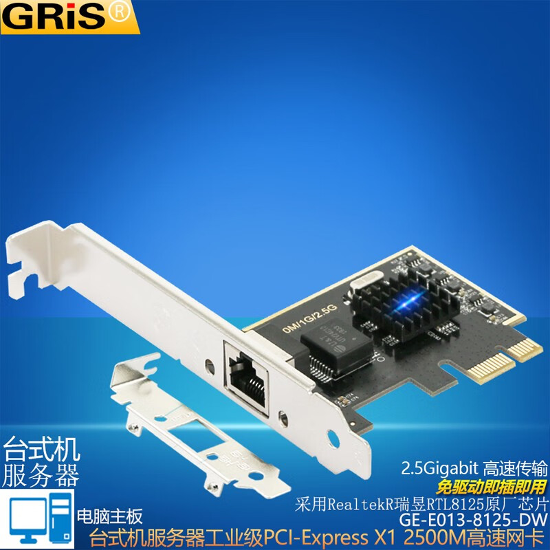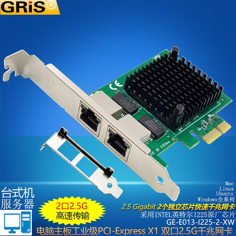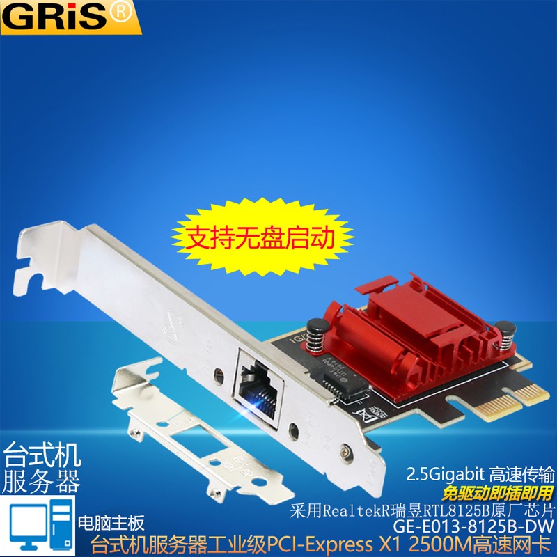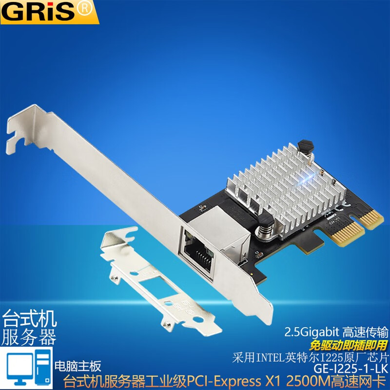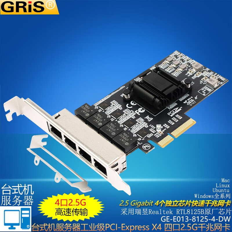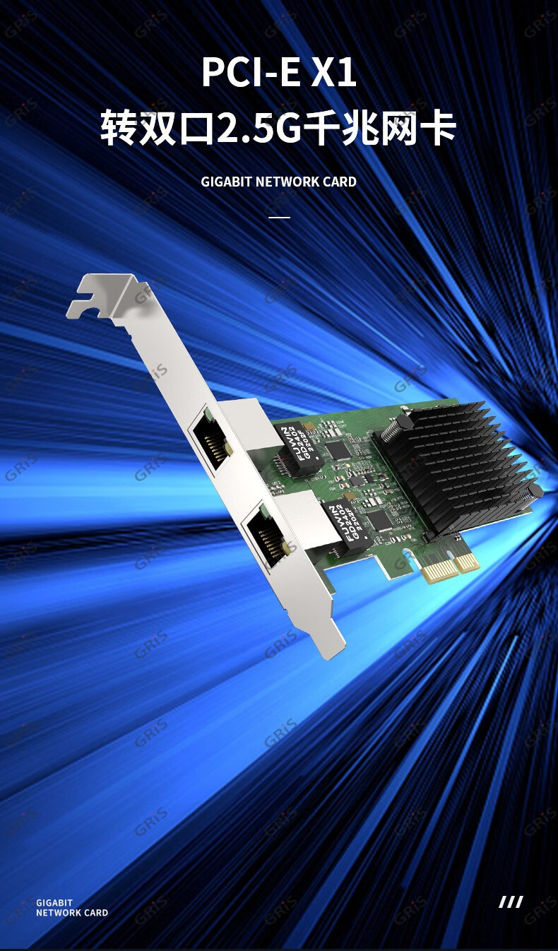 GRIS PCI-E to 2.5G Gigabit network card 2500M computer 4-port 2500M desktop M2 server I225V Synology esxi soft routing convergence RTL8125B mini mini 8125B chip 2.5G single port LD