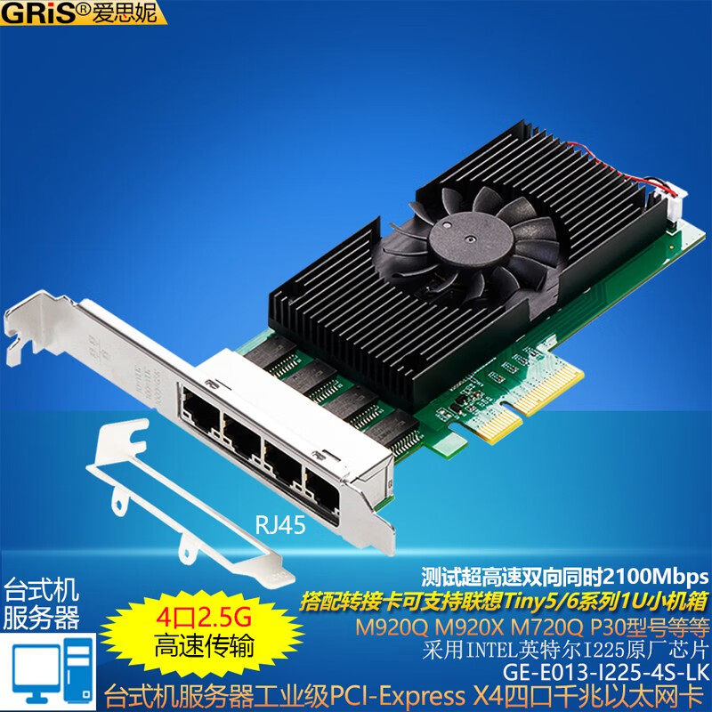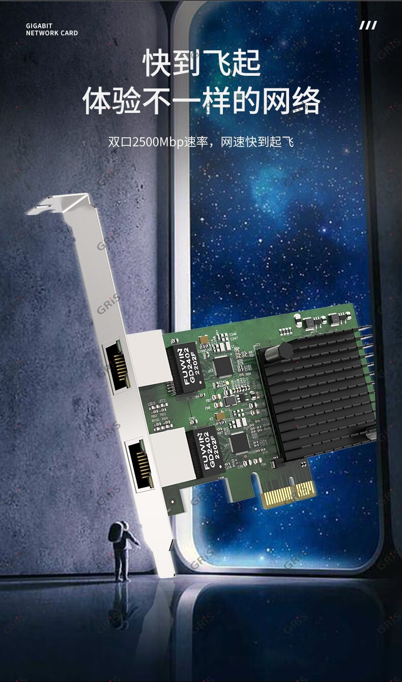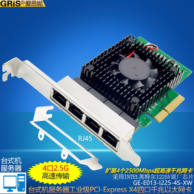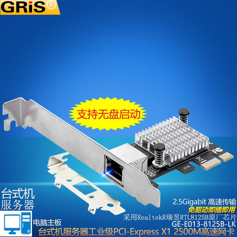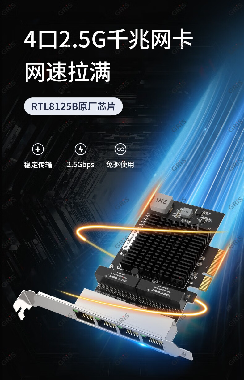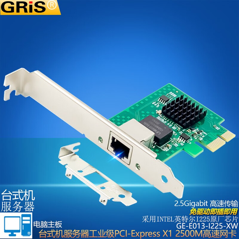 GRIS PCI-E to 2.5G Gigabit network card 2500M computer 4-port 2500M desktop M2 server I225V Synology esxi soft routing convergence RTL8125B mini mini 8125B chip 2.5G single port LD