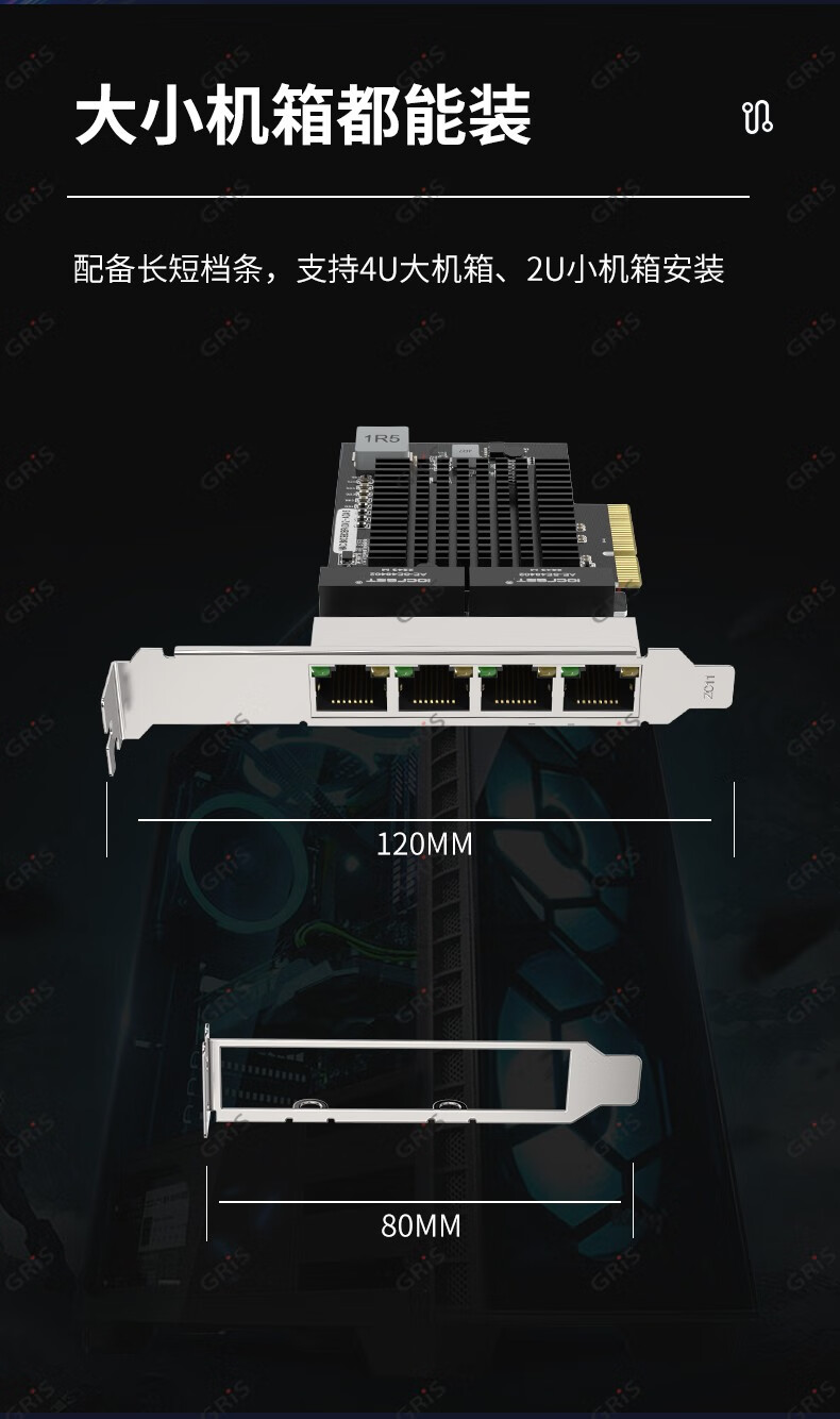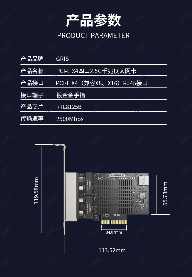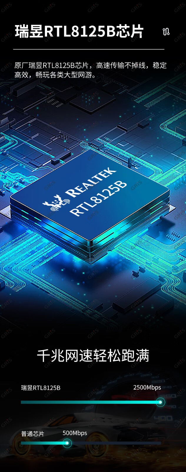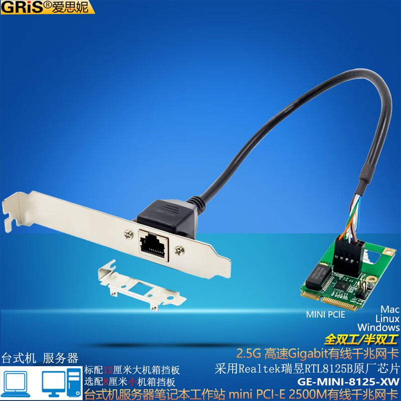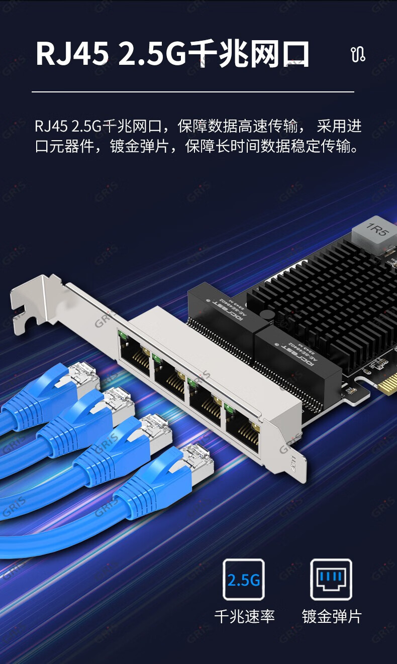 GRIS PCI-E to 2.5G Gigabit network card 2500M computer 4-port 2500M desktop M2 server I225V Synology esxi soft routing convergence RTL8125B mini mini 8125B chip 2.5G single port LD
