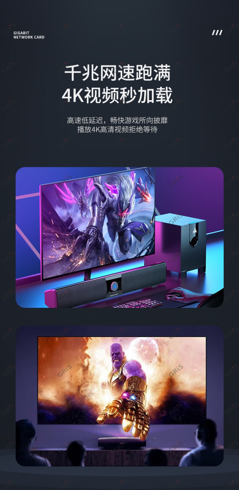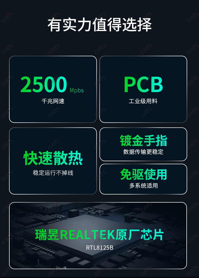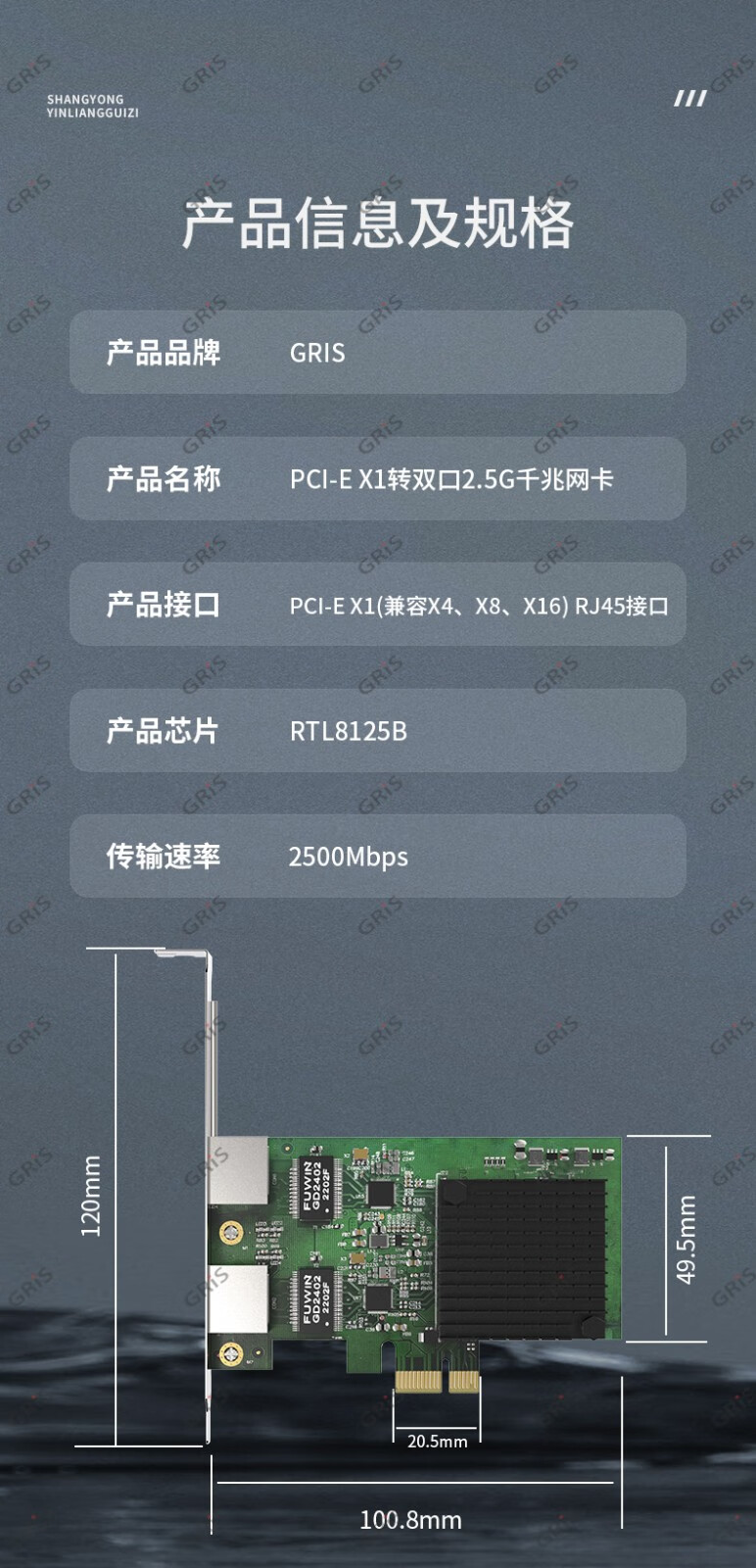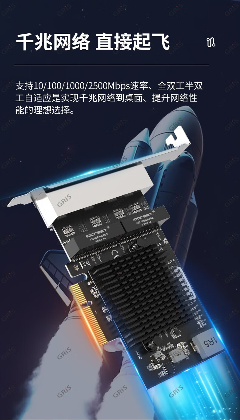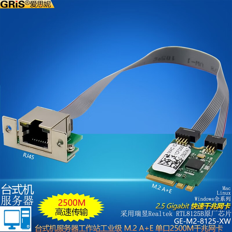 GRIS PCI-E to 2.5G Gigabit network card 2500M computer 4-port 2500M desktop M2 server I225V Synology esxi soft routing convergence RTL8125B mini mini 8125B chip 2.5G single port LD