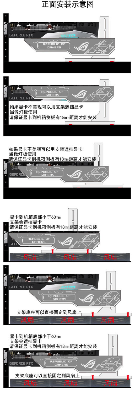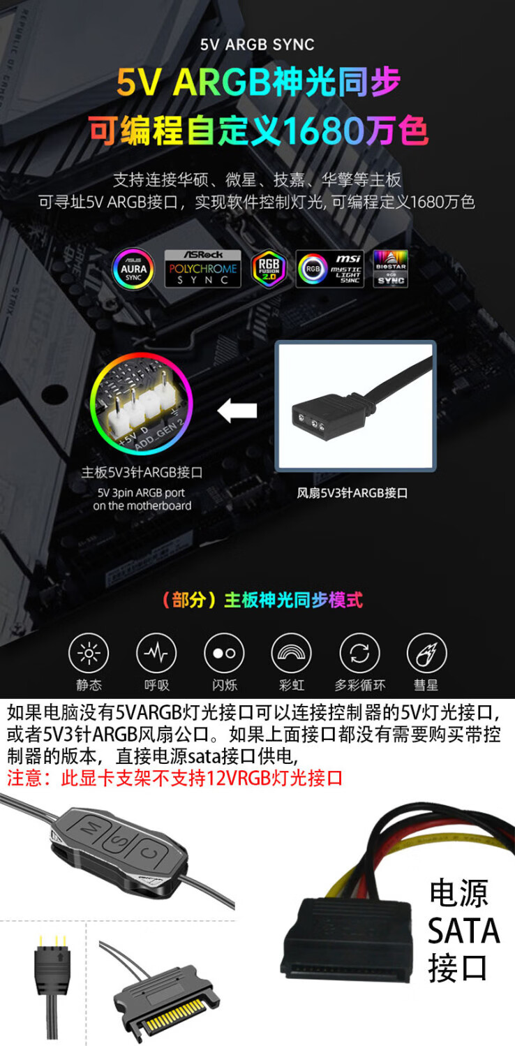 Computer graphics card bracket 5V3-pin ARGB divine light synchronized light-emitting board decoration thousand Jin Jin is equal to 0.5 kg top vertical support rod new vertical plate black ARGB interface TUF pattern