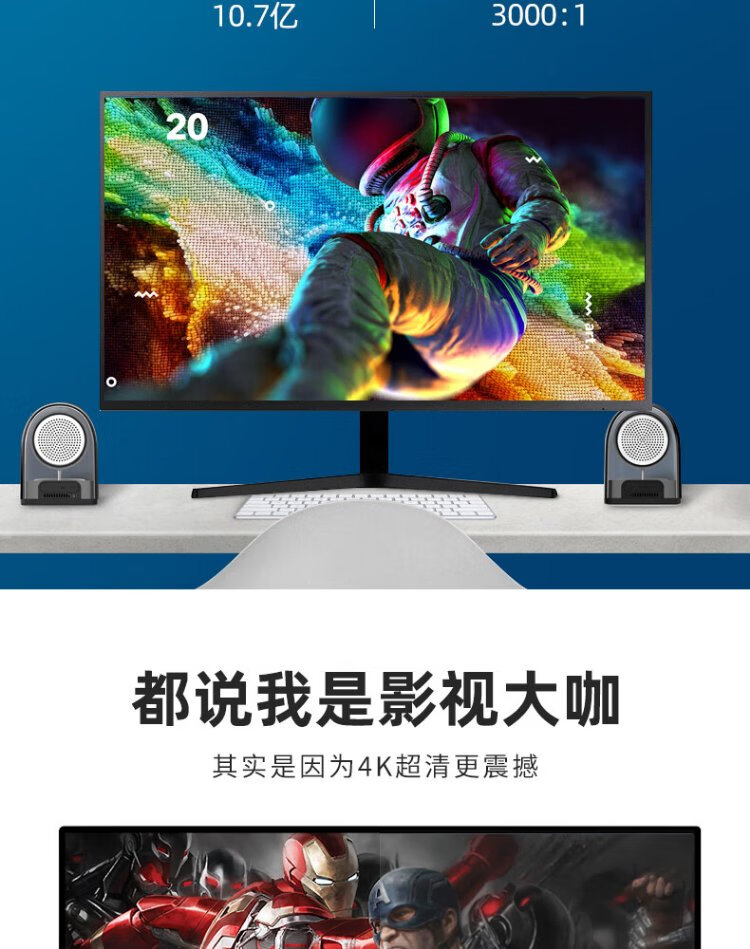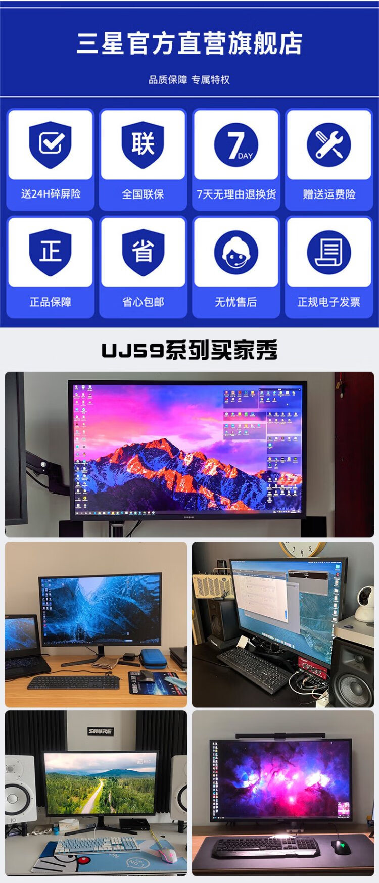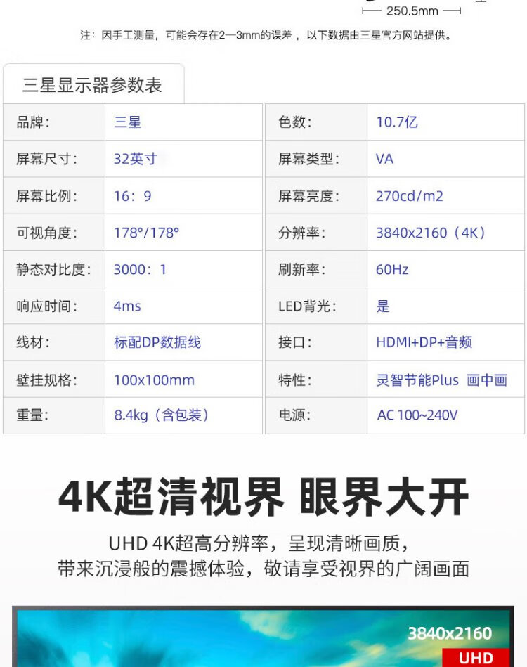 Samsung (SAMSUNG) 32-inch 4K monitor 1.07 billion colors HD large screen professional design editing PS5 external desktop computer display official standard U32J592UQC