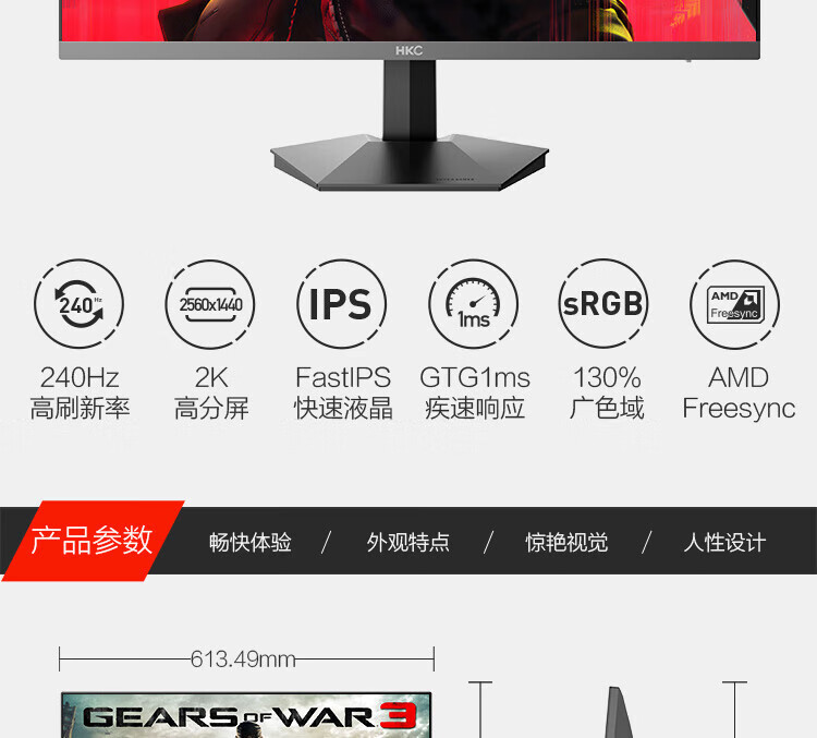 HKC 27英寸 2K 240HZ 电竞显示屏Fast IPS  GTG 1MS低蓝光不闪屏游戏电脑显示屏P3色域  IG27QK升级版 27英寸/2K/240HZ/IG27QK升级版
