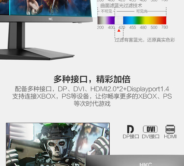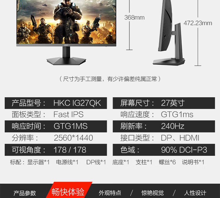 HKC 27英寸 2K 240HZ 电竞显示屏Fast IPS GTG 1MS低蓝光不闪屏游戏电脑显示屏P3色域 IG27QK升级版 27英寸/2K/240HZ/IG27QK升级版