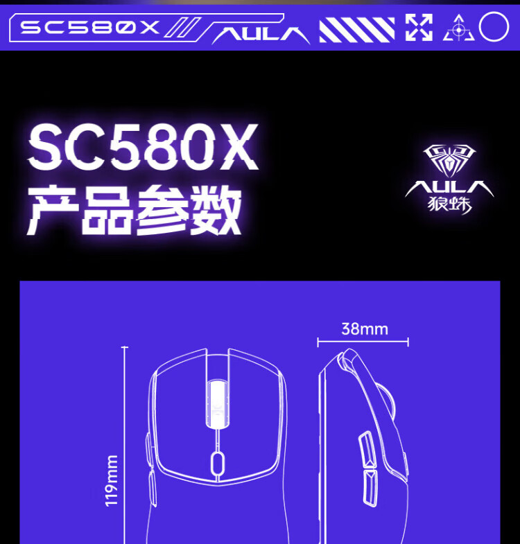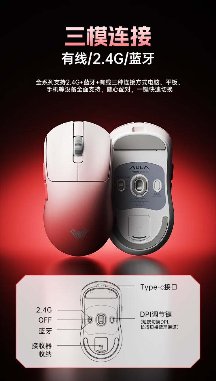 Wolf Spider (AULA) SC580/SC360SE kabellose Bluetooth-kabelgebundene Drei-Modus-Maus 10000DPI Gaming-Maus leichte E-Sport-Maus Computer Notebook Universal SC580 Chiyanhong-freier Anti-Rutsch-Aufkleber