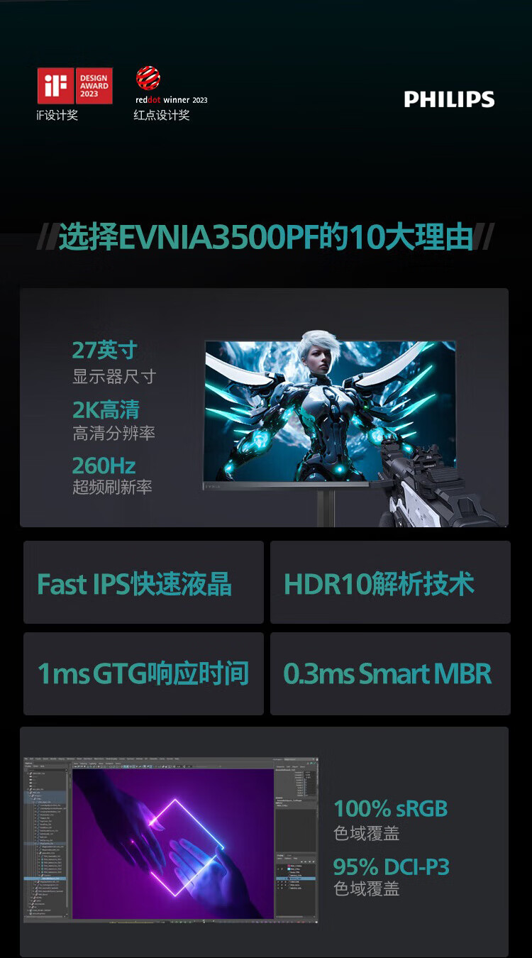 Philips EVNIA Yiwei 27-inch 2K240Hz gaming HD monitor FastIPS fast LCD 1ms HDR400 gaming display screen 27M2N5510P 2K240Hz