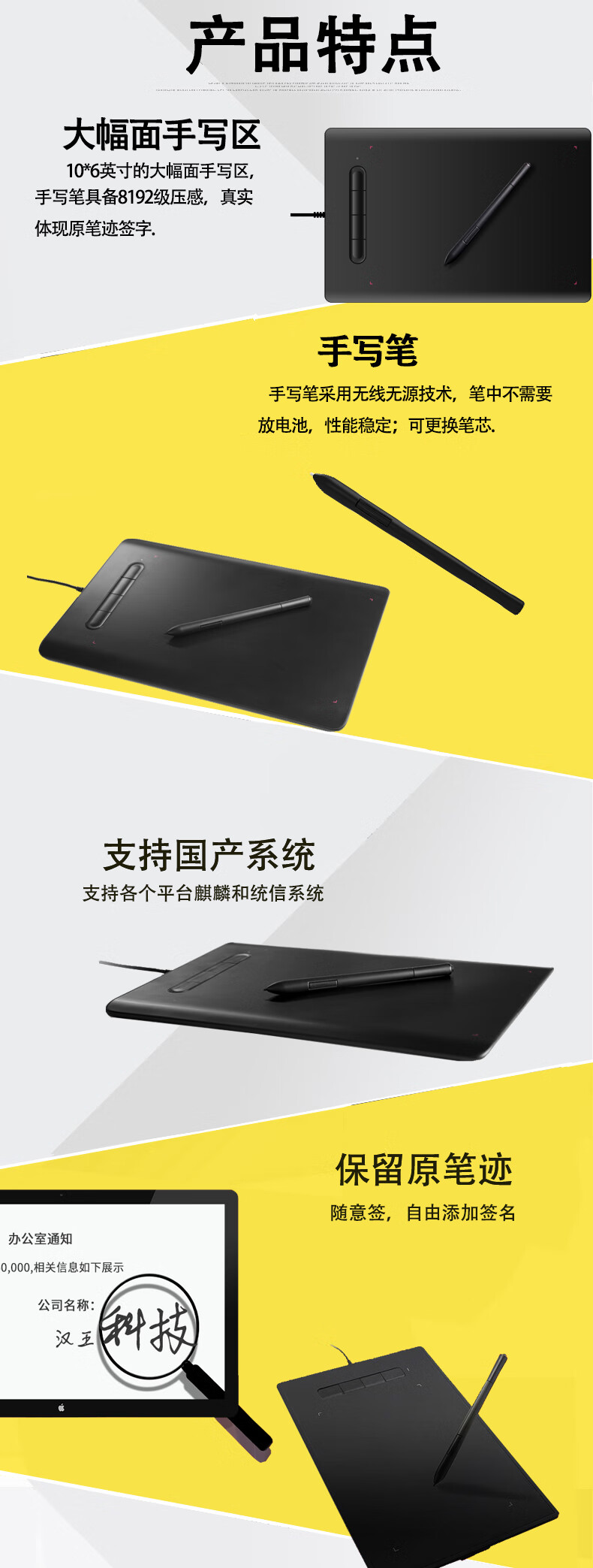 汉王(Hanvon)手写板支持国产系统 麒麟统信手写输入代替键盘打字电子签名板数拉板国产化手写板全屏 汉王EST1006