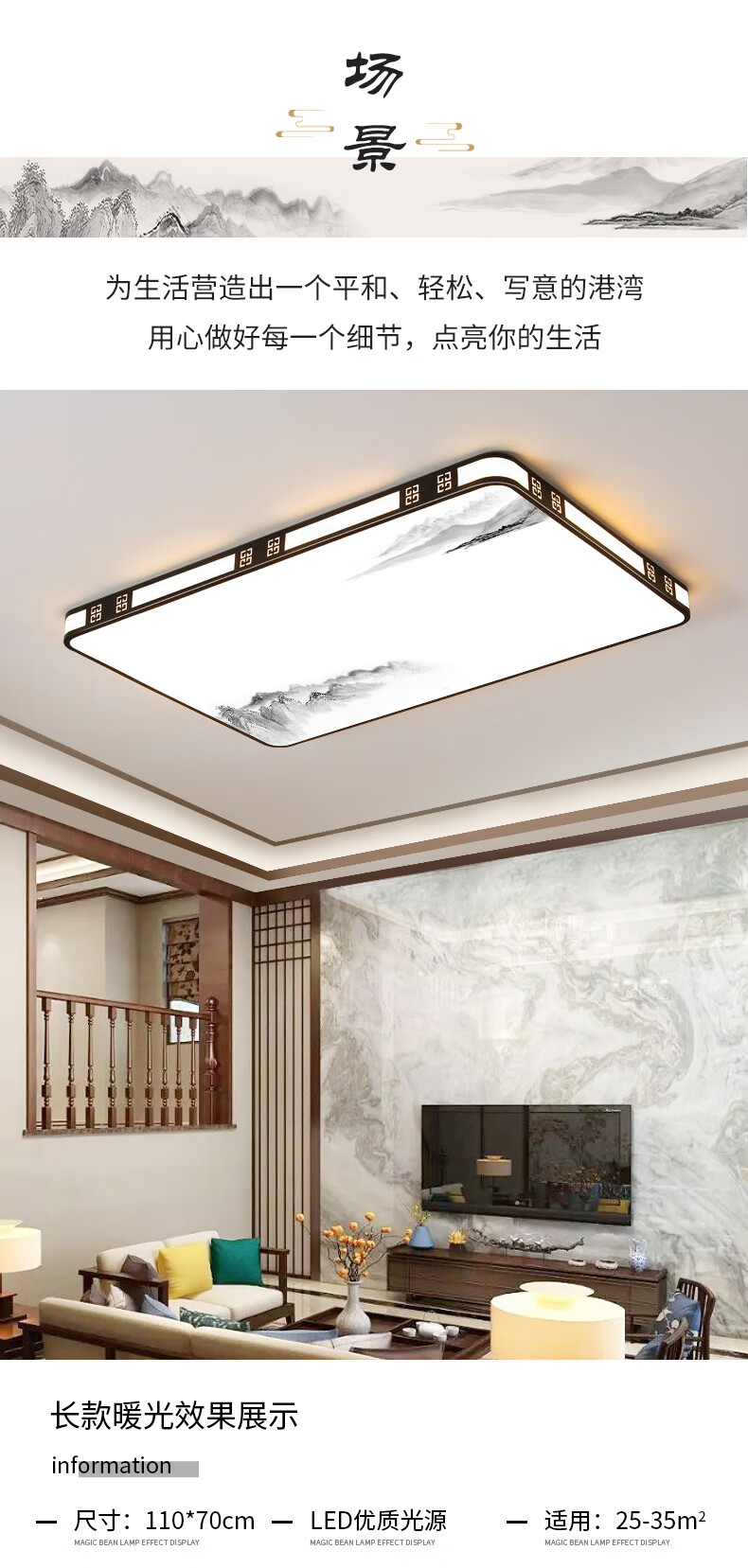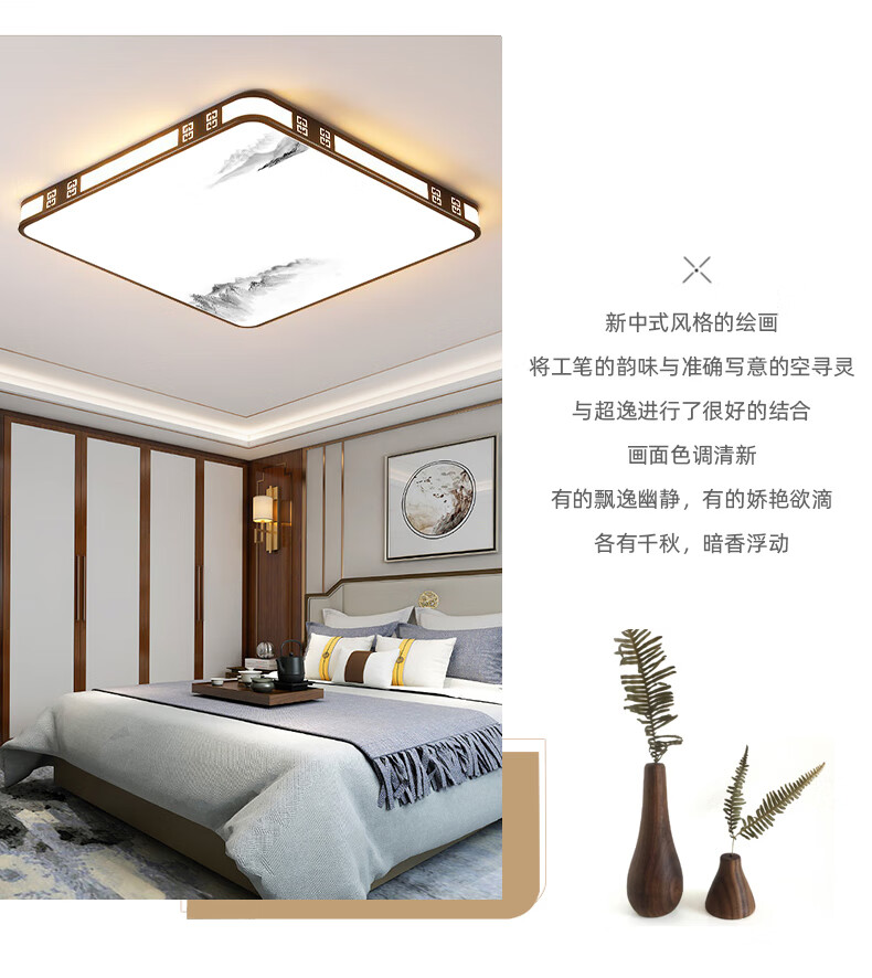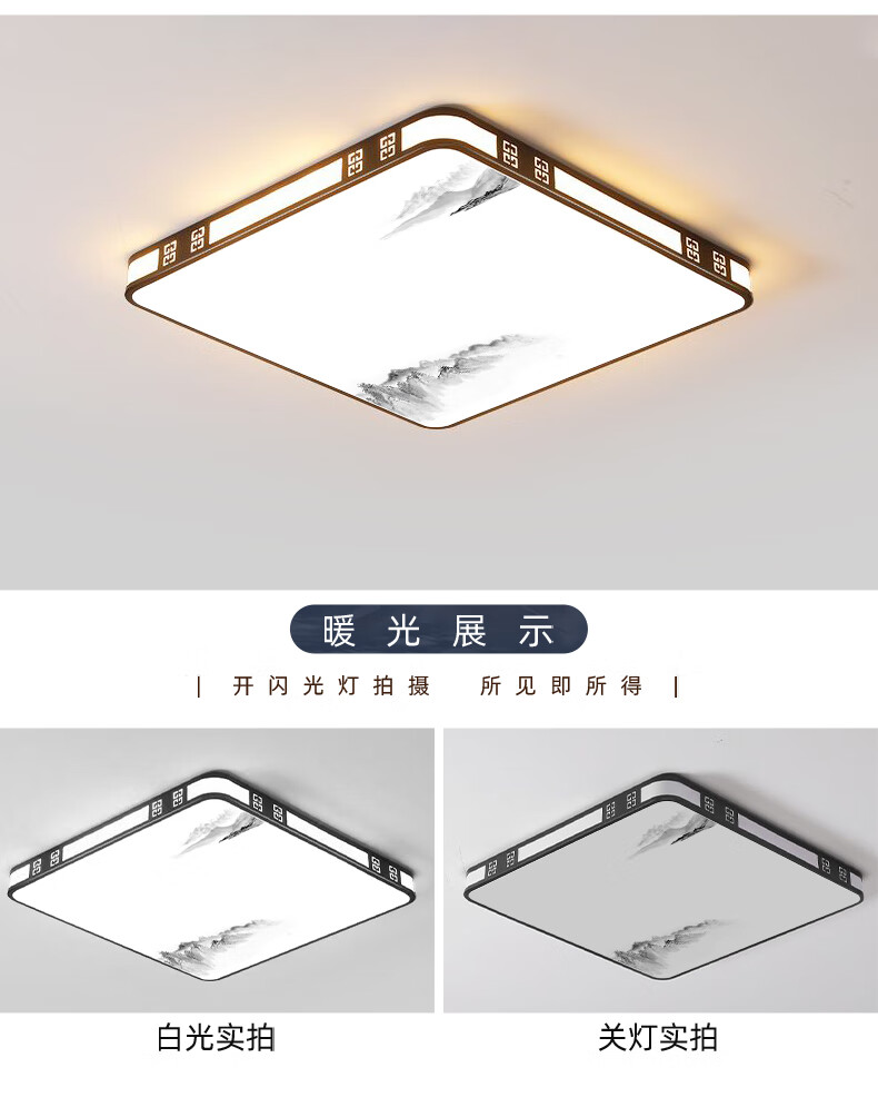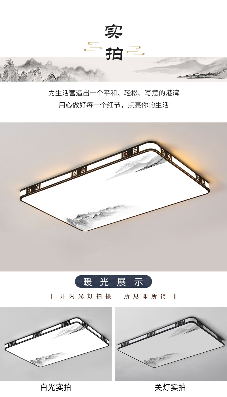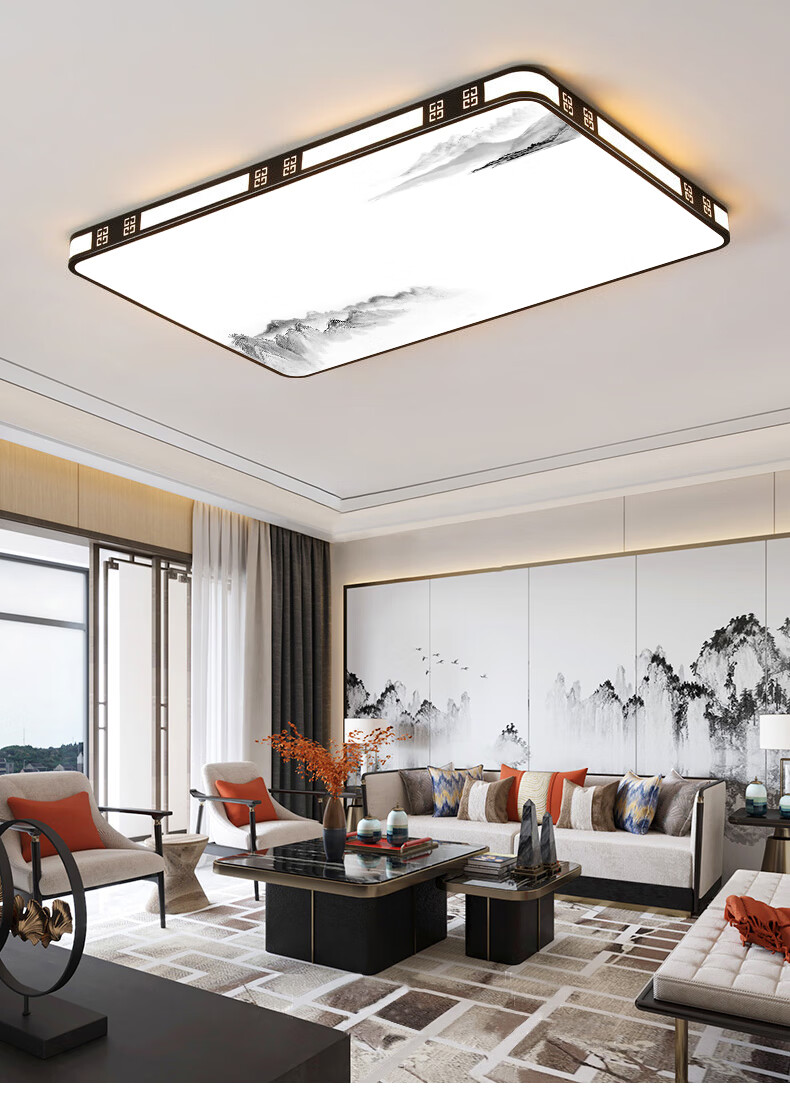 蓝彩和农村客厅大灯照明灯大气流行中山主灯灯具薄2024新款佛山灯具广东 中式山水画120*80cm白光升级超亮