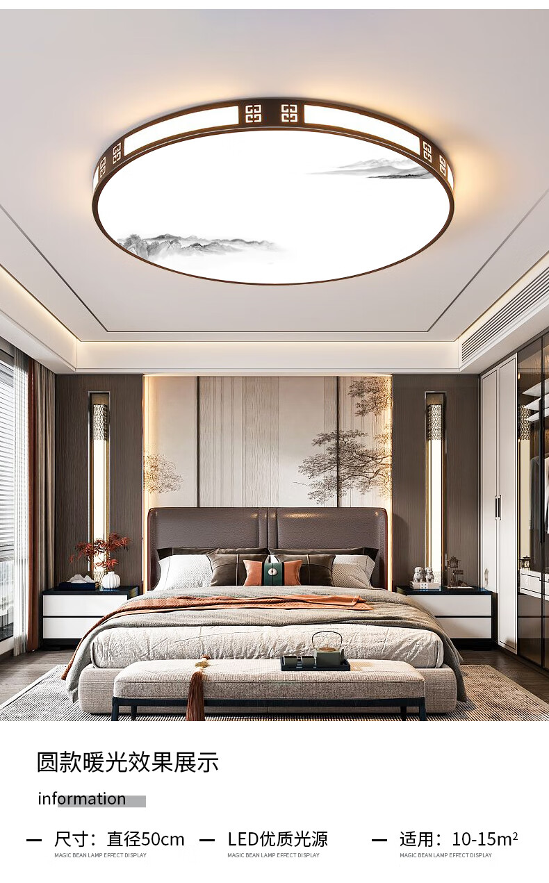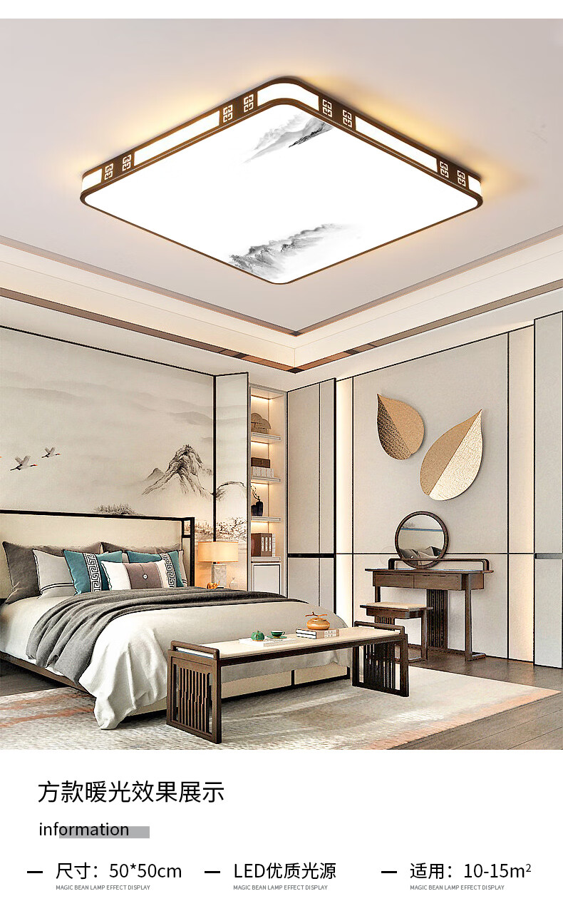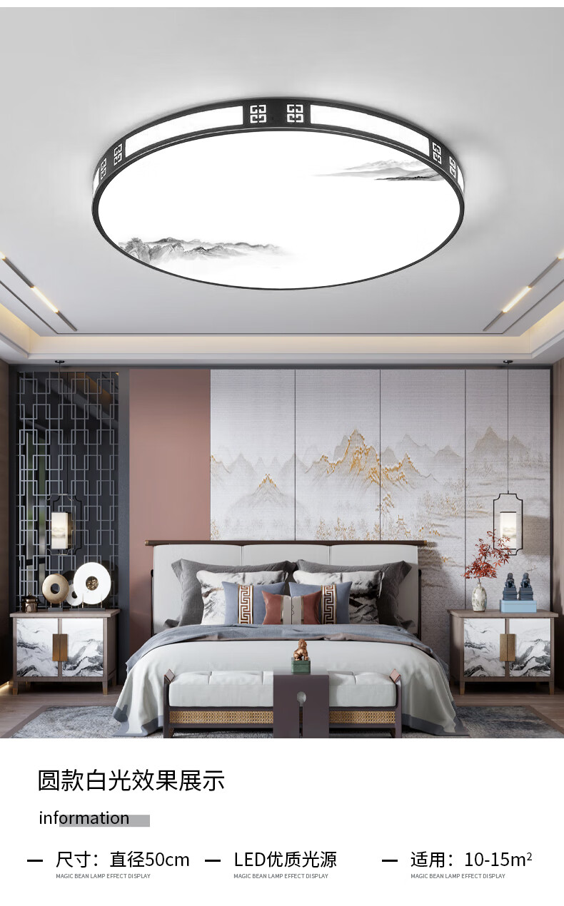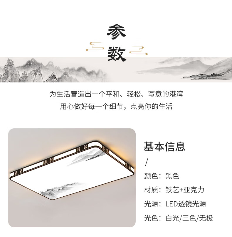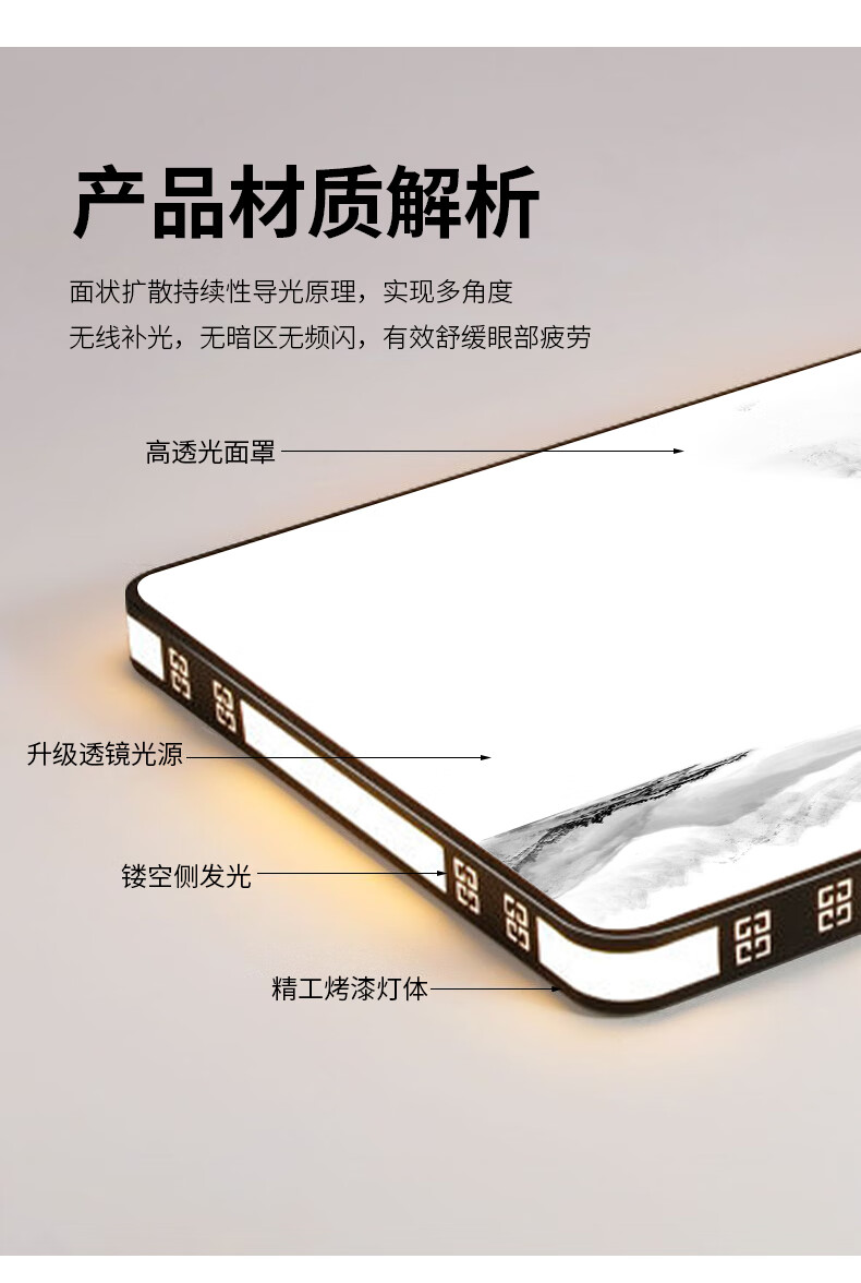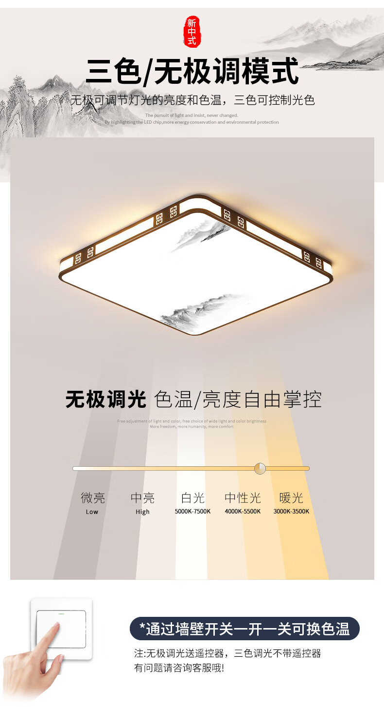 蓝彩和农村客厅大灯照明灯大气流行中山主灯灯具薄2024新款佛山灯具广东 中式山水画120*80cm白光升级超亮