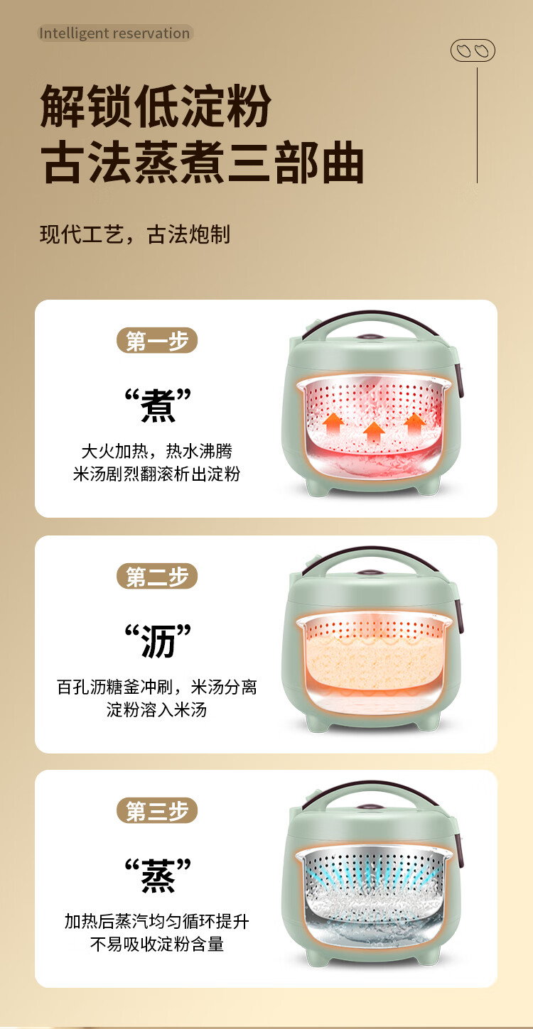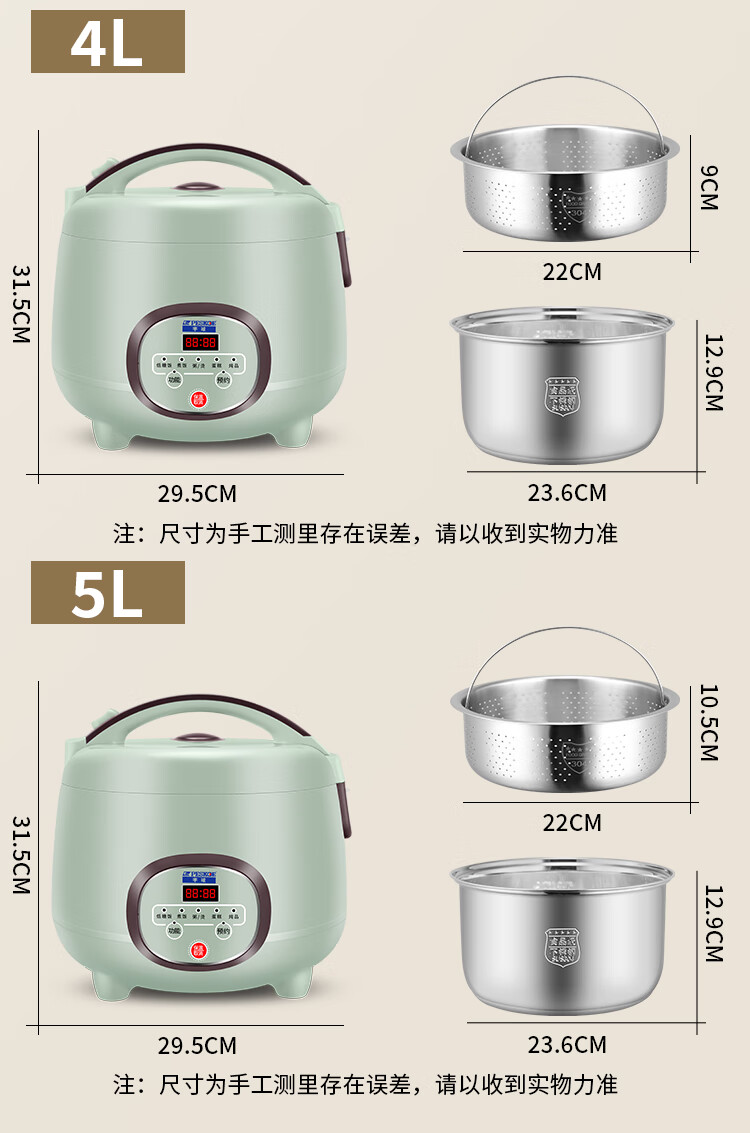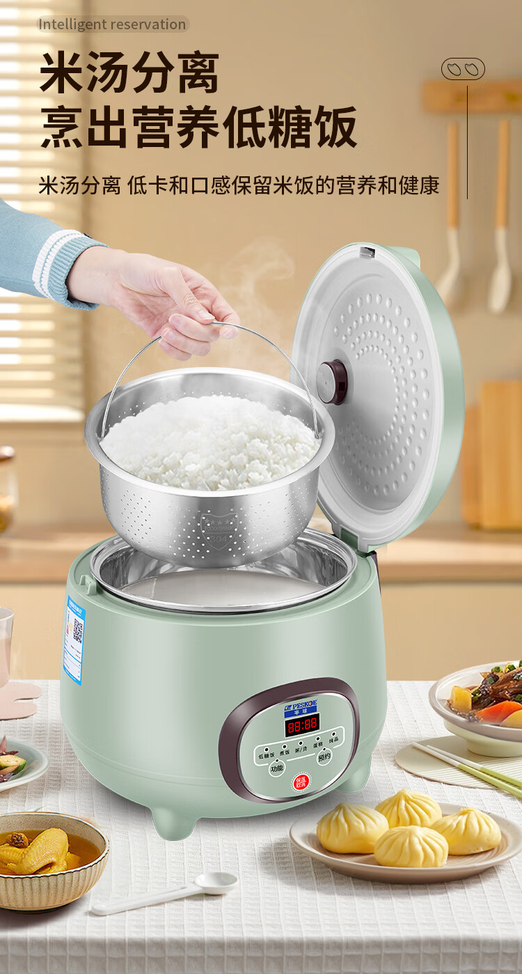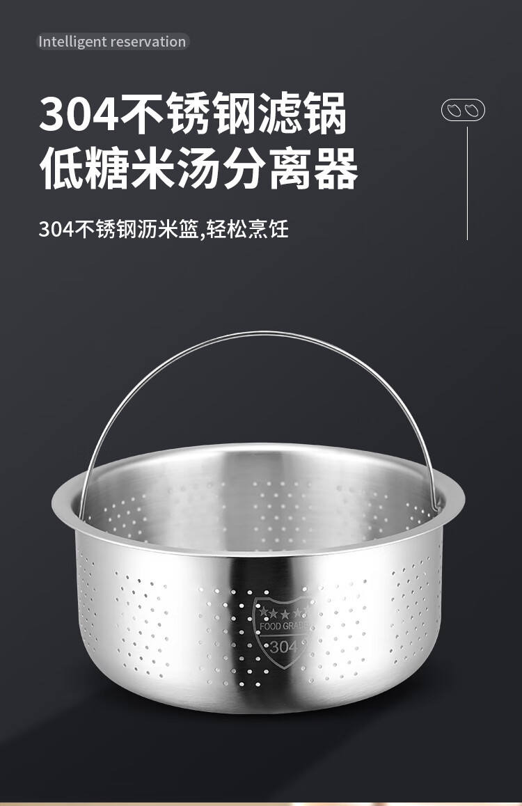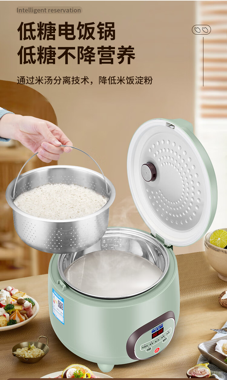 Hemisphere low-sugar rice cooker, rice soup separation, uncoated, special for diabetics to control de-drainage, steamed rice rice cooker 4L, low sugar, non-stick bile + bile, 4-5 people 4L