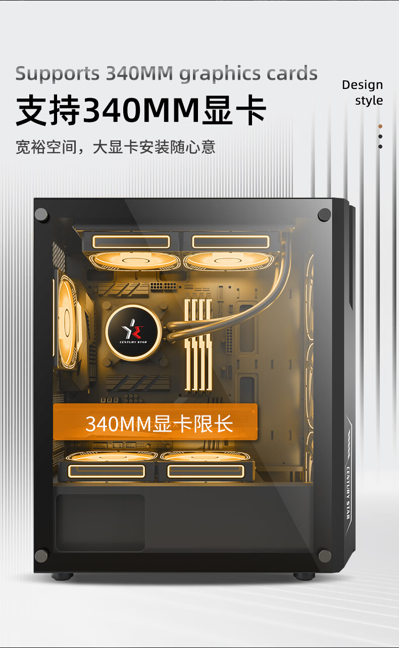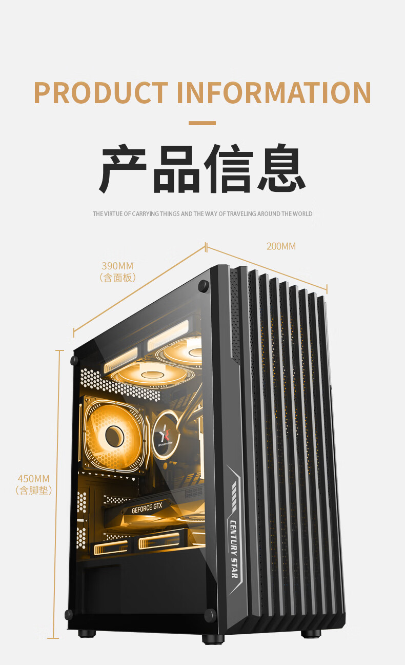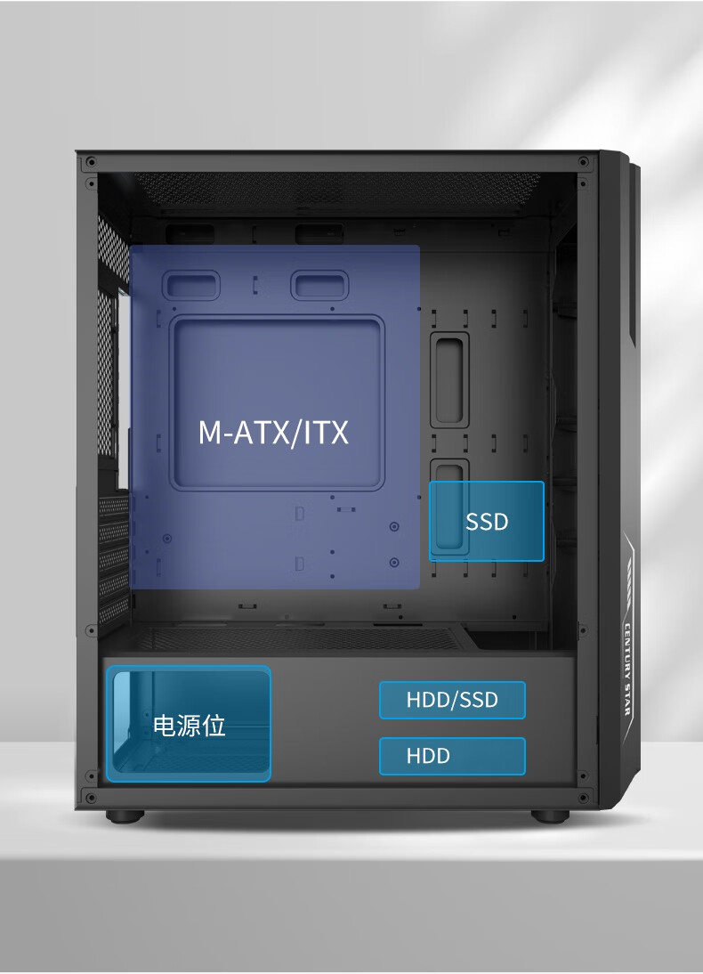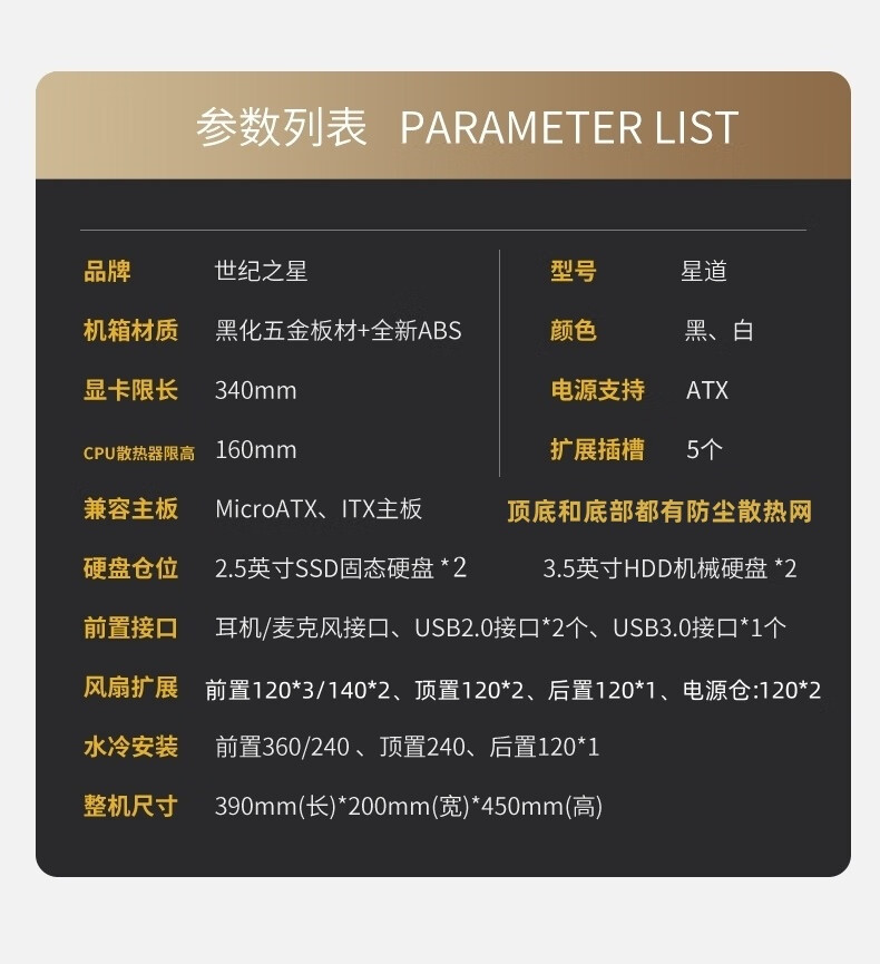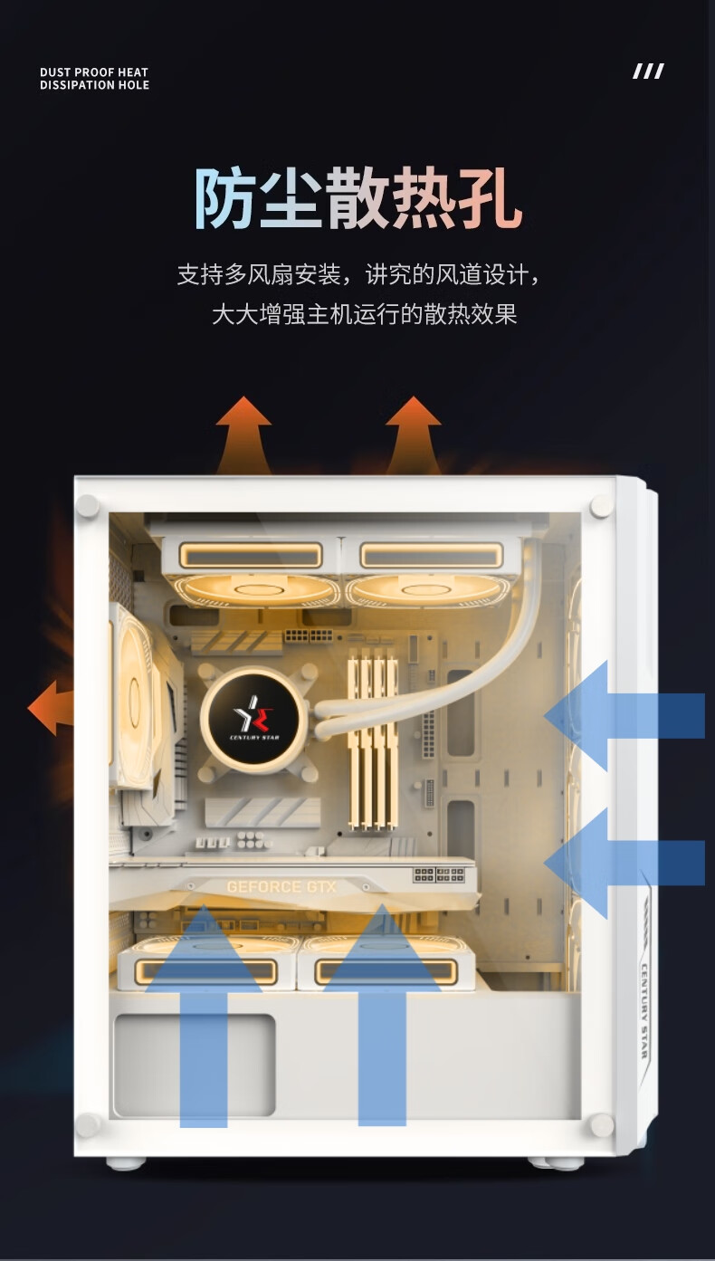 Century Star Chassis Matx Desktop Chassis Office ITX Host Thick Plate Game Chassis Front 360 Water Cooling Top 240 Water Cooling UBS3.0 Supports 34 Graphics Card Star and Moon White + 3 Prism Fans ARGB (Forward)