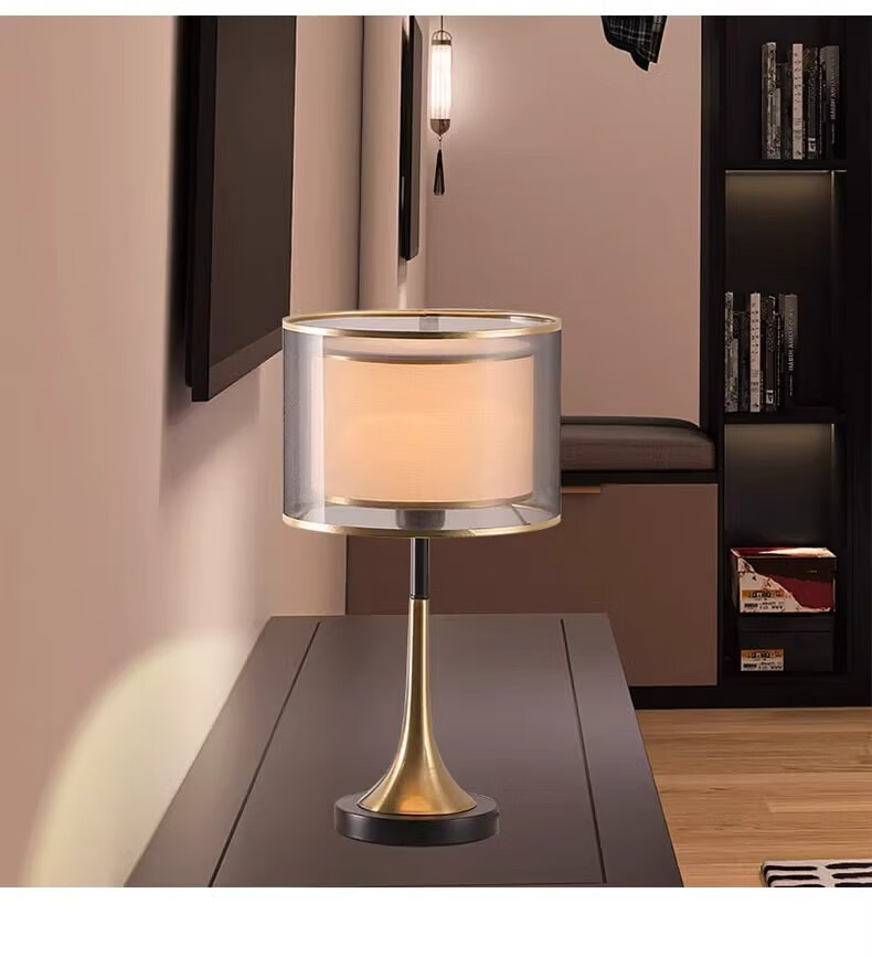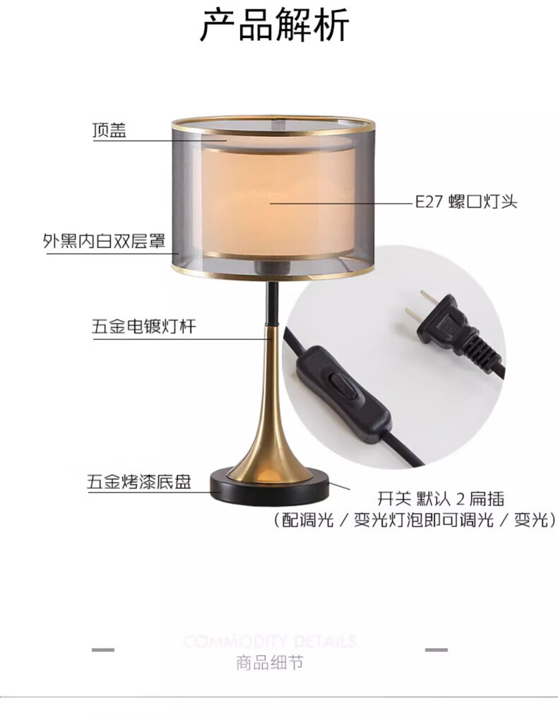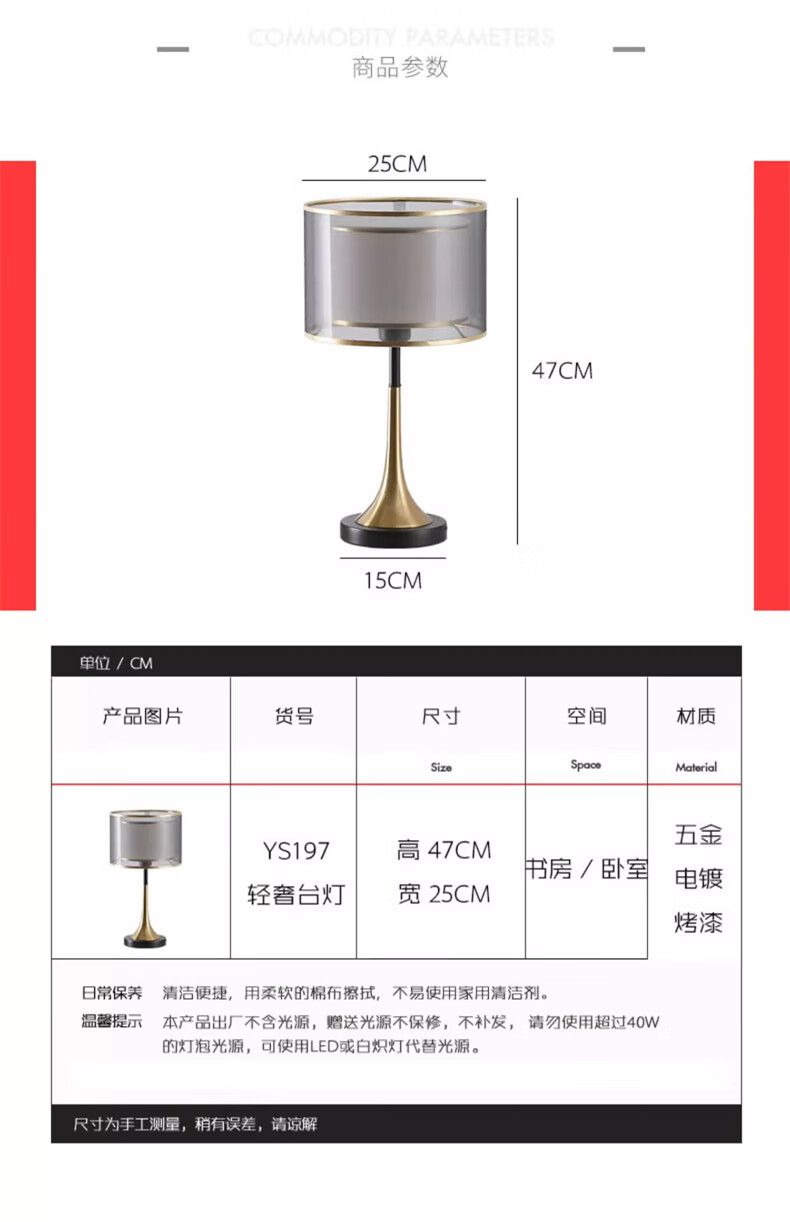 JOICO Swiss brand post-modern light luxury table lamp bedside bedroom warm creative fashionable fabric bedside lamp decorative lamp gold cover 5 watt warm light