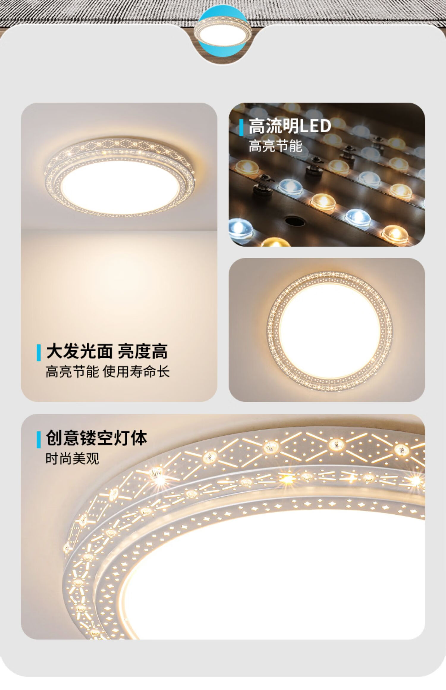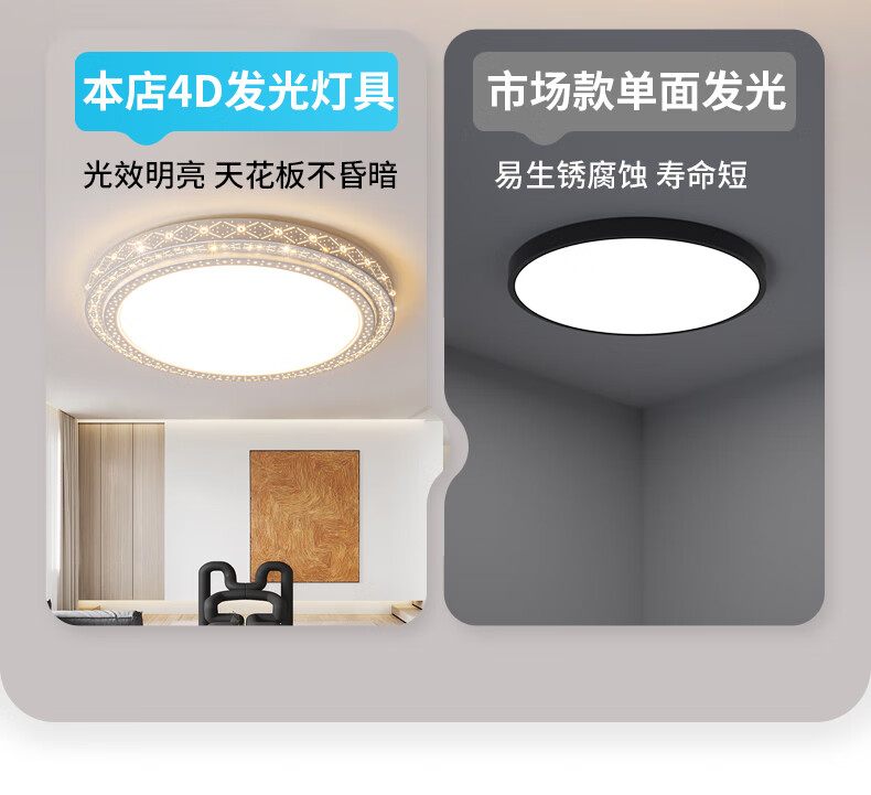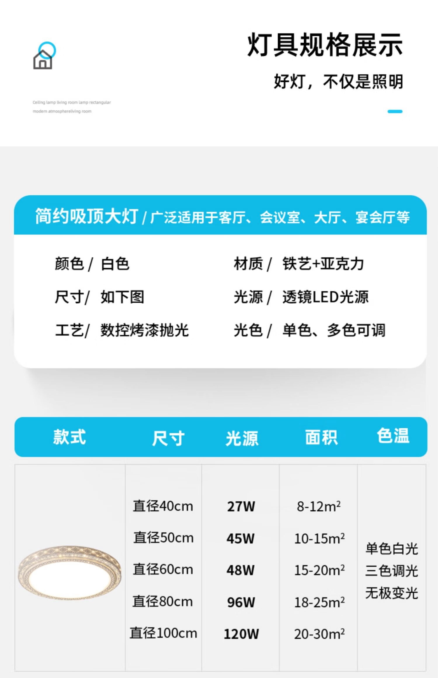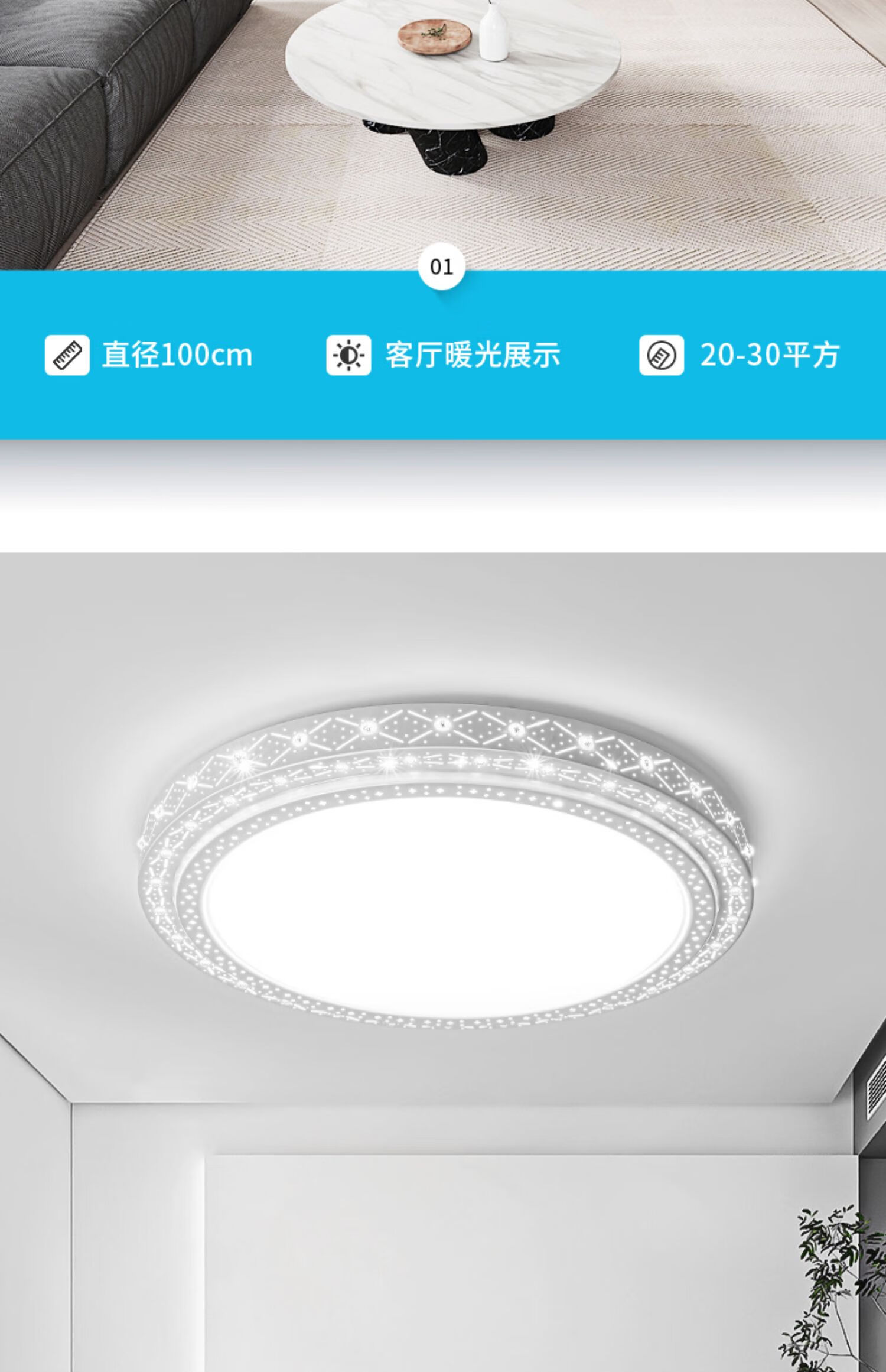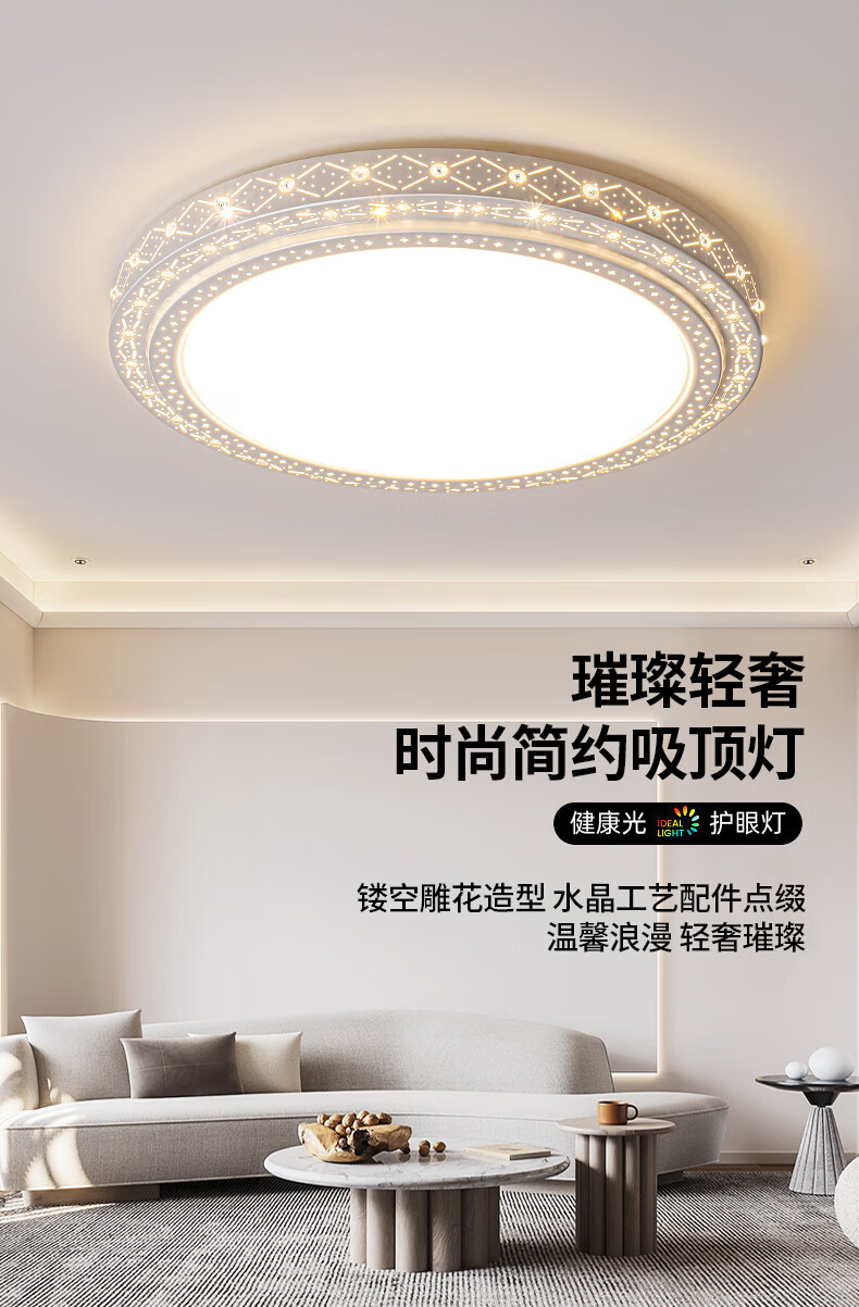 佲伙2024新款吸顶灯led大尺寸客厅灯简约现代卧室灯圆形超亮大厅灯具 直径60CM高亮白光48瓦