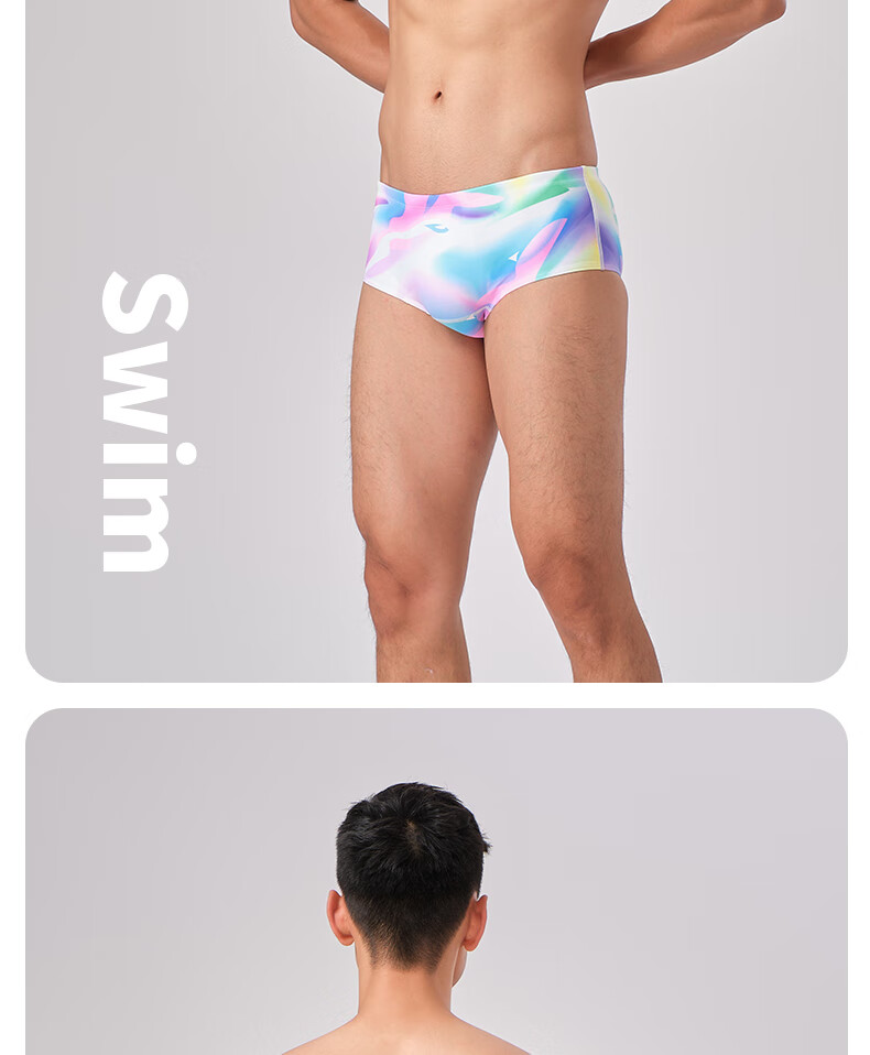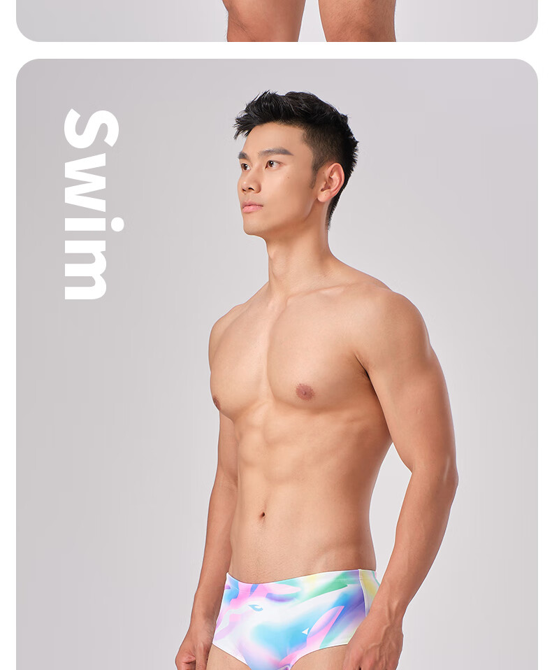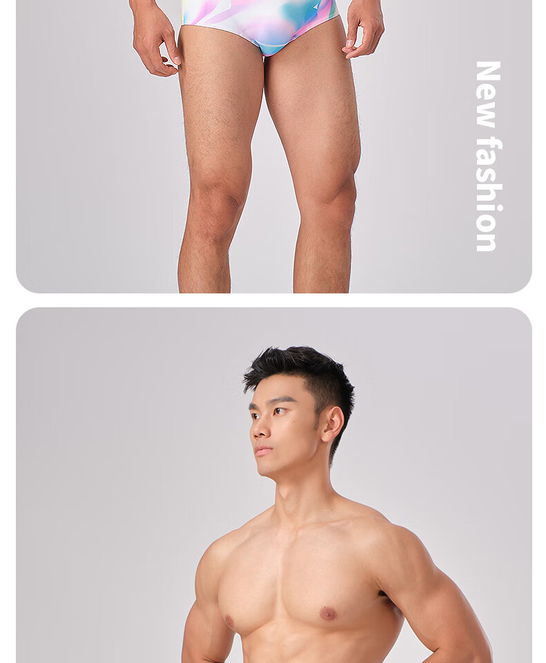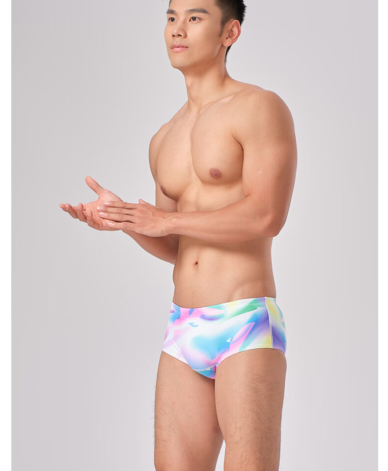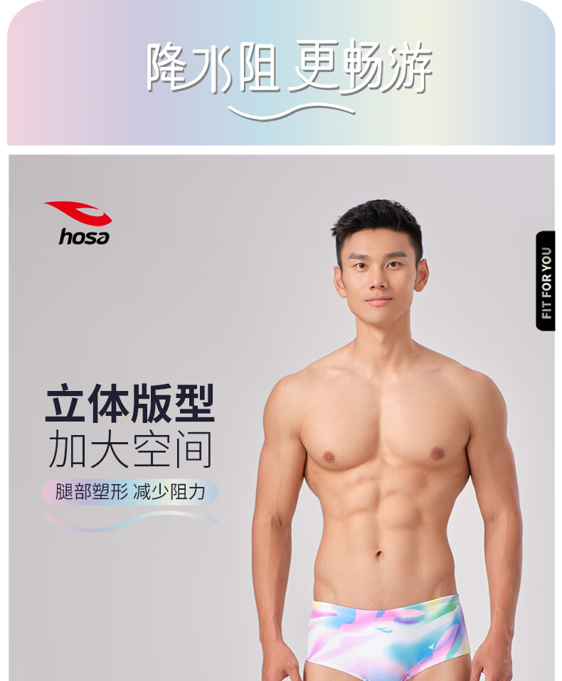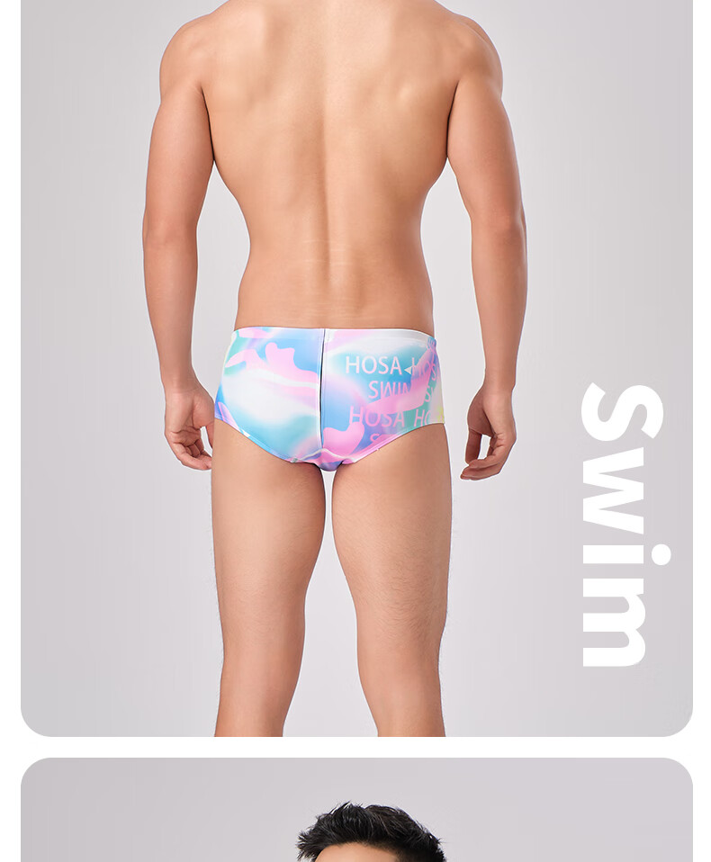 浩沙(hosa)男士三角泳裤低体感渐变印花舒适高弹防晒抗氯专业训练 梅红 XL (专业竞技款,非专业拍大1-2码)