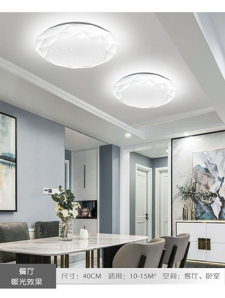 维诺亚led吸顶灯卧室灯现代简约客厅灯圆形房间阳台过道书房灯钻石星空 钻石款 26cm-单色白光24W