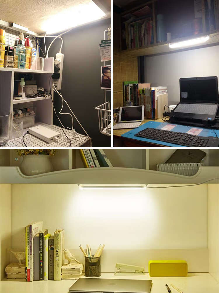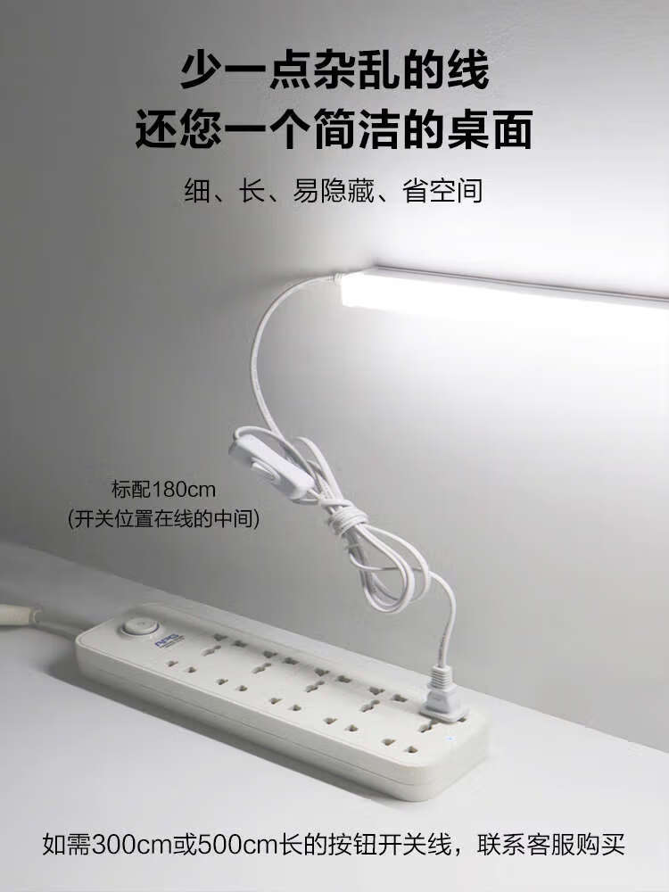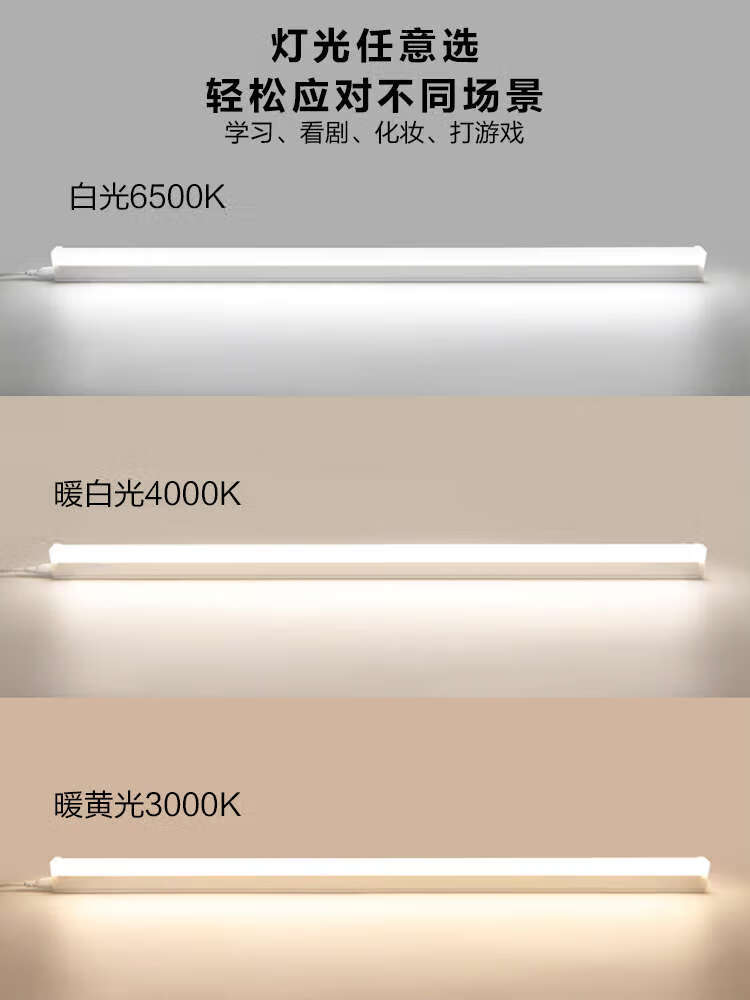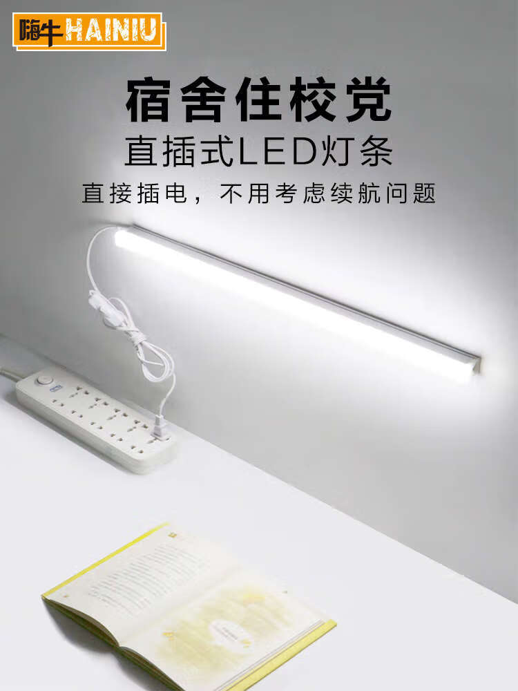 创京懿选直插式LED宿舍长条有线台灯插电壁挂吸顶吸附灯学生磁吸学习 1.8m超亮款0.6米宿舍灯 18W暖黄 按钮开关