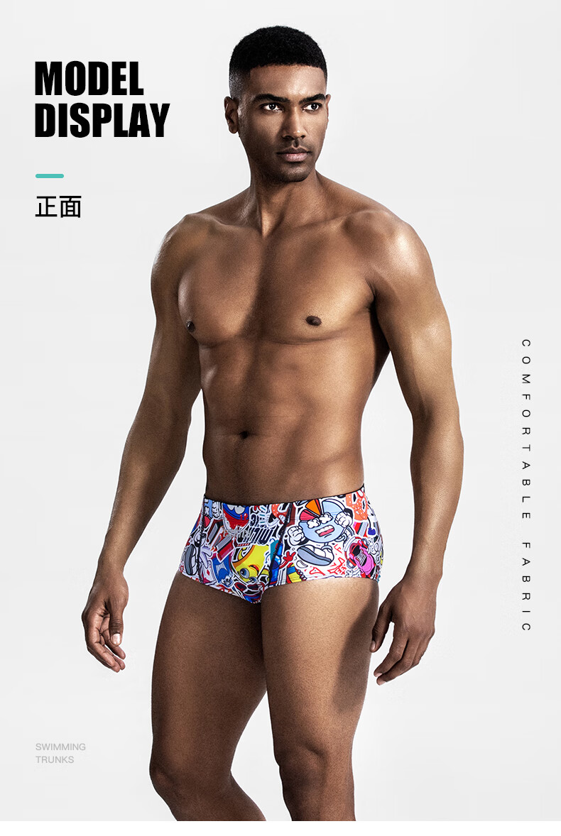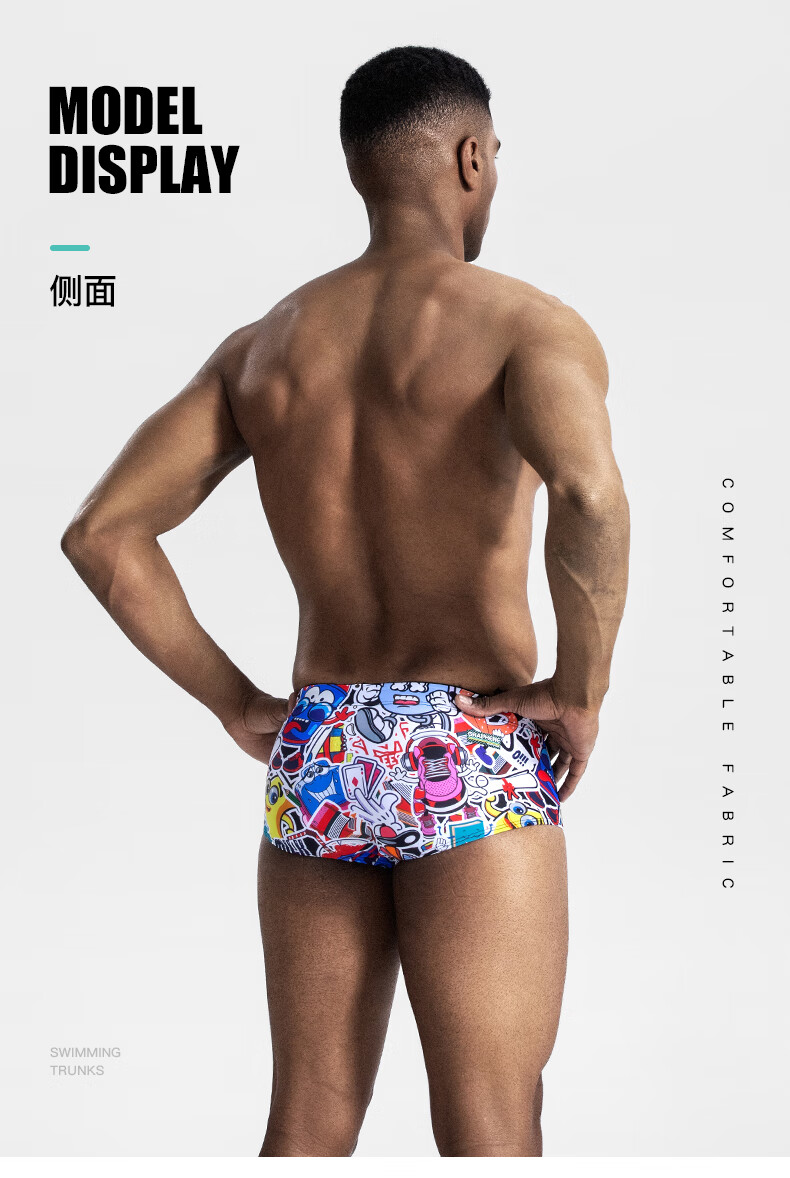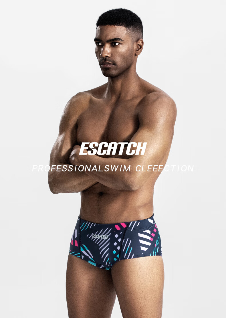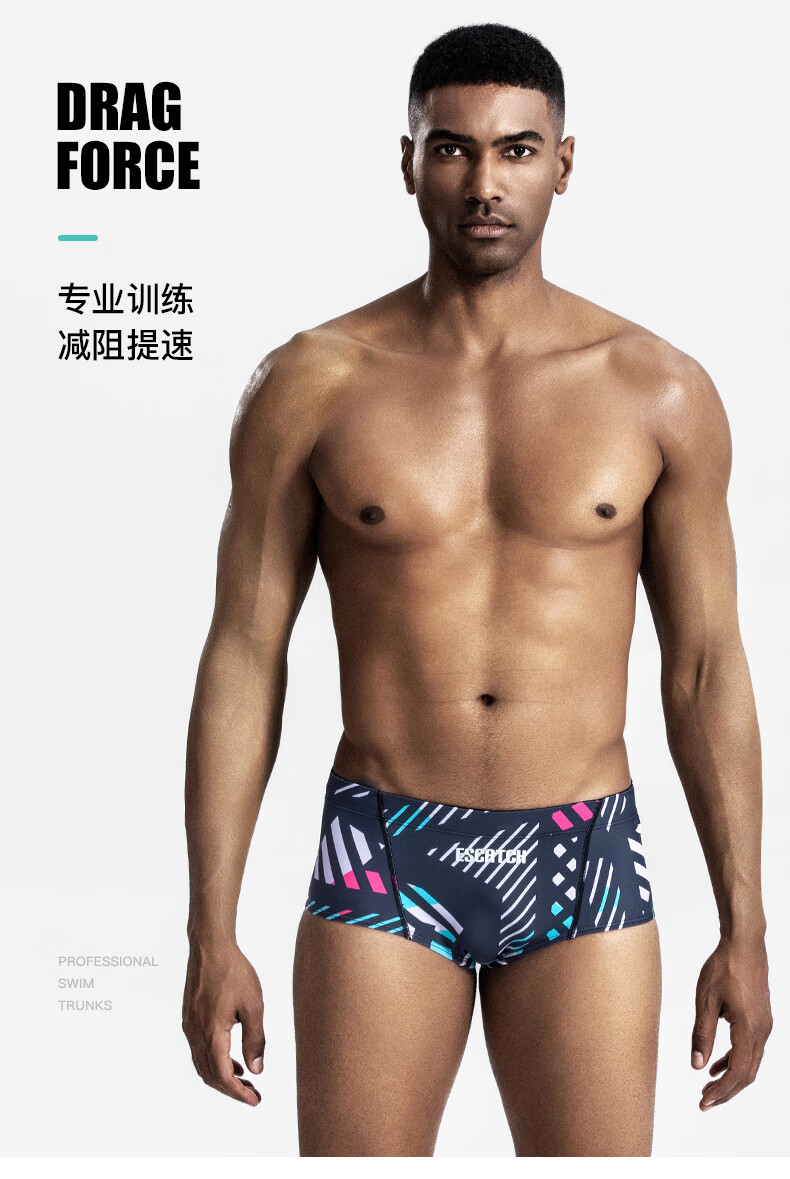 ESCATCH泳裤男专业竞速大三角游泳裤加宽防尴尬小平角男士训练游泳装备 EY05蓝色卡通 3XL (身高185-195cm体重93-105kg)